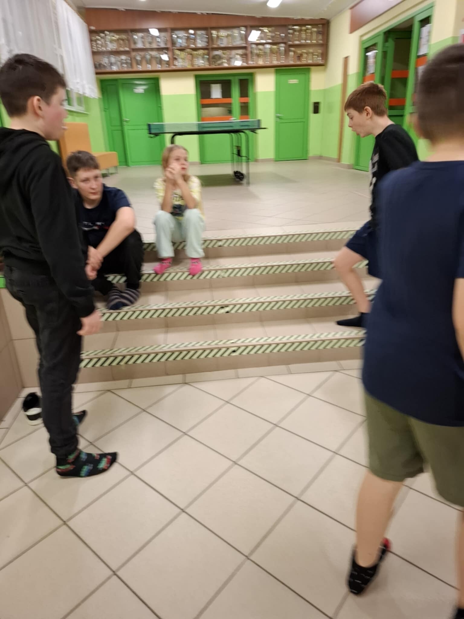 Uczniowie klasy V, z pewnością na długo zapamiętają noc z 17 na 18 stycznia, gdyż spędzili ją w szkole. Pomysłów na wieczór i późne godziny nocne nie brakowało. Wszyscy zadbali o to, aby czas spędzony razem bez telefonów komórkowych, w nieco innej scenerii i czasie, był niezapomniany.
