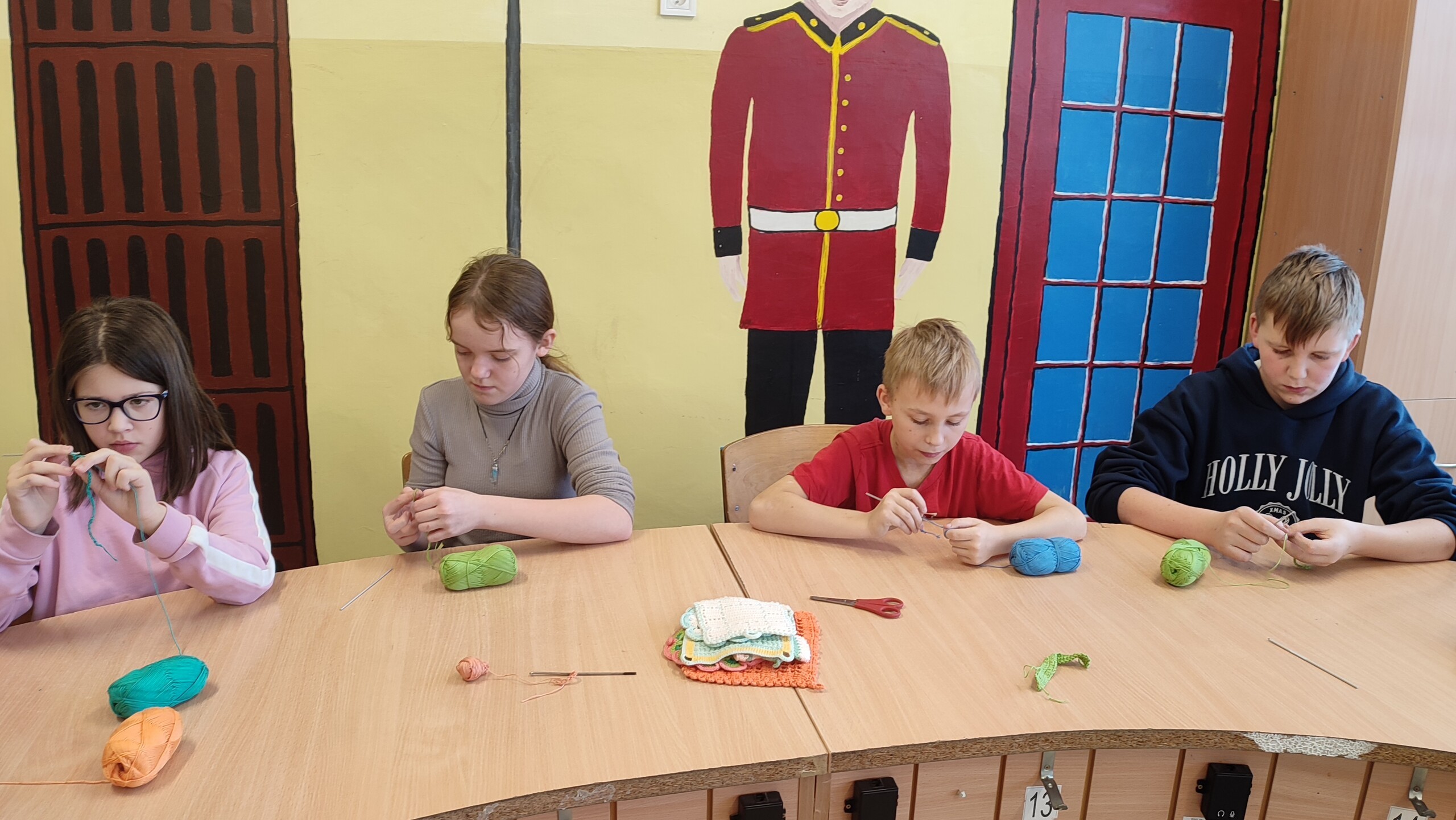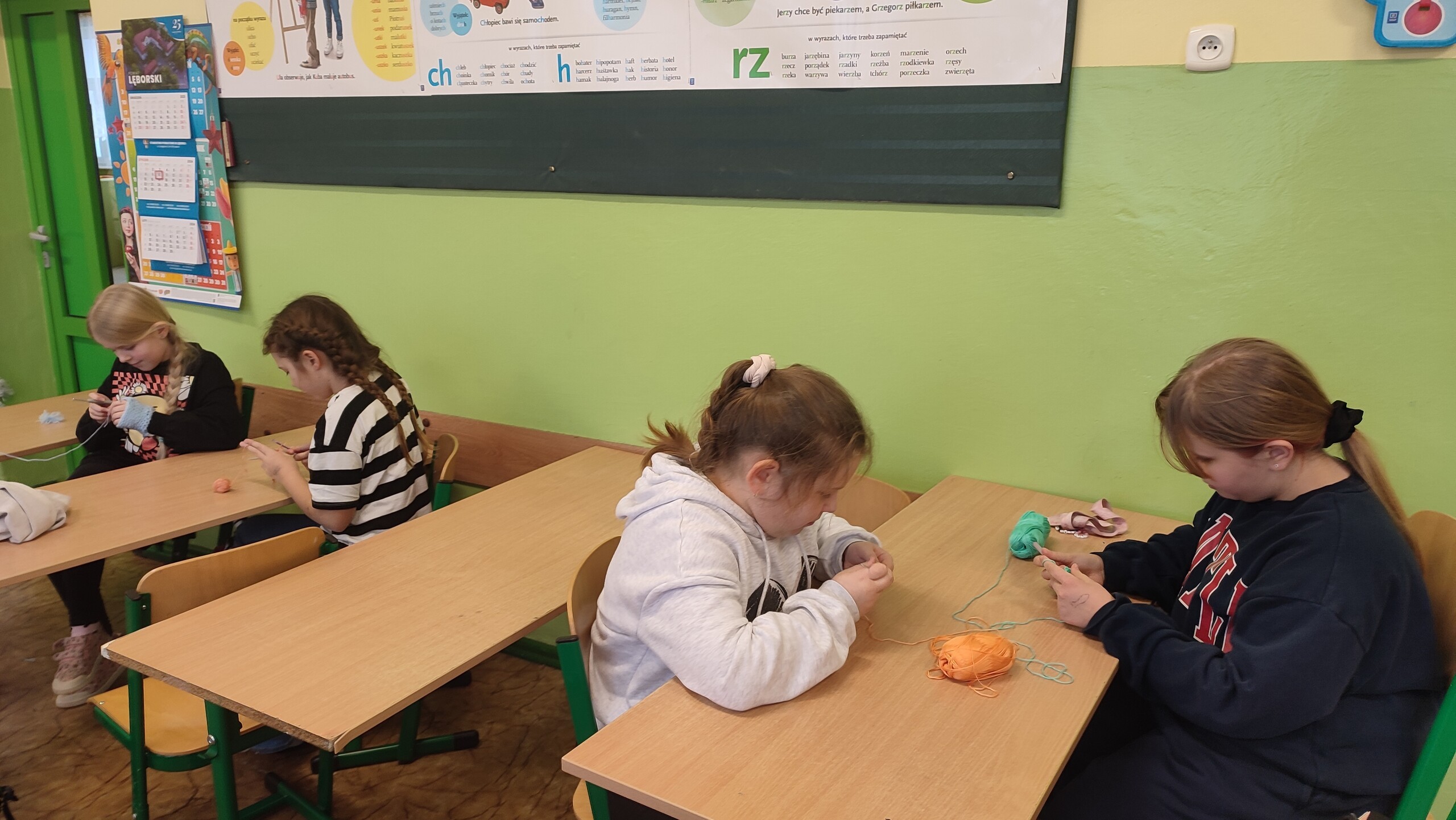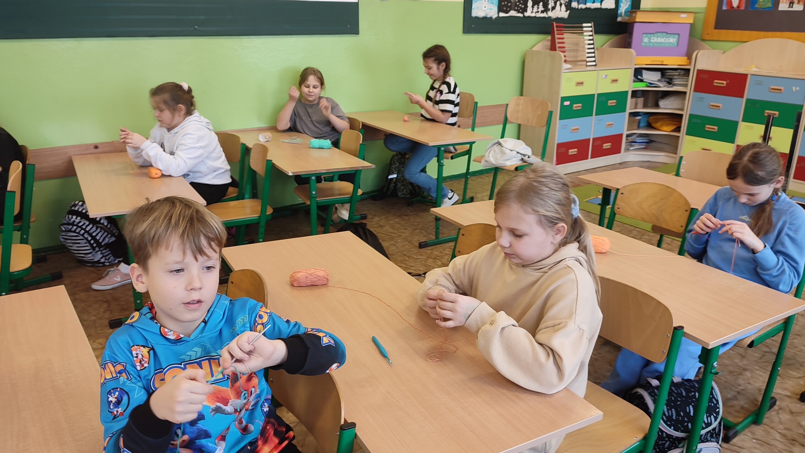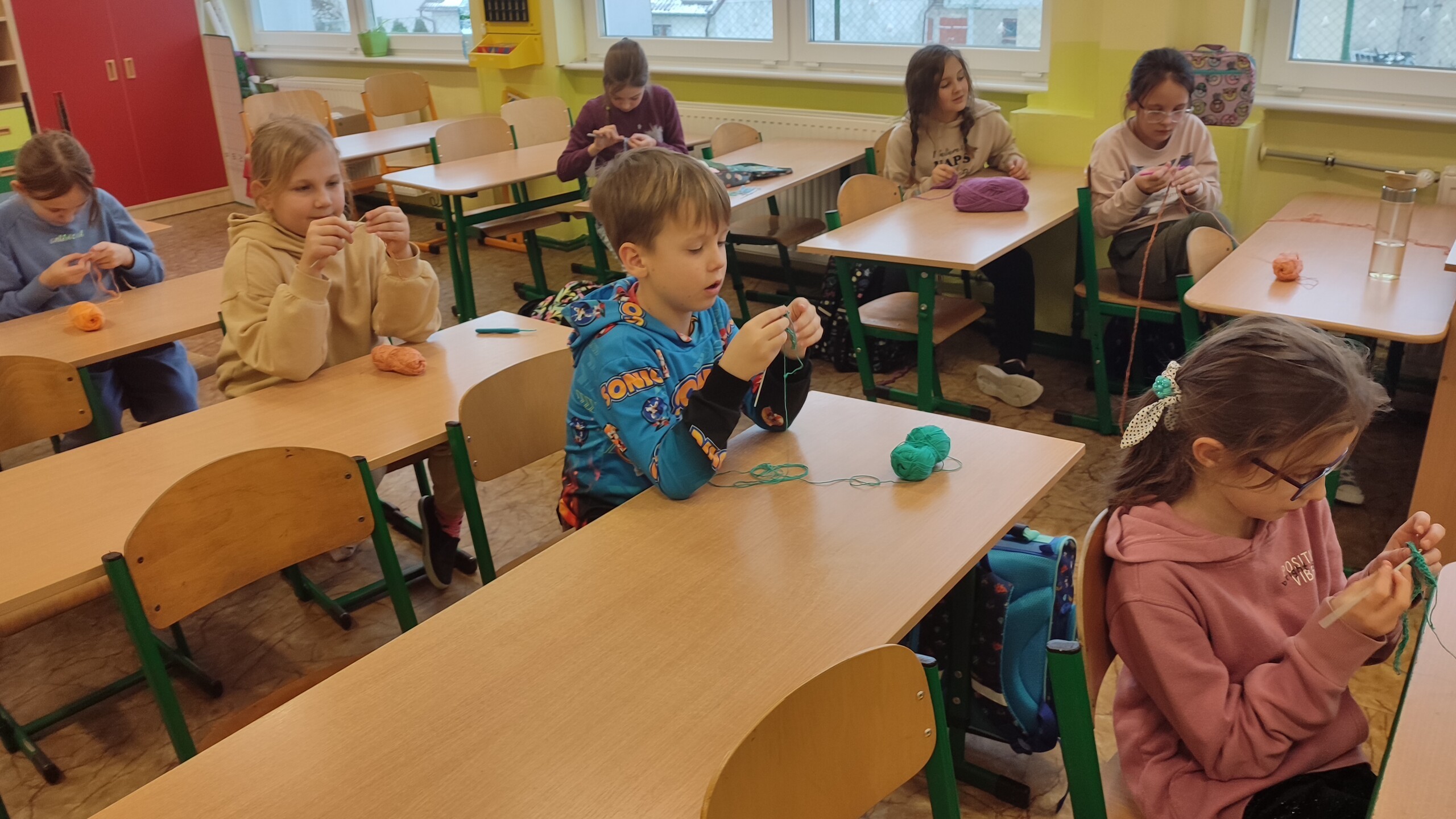 Uczniowie uczęszczający na zajęcia języka kaszubskiego wzięli udział w warsztatach dotyczących szydełkowania. Robótki ręczne rozwijają sprawność manualną, twórcze myślenie, dokładność, pamięć, poczucie estetyki i cierpliwość. Jest to też odpoczynek od zajęć lekcyjnych, wyciszenie i odreagowanie emocji i napięć. Na zajęciach uczniowie wykonywali podstawowe ściegi szydełkowe (łańcuszek, półsłupek) . Z satysfakcją obserwuje się radość i uśmiech dzieci, które z zapałem tworzą kolejne prace, swoje arcydzieła rękodzieła artystycznego. Każdy drobny sukces osiągany podczas szydełkowania umacnia ich wiarę we własne możliwości i zachęca do dalszego wysiłku i poszukiwań. Efektem tych zajęć jest duże zainteresowanie nie tylko wśród uczniów, ale również i rodziców, którzy chętnie współpracują zaopatrując własne dzieci we włóczki i szydełka . Rodzice dostrzegają pozytywną stronę podejmowanych przez dzieci zainteresowań rękodziełem. Zauważamy sięganie po taką formę spędzania wolnego czasu przez uczniów również w domu.