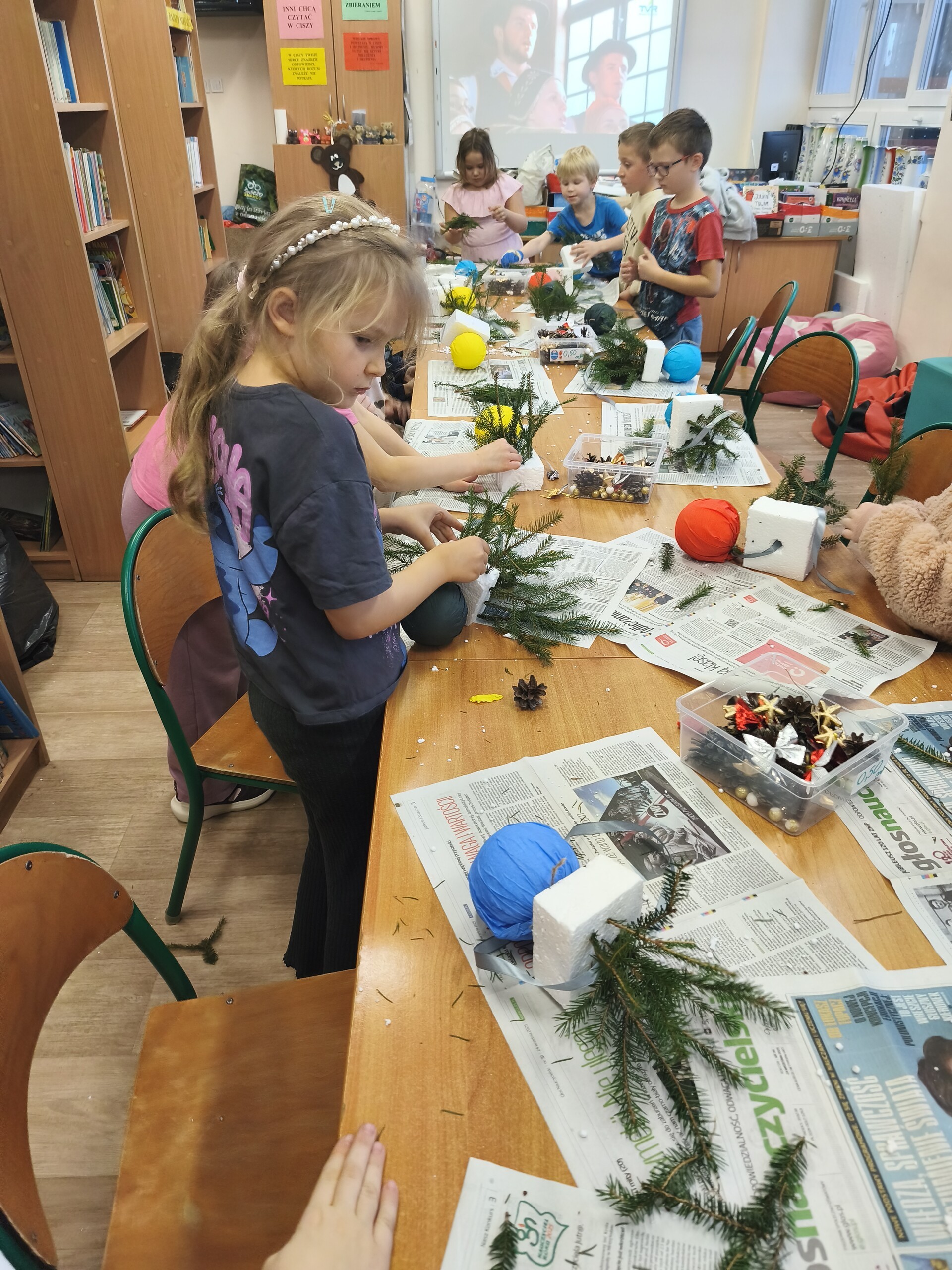 W miesiącu grudniu odbyły się w naszej szkole świąteczne warsztaty dla uczniów uczęszczających na zajęcia języka kaszubskiego. Uczniowie wykonali piękne wiszące stroiki z gałązek świerkowych, a także doskonalili umiejętności taneczne w znanych już sobie tańcach „Kowal” i „Klepôcz”. Dla dzieci został przygotowany słodki poczęstunek w postaci gofrów. Uczniowie pracowali z dużym zaangażowaniem i przyjemnością. Podczas pracy było dużo śmiechu, radości i zabawy. Zajęcia zorganizowali pani Lenart Bożena oraz pan Neubauer Tomasz.