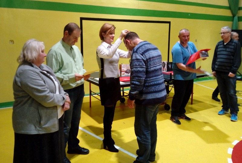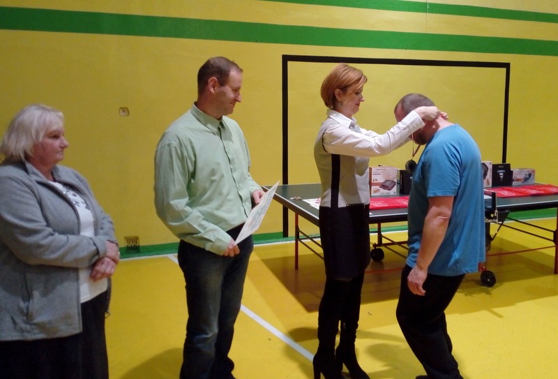 W sobotę w dwóch kategoriach rywalizowali mężczyźni. W przedziale wiekowym 19-50 w pierwszym półfinale spotkali się garczegorzanie Krzysztof Tomasiewicz i Marian Syldatk. Wygrał ten pierwszy 3-1. W drugim Arkadiusz Ptaszkowski ze Swołowa 3-1 pokonał Mariusza Wentę z Janowic. W meczu o brązowy medal Marian Syldatk przegrał Mariuszem Wenta 3-0 (9, 7, 2). Finał to pięciosetowa, wspaniała wymiana, pełna dramatycznych i wspaniałych akcji z obu stron, po których ręce same składały sie do braw. Pierwszy set wygrywa Ptaszkowski 16-14. Drugi dla Tomasiewicza 11-9. Trzeci ponownie dla zawodnika z Wołowa 11-9. Czwarty dla miejscowego tenisisty 12-10. O złotym medalu zadecydował piąty set, który 11-8 wygrał Arkadiusz Ptaszkowski. Było to pierwsze zwycięstwo tego zawodnika, który od kilku sezonów startuje w naszych gminnych turniejach. Gratulujemy.