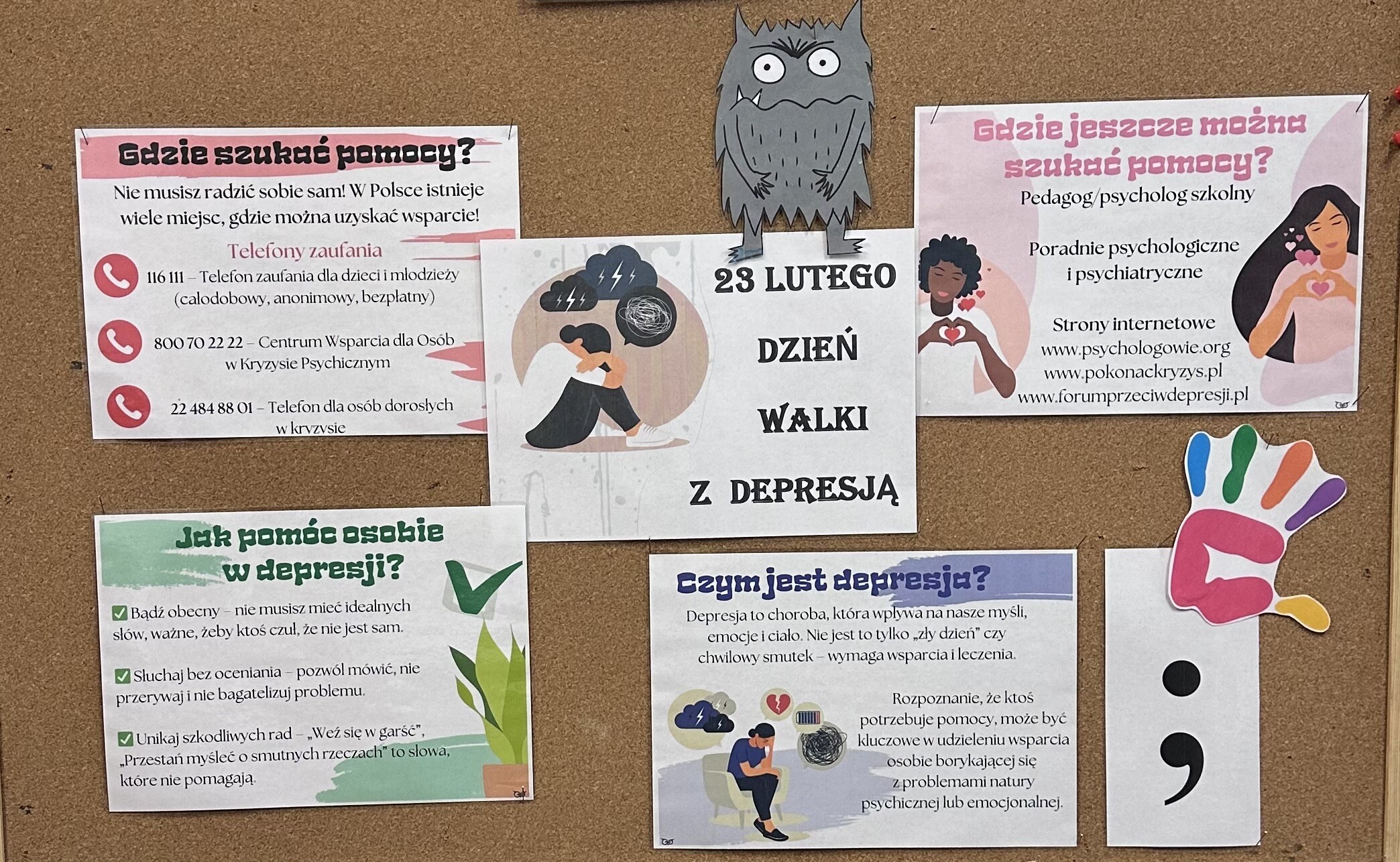Z okazji Ogólnopolskiego Dnia Walki z Depresją wolontariusze naszej szkoły zaprezentowali gazetkę na korytarzu szkolnym.