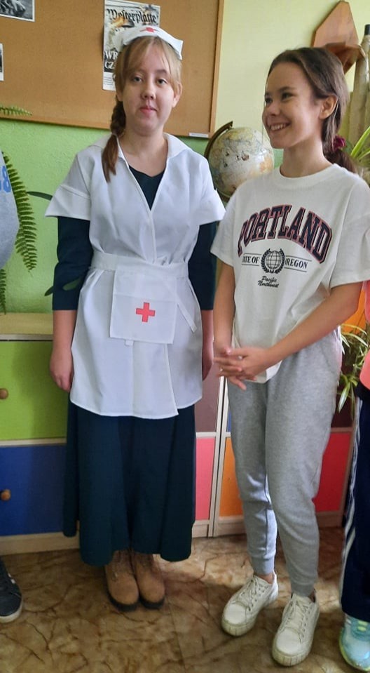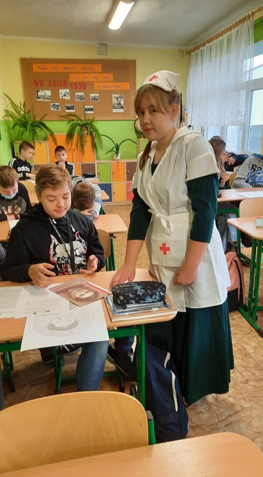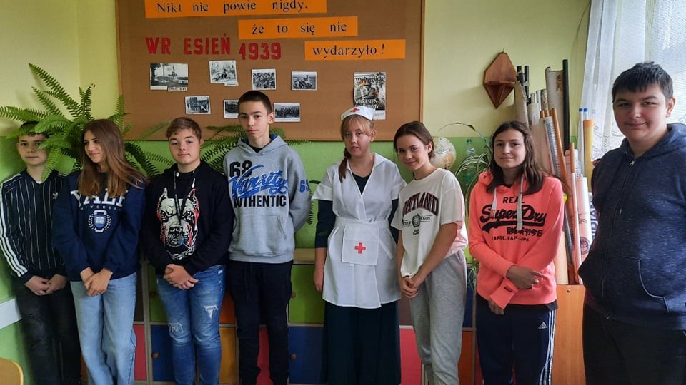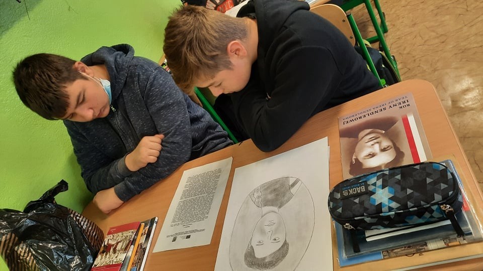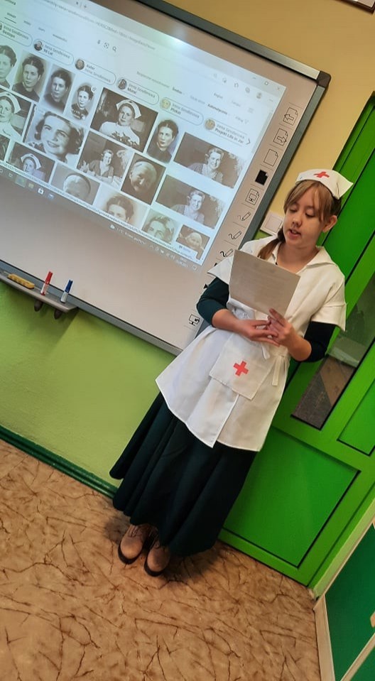 Uczniowie klasy VIII b wzięli udział w Ogólnopolskim Konkursie - "Być jak Ona" o Irenie Sendlerowej. Organizatorem konkursu jest Fundacja Honor Pomagania Dzieciom z Warszawy. Zadaniem klasy było wykonanie portretu Pani Ireny, opis jej działalności oraz przeprowadzenie lekcji o naszej bohaterce wraz z fotorelacją. Klasa wzorcowo wywiązała się z zadania, nie zabrakło nawet prawdziwej Ireny Sendler. Dziękujemy wszystkim zaangażowanym uczniom i trzymamy kciuki czekając na rozstrzygnięcie konkursu. Najważniejszy cel jednak, niezależnie od wyników konkursu został osiągnięty- uczniowie zgłębili temat Holokaustu, II wojny światowej, zapoznali się z postacią Pani Ireny- tej, która narażając własne życie uratowała ponad 2500 żydowskich dzieci wyprowadzając je z getta warszawskiego. Gratulujemy klasie VIII b podjęcia się niełatwego wyzwania.