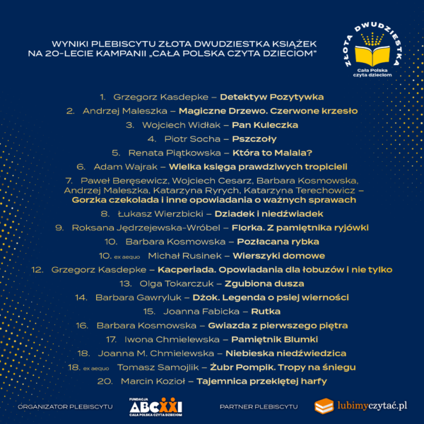 Fundacja wraz z lubimyczytac.pl z tej okazji przygotowała plebiscyt na „Złotą dwudziestkę książek”, na 20-lecie kampanii CPCD, w którym przez czytelników zostało wybranych 20. najpopularniejszych książek polskich autorów.