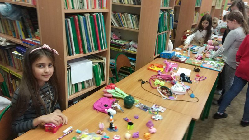 Przez kilka dni w bibliotece szkolnej odbywał się PCHLI TARG, każdy mógł pozbyć się niepotrzebnych drobiazgów i zakupić potrzebne. Można było powiększyć swoje kolekcje lub założyć nowe, czyli przyjemne z pożytecznym.