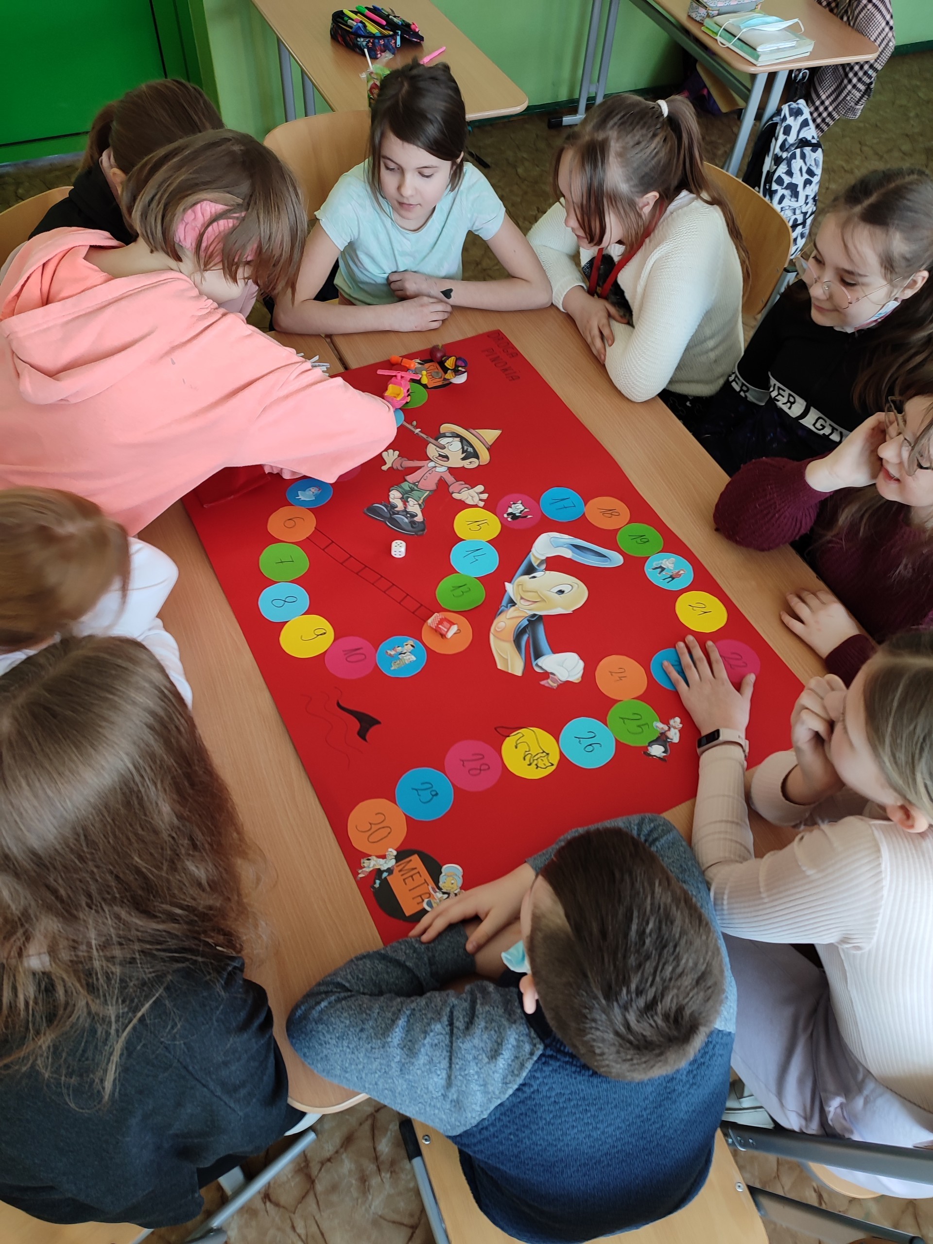 Klasa 4 zakończyła omawianie lektury ,,Pinokio". Historia drewnianego pajacyka, który stał się prawdziwym chłopcem bardzo się wszystkim spodobała. Zainspirowani postanowiliśmy sami stworzyć grę planszową DROGA PINOKIA. Powstały dwie wersje gry. Obie trafiły do naszej szkolnej biblioteki i każdy może w nią zagrać. Polecamy
