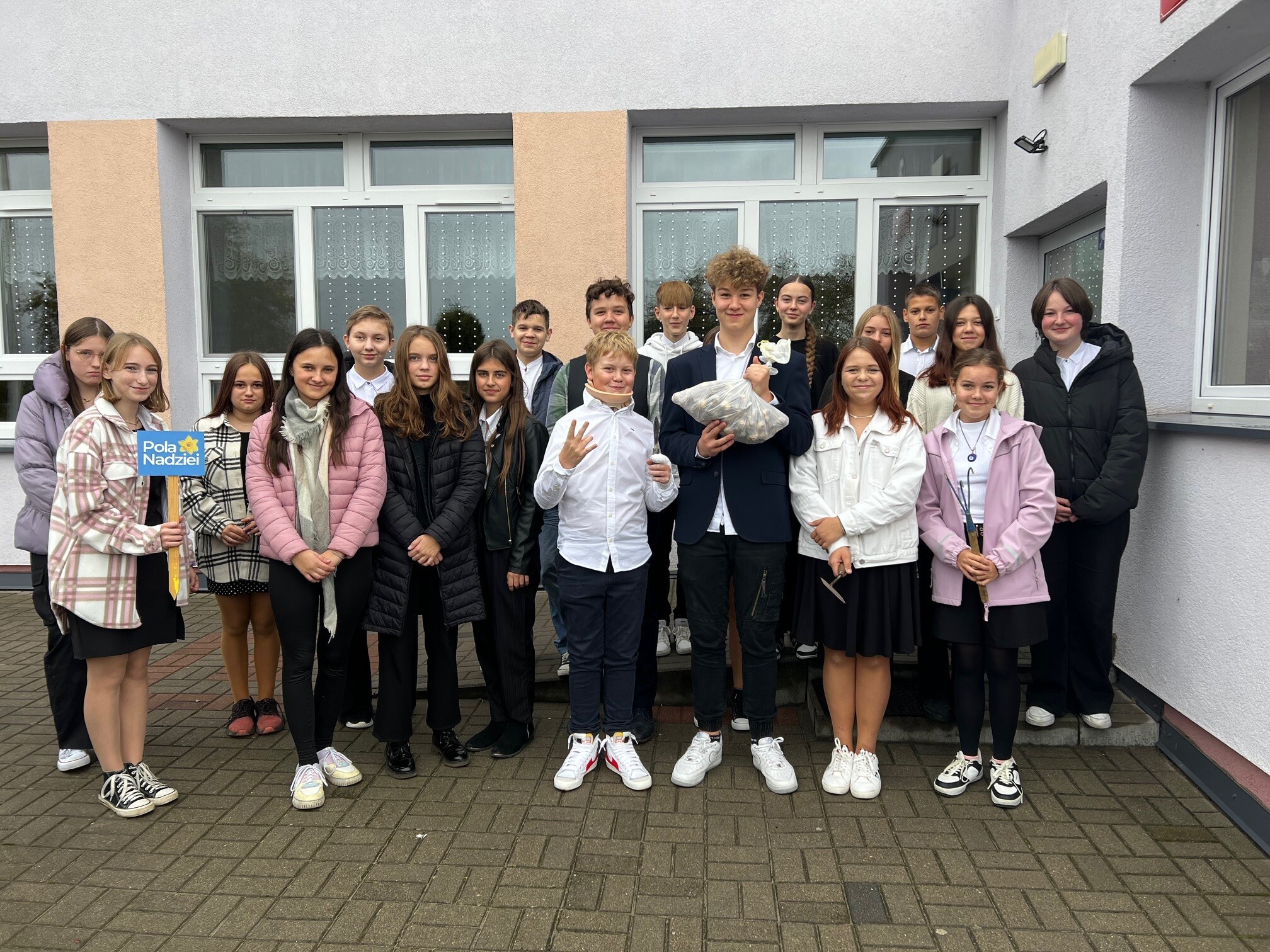 Pola Nadziei - to kampania mająca na celu propagowanie idei wolontariatu oraz bezinteresownej pomocy. To międzynarodowy program realizowany wyłącznie przez hospicja, polegający na sadzeniu jesienią żonkili – symbolu nadziei i tworzeniu „pól nadziei”. Kiedy wiosną zakwitną – są rozdawane w kwestach, a pozyskane w ten sposób fundusze przeznaczone są na budowę Lęborskiego Hospicjum Stacjonarnego. Kampania ta ma na celu szerzenie idei hospicyjnej, edukację i uwrażliwianie społeczeństwa, szczególnie dzieci i młodzieży, na los ludzi chorych i cierpiących. Nasza szkoła w tym roku aktywnie włączyła się w tę akcję. Udział brały klasy VII i VIII pod opieką p. Honoraty Smentoch i p. Eweliny Gańskiej.