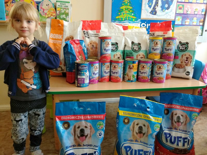 Mikołajkowy prezent dla porzuconych psów, które zostały przygarnięte przez Fundację ,,Końkretnie pomagamy". Dzięki dzieciom, ich rodzicom oraz innym osobom, które okazały chęć pomocy, udało się zebrać spory zapas karmy. Pieskom życzymy - ,,smacznego".