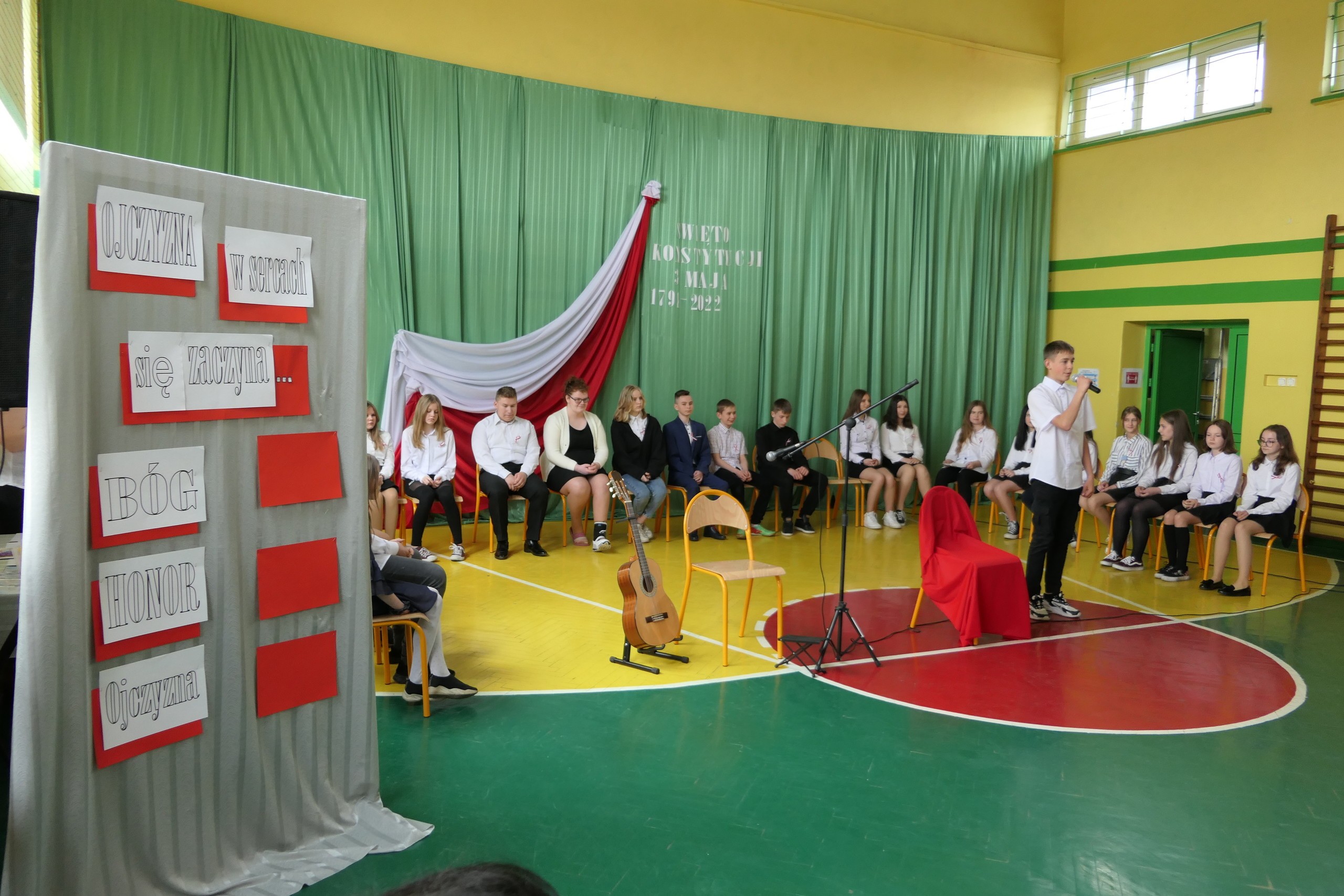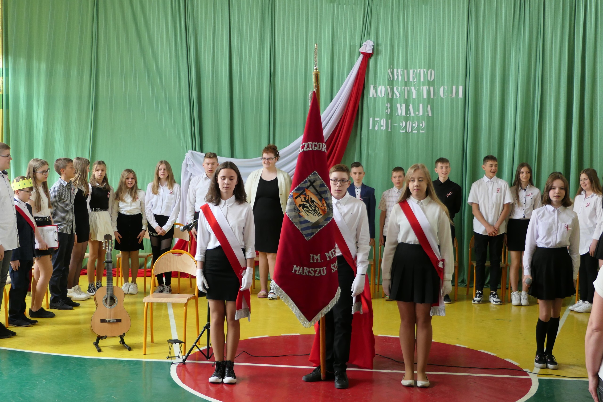 6 maja, piątek uczniowie klasy VII a i VII b wraz ze swoimi wychowawcami: Magdaleną Ośnicką i Marią Cieszkowską zaprezentowali montaż słowno–muzyczny z okazji 231 rocznicy uchwalenia Konstytucji 3 Maja. Na gitarze grała uczennica klasy VII b Natalia Wolska „Ballada o małym rycerzu”. Utwór „Ojczyzna” wykonała Wiktoria Reszka, a Maja Bratek „Moja Ojczyzna”.