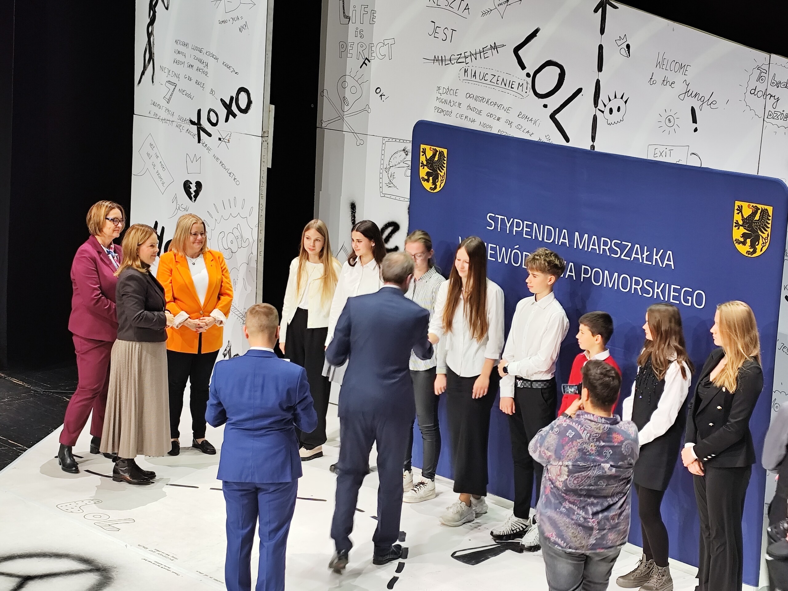 W czwartek, 26 listopada 2025 roku, w Teatrze Szekspirowskim w Gdańsku odbyła się uroczysta gala wręczenia stypendiów Marszałka Województwa Pomorskiego dla najzdolniejszych uczennic i uczniów z całego regionu. Uroczystość rozpoczęła się wyjątkowym spektaklem teatralnym pt. „Dzieła Wszystkie Szekspira (w nieco skróconej wersji)”, który nadał wydarzeniu lekki, humorystyczny i artystyczny charakter. Po zakończeniu przedstawienia przystąpiono do oficjalnej części gali. Z ogromną dumą informujemy, że wśród nagrodzonych znalazła się również uczennica naszej szkoły — Maja Syldatk, która otrzymała Stypendium Marszałka Województwa Pomorskiego. To w pełni zasłużone wyróżnienie, będące efektem jej ciężkiej pracy, determinacji i licznych sukcesów. Gratulujemy Mai i życzymy jej dalszych osiągnięć oraz nieustającego rozwoju!