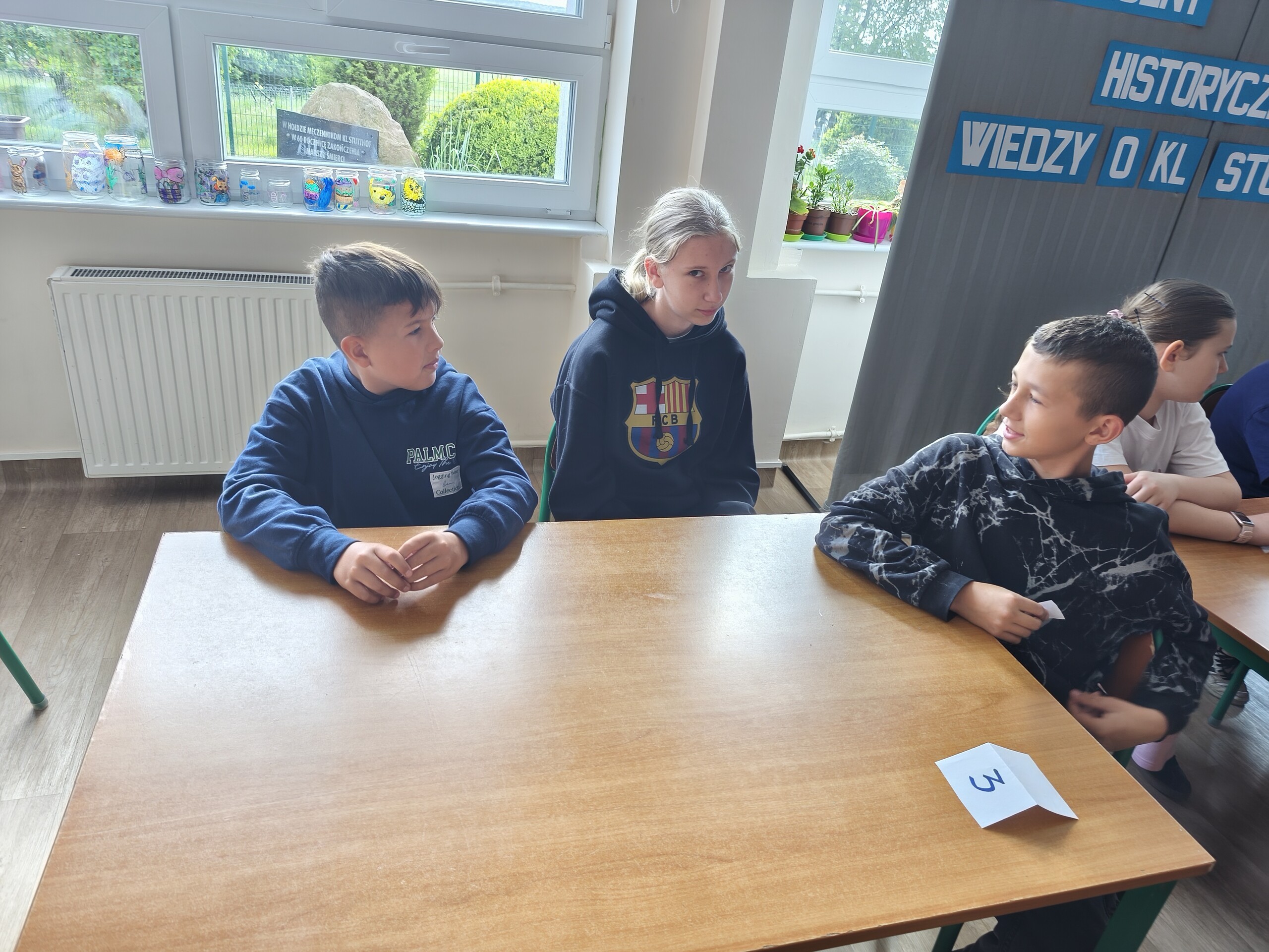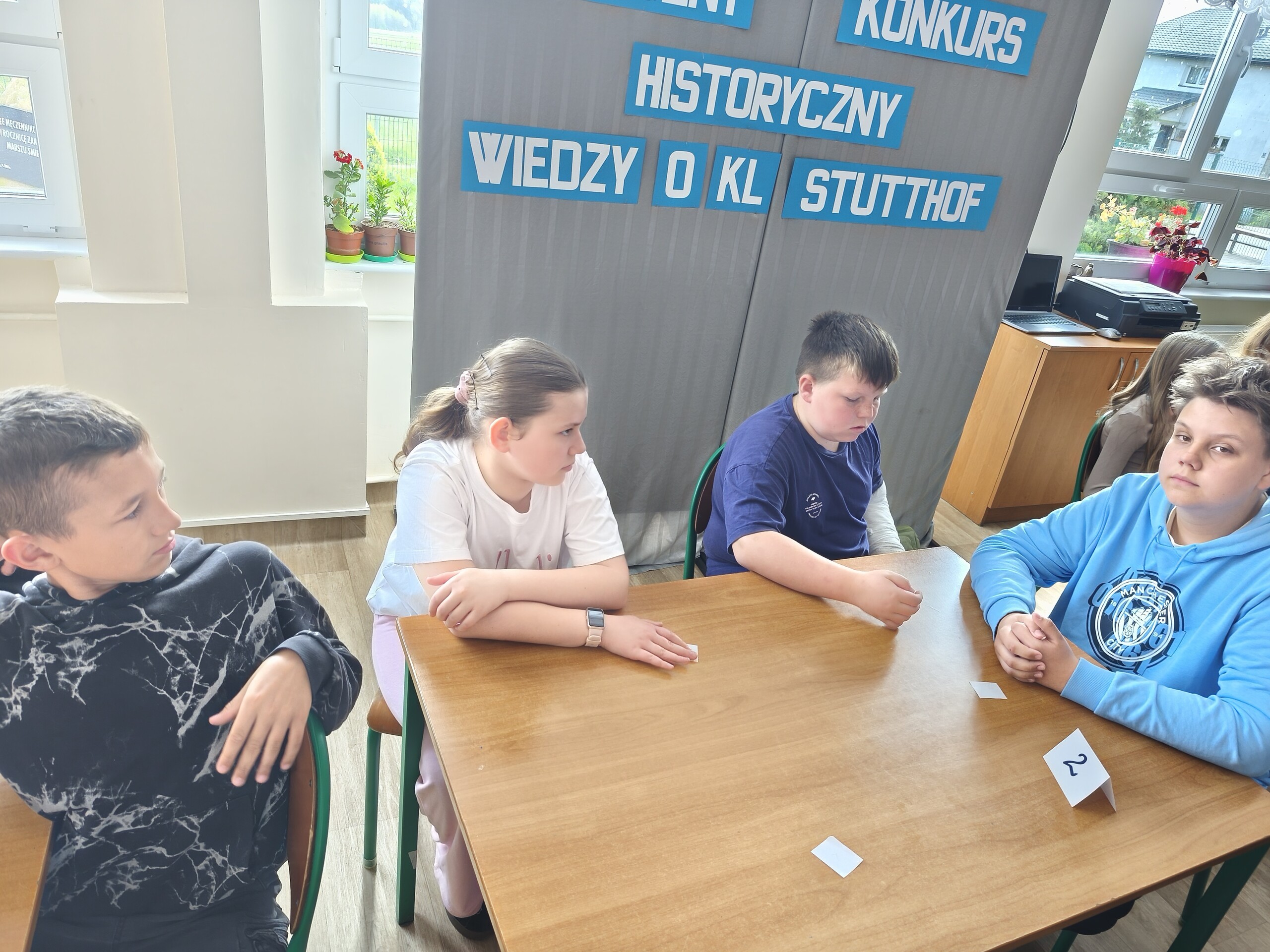 Dnia 23 maja 2025 r. odbył się II etap Szkolnego Konkursu Historycznego Wiedzy o KL Stutthof. Uczniowie klas IV-VI wylosowali grupy, a w każdej z nich znalazł się czwarto-,piąto- i szóstoklasista. Po naradzie odpowiadali na wybrane przez siebie pytania.