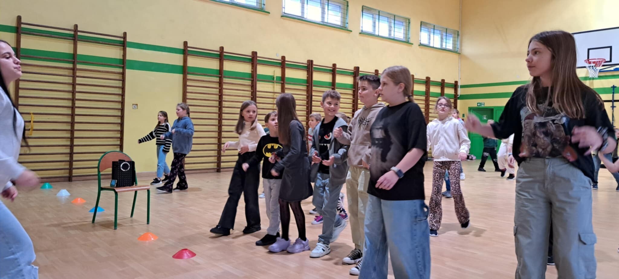 Dzisiejsza młodzież spędza większość wolnego czasu przed ekranem telefonu. Można to zaobserwować również wśród uczniów naszej szkoły. Samorząd Uczniowski postanowił wyjść temu naprzeciw i od października organizuje taneczny wtorek. Tego dnia, na długich przerwach chętni uczniowie spędzają na sali gimnastycznej i przy muzyce wykonują różne układy taneczne przygotowane przez uczennice klasy 8a: Marcjannę Itrych, Wiktorię Bemowską, Oliwię Miedzińską, Małgorzatę Krotoszyńską i Alicję Postma.