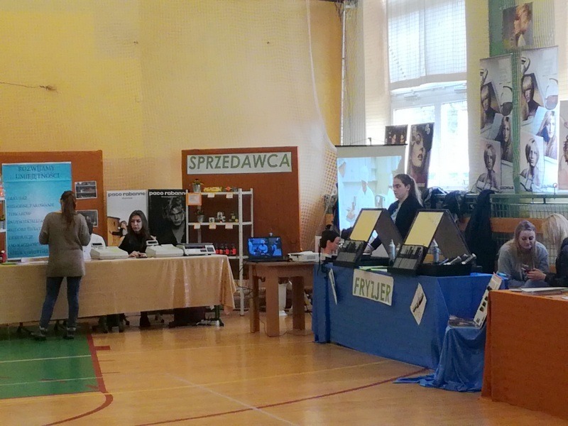 Oglądali też filmy- prezentacje szkół. Na sali, przy bogato wyposażonych stanowiskach, uczniowie danej szkoły zachęcali do wyboru kierunków o różnym profilu. Ósmoklasiści z chęcią włączali się do wykonania pewnych zadań, związanych z konkretnym zawodem. Wizyta w szkołach: ZSM-I, LO nr 1, LO nr 2, PCE i ZSGZIA w dużym stopniu pomogła uczniom w wyborze przyszłego kierunku edukacji.