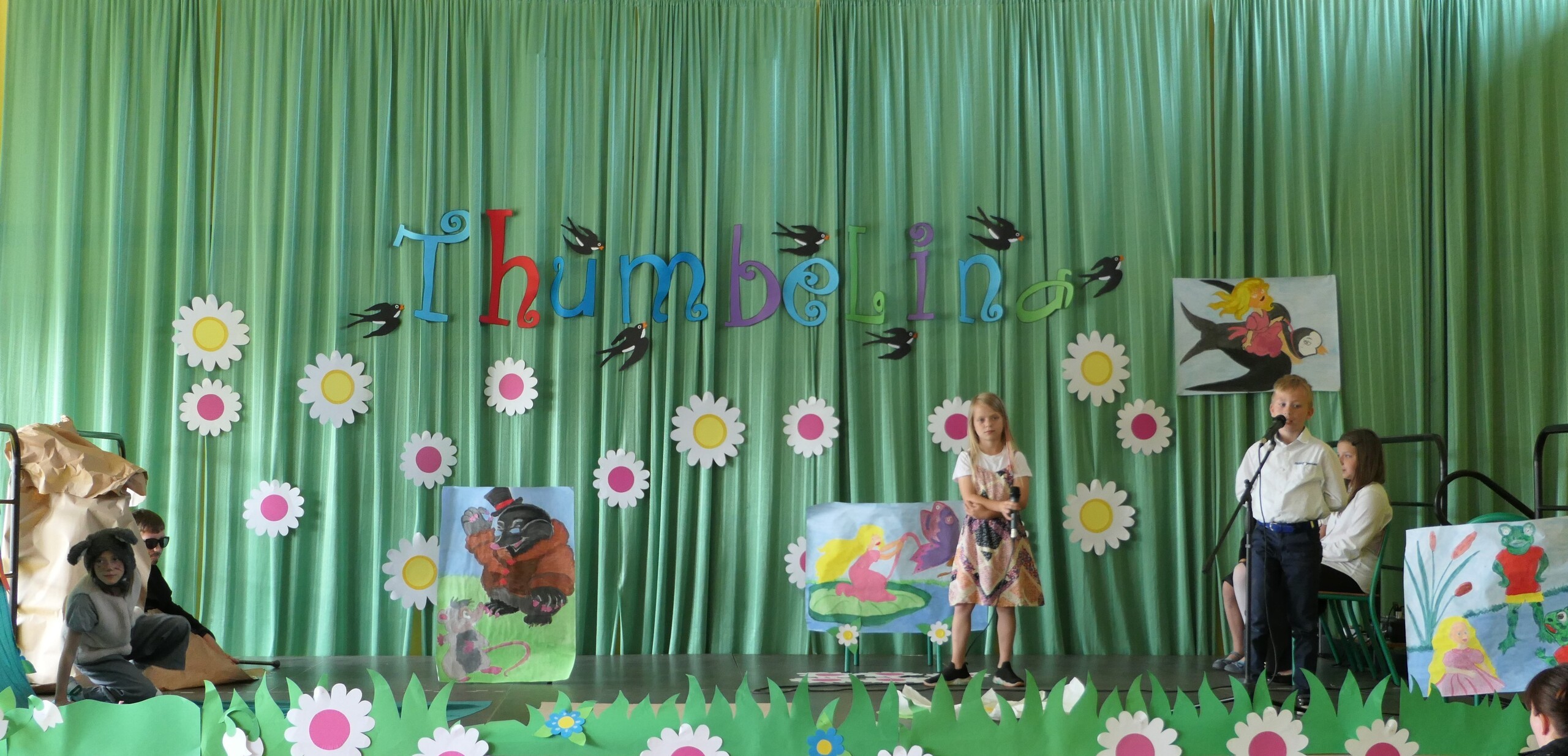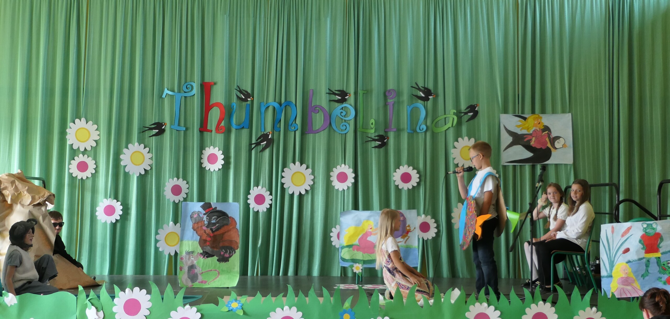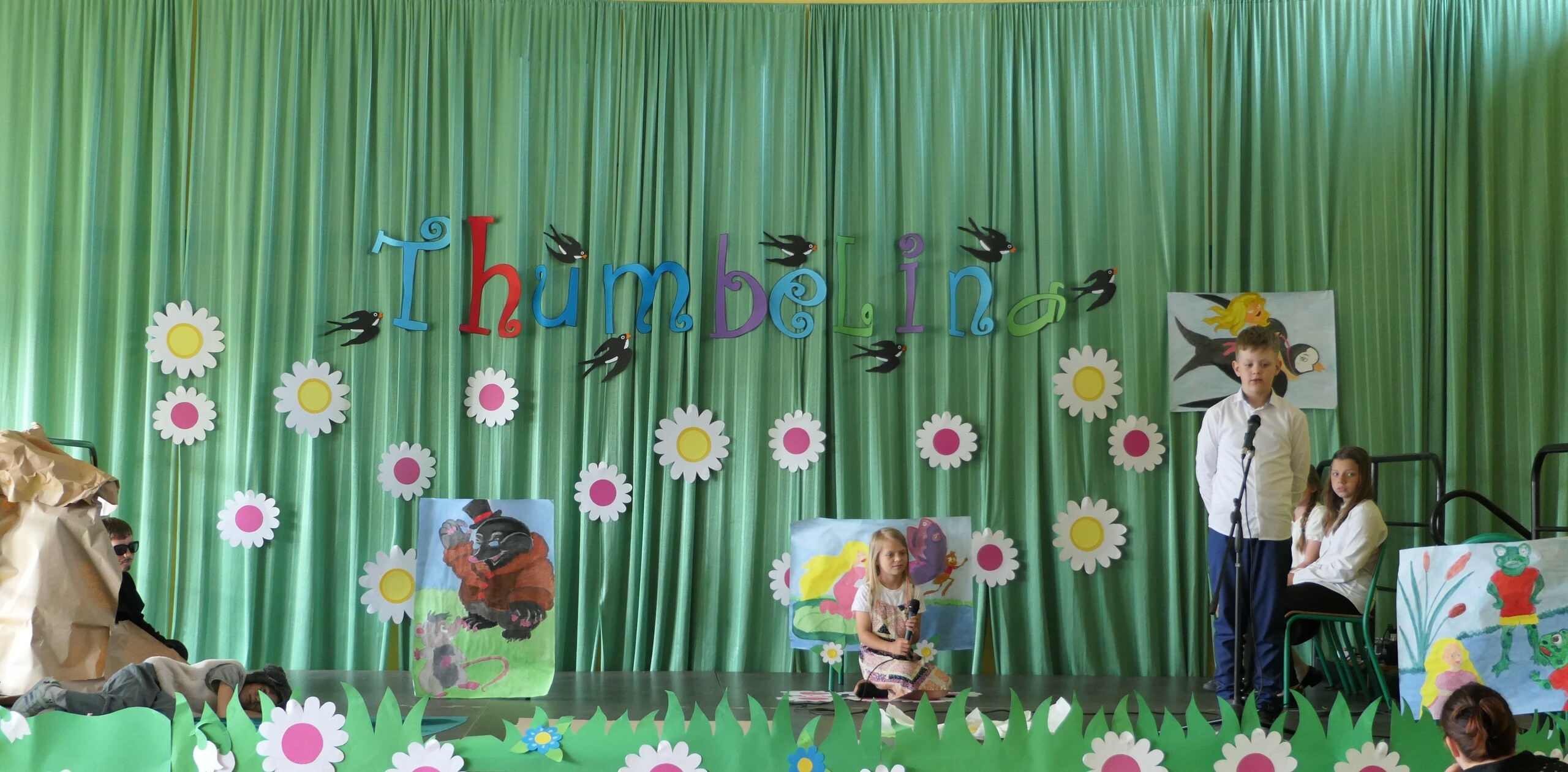 W dniu dzisiejszym uczniowie klasy III pod kierunkiem pani Patrycji Czachorowskiej zaprezentowali przedstawienie w języku angielskim pod tytułem "Thumbelina"-Calineczka. Dzieci włożyły dużo pracy i wysiłku w przygotowanie strojów i naukę tekstu. Wszyscy zaproszeni goście (uczniowie szkoły i przedszkolaki) oraz rodziny aktorów nagrodzili dzieci gromkimi brawami. Efekt można zobaczyć na zdjęciach.