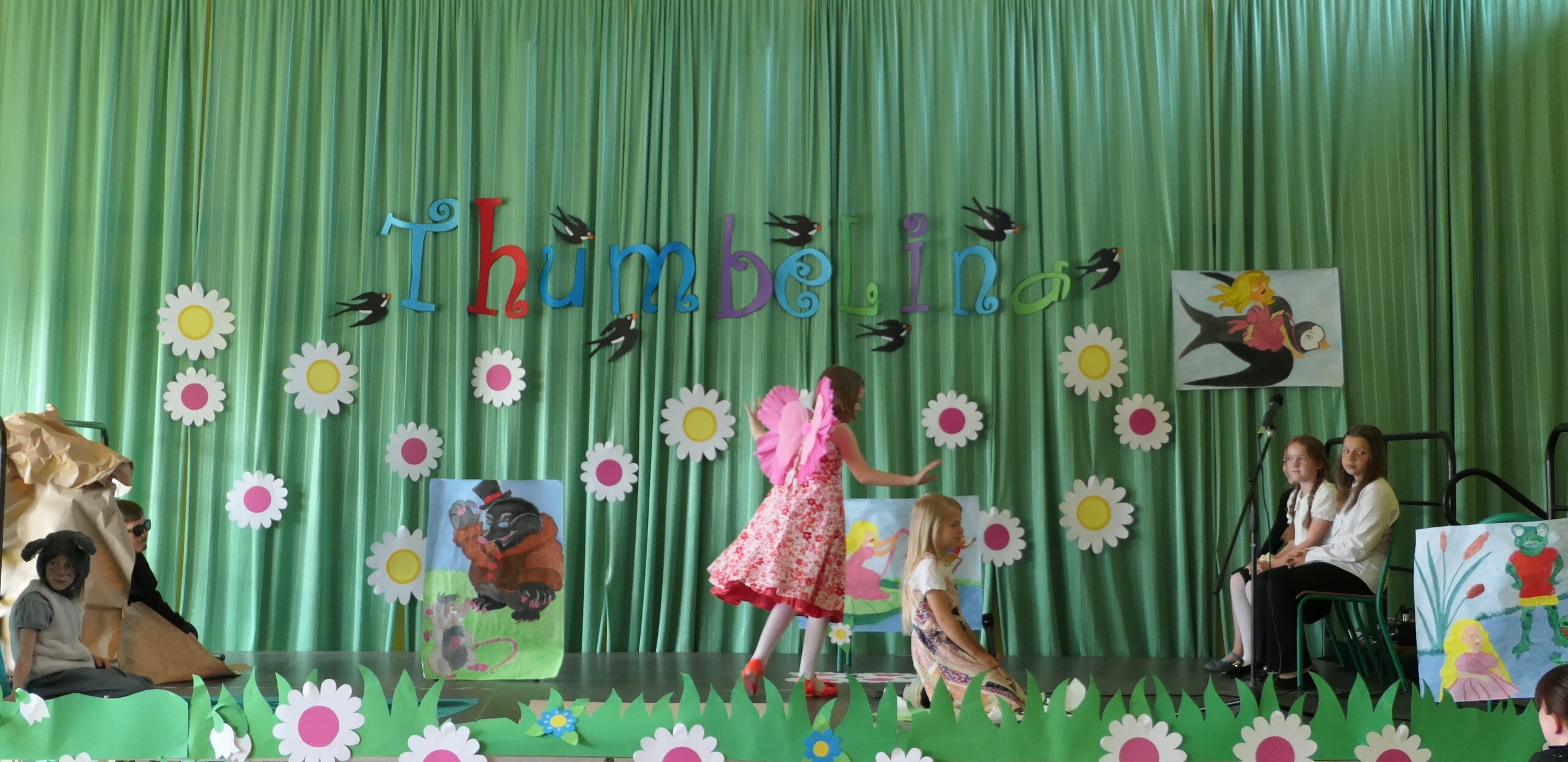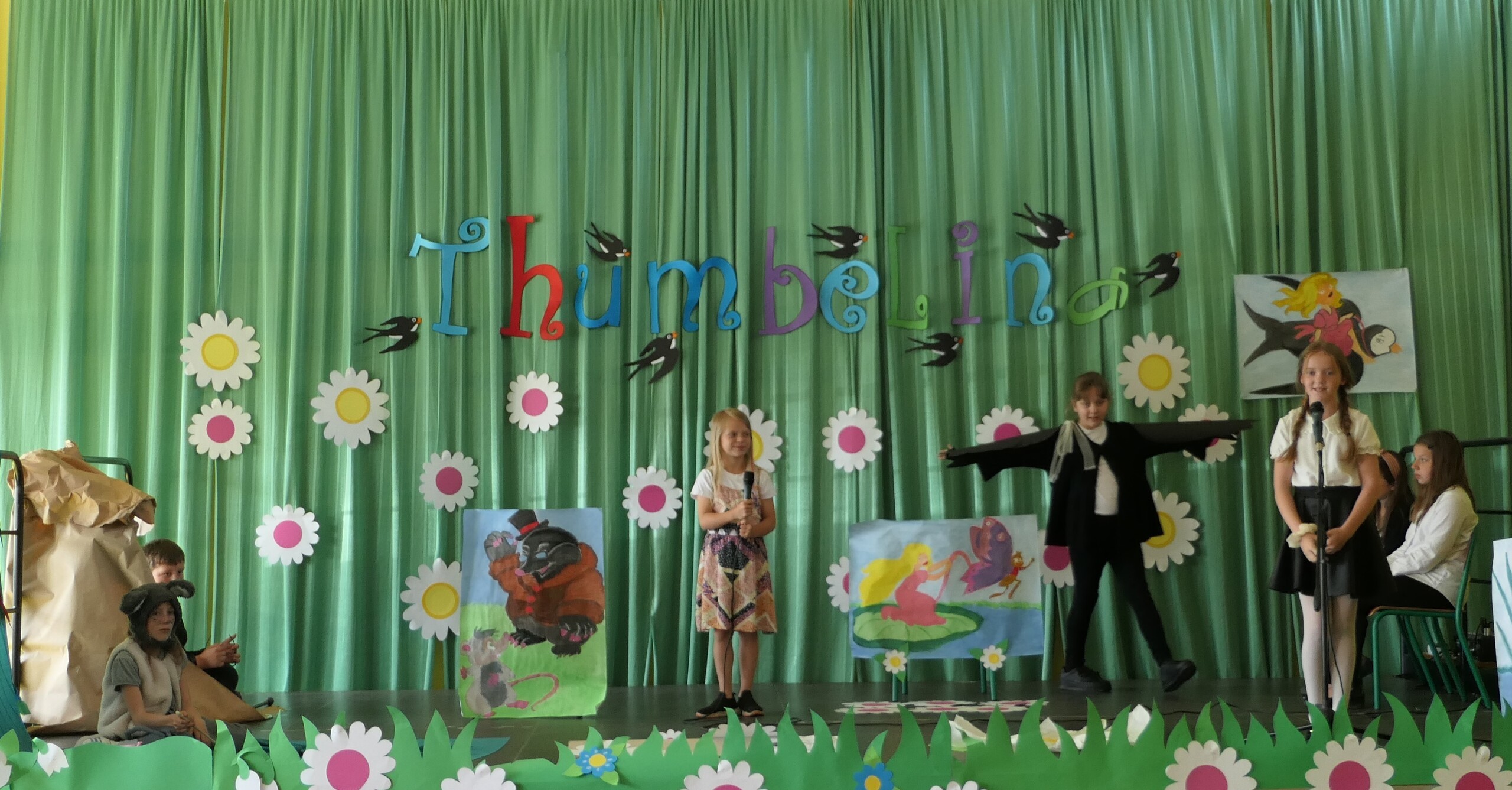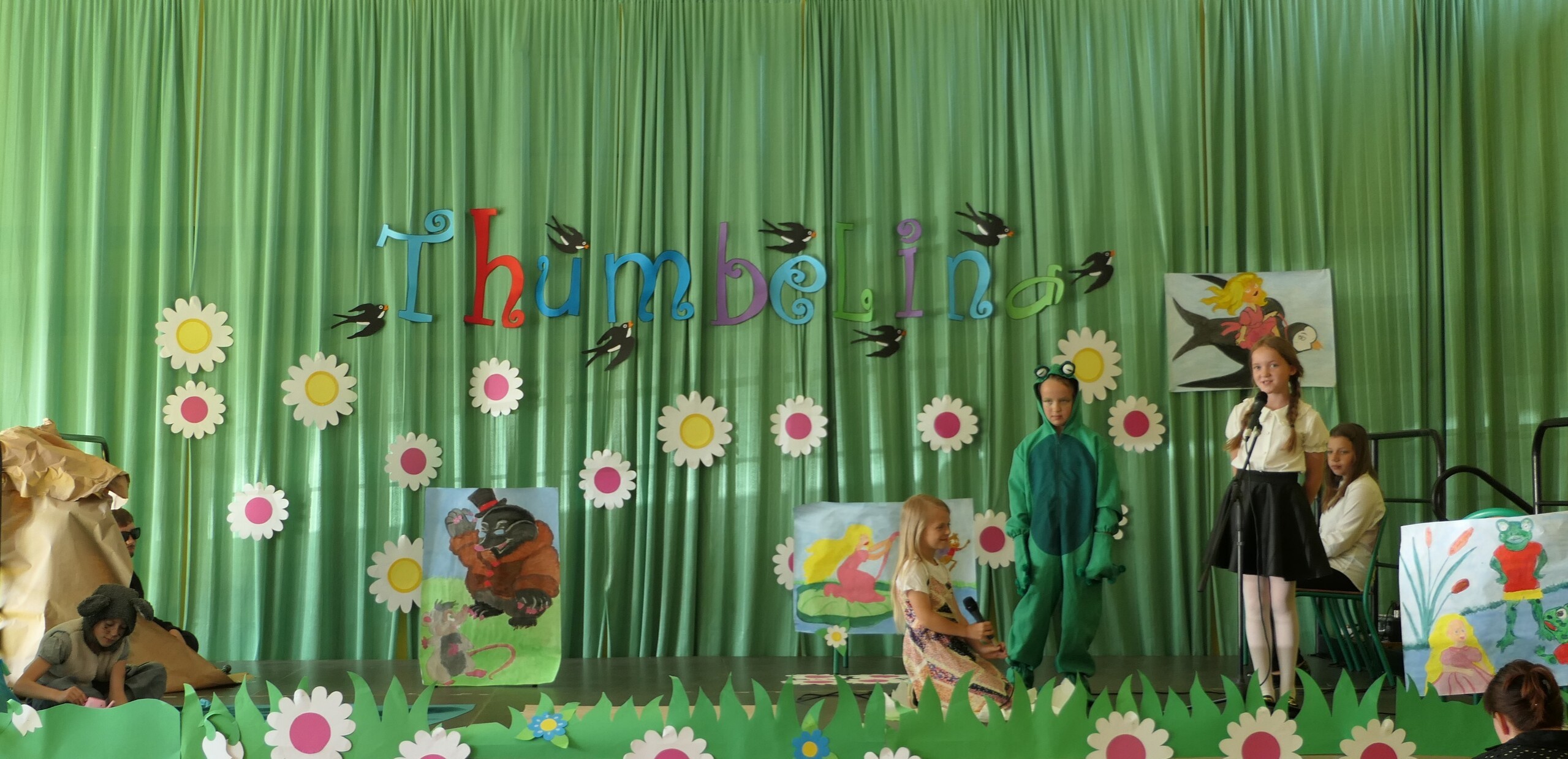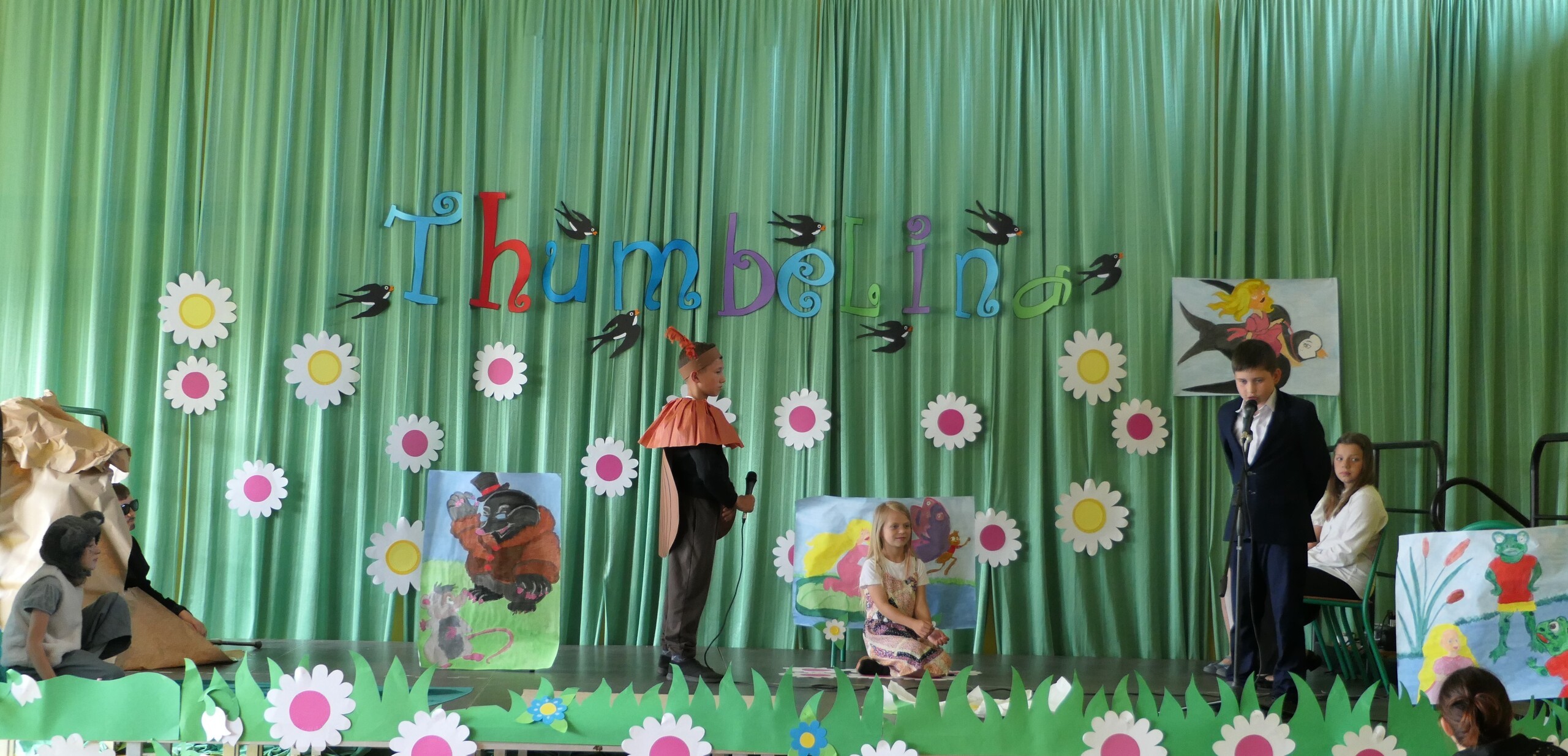 W dniu dzisiejszym uczniowie klasy III pod kierunkiem pani Patrycji Czachorowskiej zaprezentowali przedstawienie w języku angielskim pod tytułem "Thumbelina"-Calineczka. Dzieci włożyły dużo pracy i wysiłku w przygotowanie strojów i naukę tekstu. Wszyscy zaproszeni goście (uczniowie szkoły i przedszkolaki) oraz rodziny aktorów nagrodzili dzieci gromkimi brawami. Efekt można zobaczyć na zdjęciach.