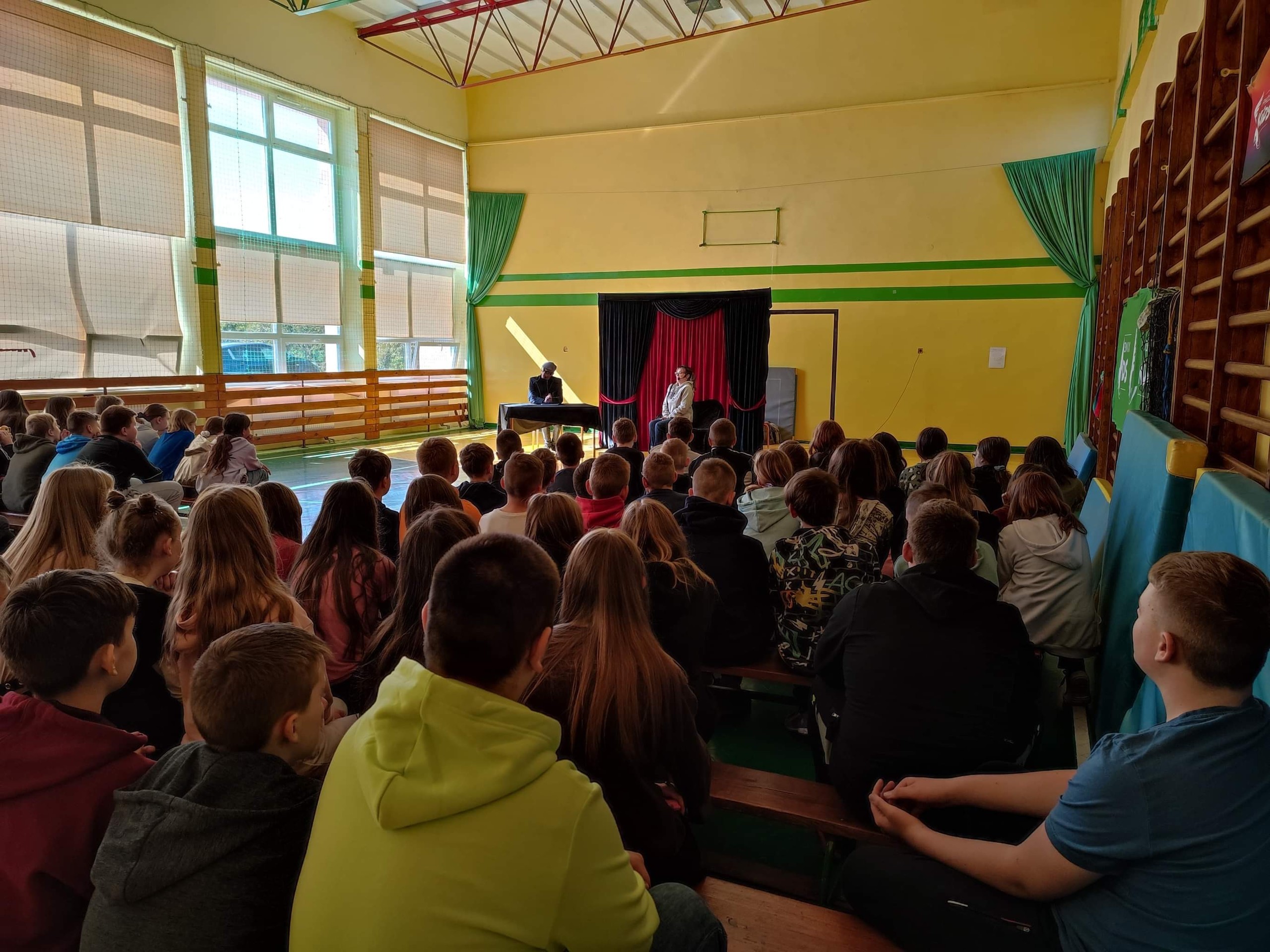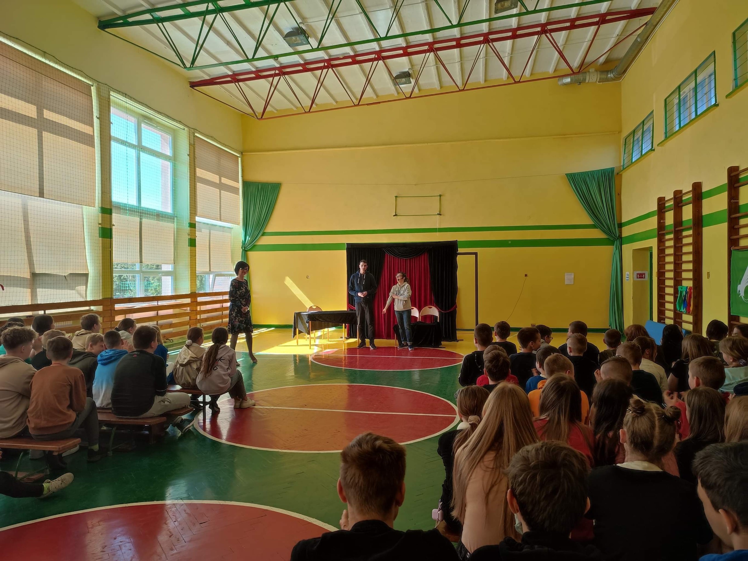 Uczniowie klas 0-3 uczestniczyli w przedstawieniu pt. "Mapa skarbów" Opisuje ono historię małego i niesfornego chłopca o imieniu Oskar. Chłopak chciałby spędzać całe popołudnia i wieczory na robieniu psikusów rodzicom oraz na graniu w gry komputerowe. Jednak jego rodzice nie pozwalają mu na codzienne granie z uwagi na jego zdrowie a także z powodu powtarzającego się często złego zachowania chłopca. Aby odciągnąć go od komputera, poza aktywnością fizyczną, mama znalazła jeszcze jeden sposób na zagospodarowanie czasu nudzącego się synka. Oskar daje się przekonać do czytania książek. Jedna z nich o piratach uwalnia w chłopcu drzemiące pokłady wyobraźni. Dzięki magicznemu listowi znalezionemu w owej książce, Oskar oczami fantazji przenosi się do bajkowego świata piratów. Przemienia się w korsarza który odnajdując zaginioną mapę wyrusza w podróż żeby zdobyć ukryty skarb kapitana Cooka. Podróż ta jest pełna przygód, muzyki i tańca a w wypełnionej akcją historii pojawiają się różne postaci. Jedną z nich jest czarny charakter o sympatycznym imieniu Gucio, który rywalizując z Oskarem spróbuje za wszelką cenę zdobyć skarb dla siebie. Przed Oskarem bardzo trudne zadanie jakim jest pokonanie Gucia i przekonanie go, że takie cnoty jak dobro i chęć dzielenia się są lepsze od zła i chciwości. Ten spektakl zwracał uwagę na kształtowanie postaw społecznych - wytrwałość w działaniu i dążeniu do celu, umiejętność właściwego zachowania się w sytuacjach zwycięstwa i porażki, nawiązywania i podtrzymywania relacji z rówieśnikami, rozpoznawania ich potrzeb, empatia i szacunek dla słabszych.