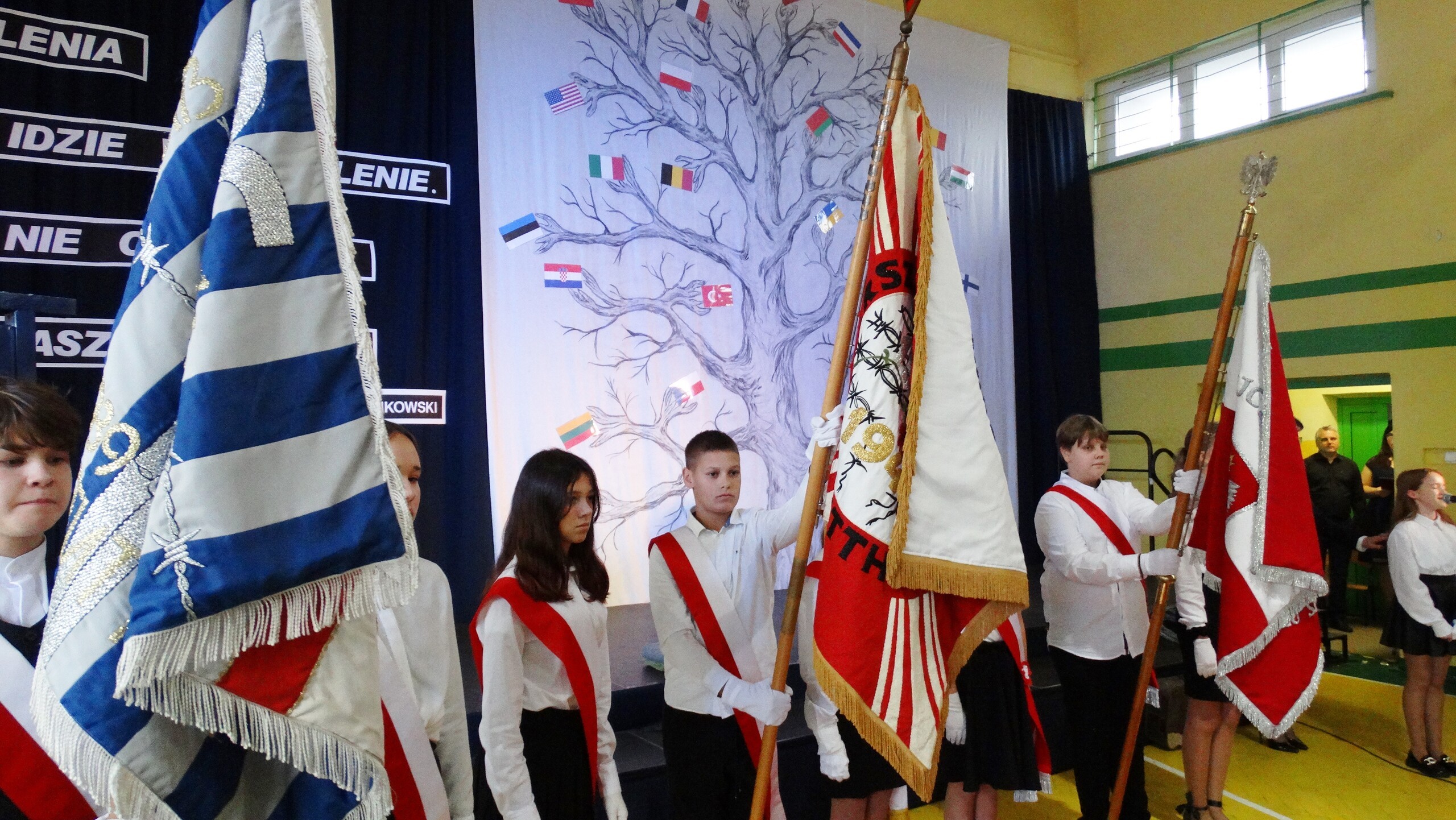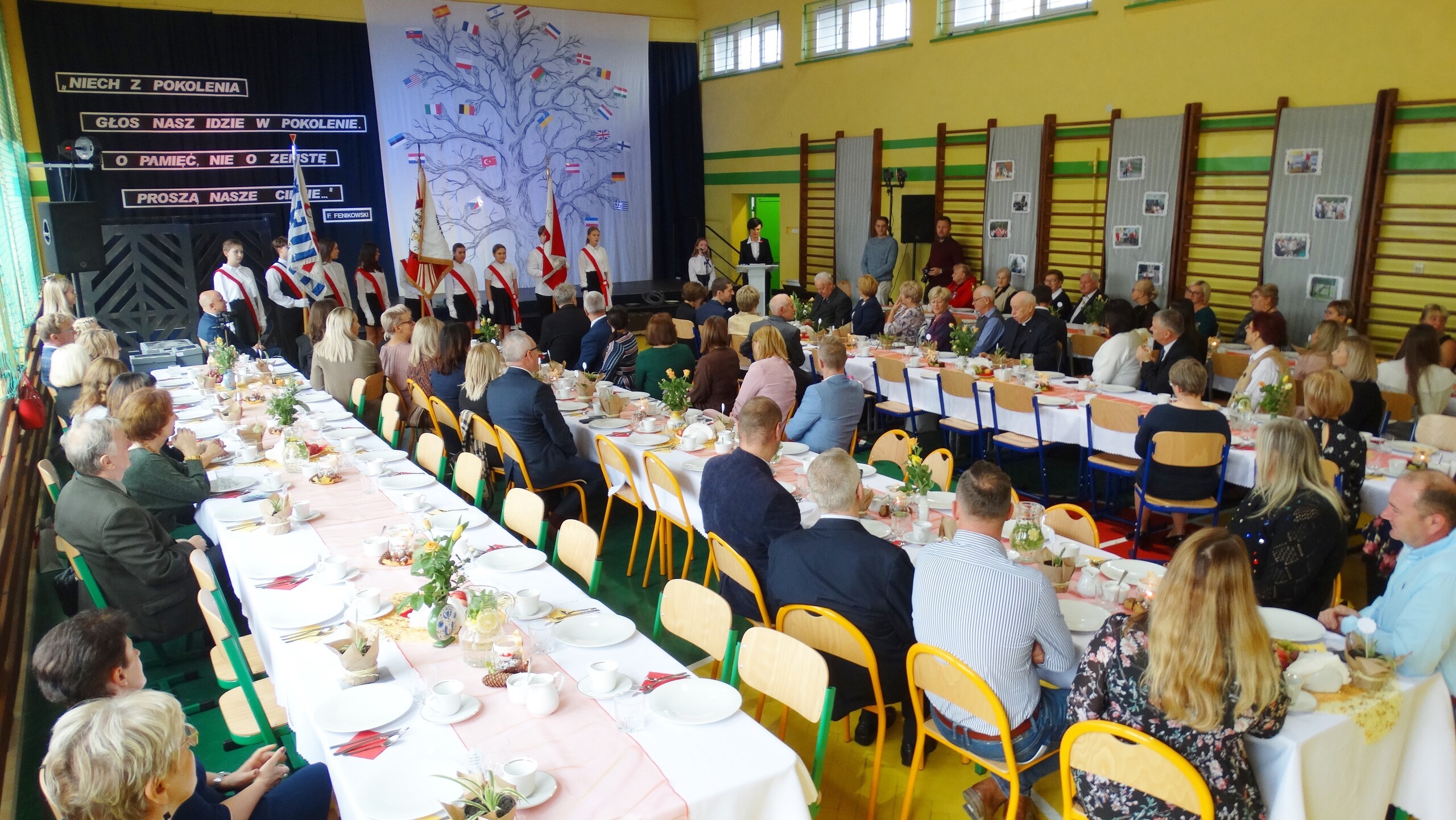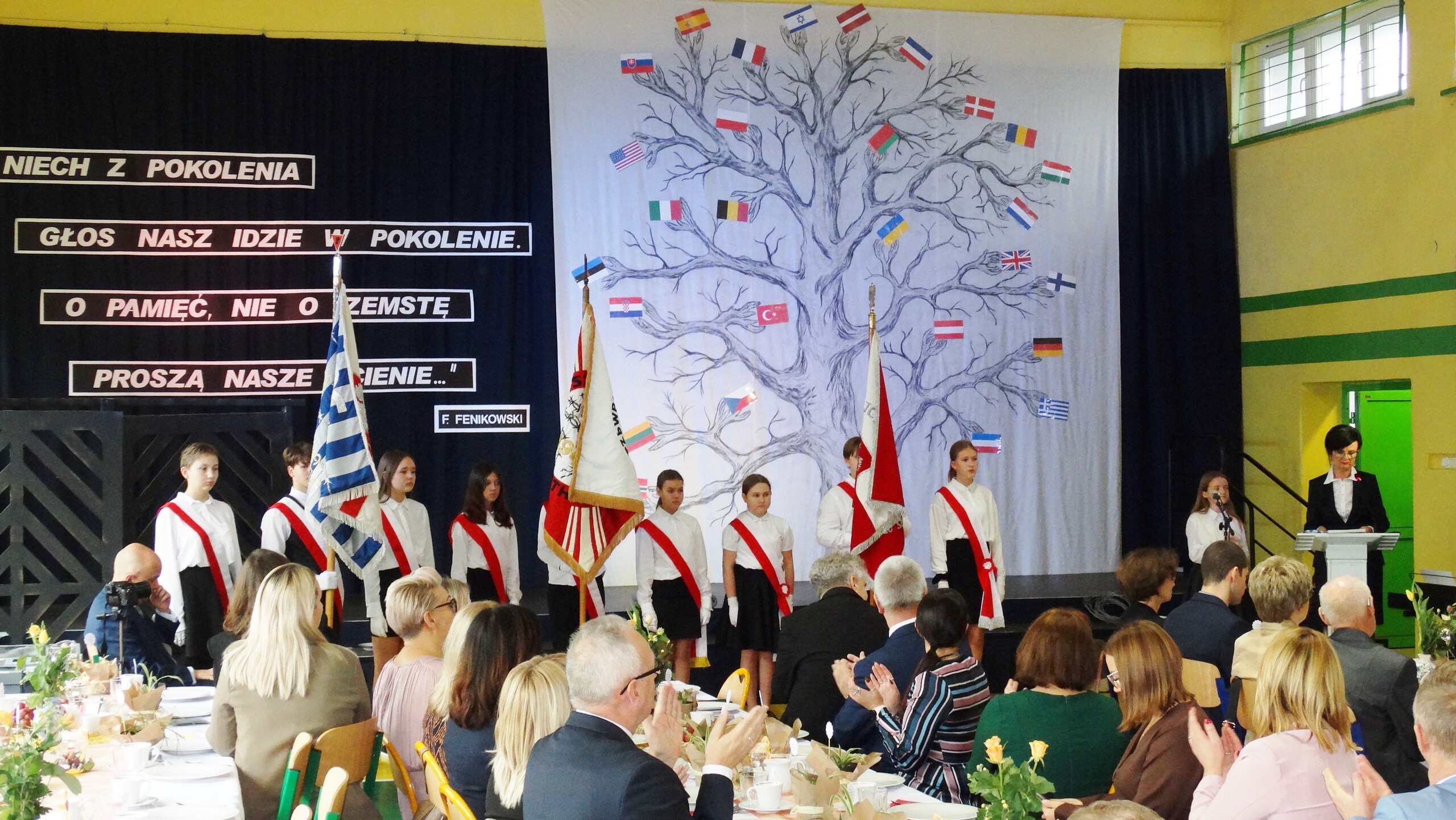 Dzisiaj społeczność szkolna i zaproszeni goście uczestniczyli w święcie szkoły z okazji jubileuszu-20 rocznicy nadania placówce imienia. Niestety, wśród gości zabrakło tych, którym to imię jest poświęcone- byłych więźniów KL Stutthof.