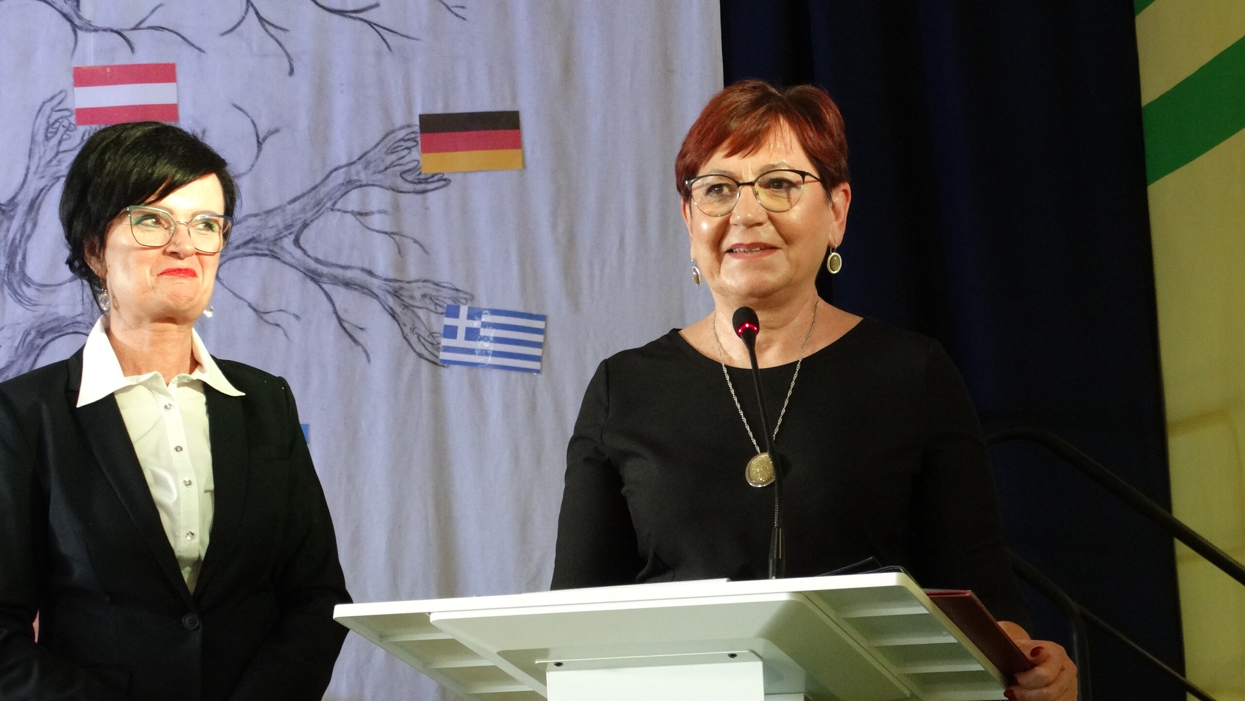 Pani dyrektor Alicja Guźniczak w szczególny sposób przywitała rodziny byłych więźniów:córkę i wnuka pani Elżbiety Szucy- Marcinkowskiej-panią Danutę Hrynkiewicz i pana Wojciecha Hrynkiewicz, córki i syna pana Wernera Feliksa Rzeźnikowskiego: panią Krystynę Kowalke, panią Mirosławę Mikołajczyk i pana Mariana Rzeźnikowskiego.