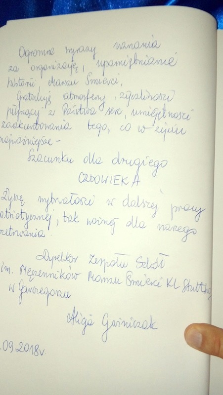 W niedzielę 16 września 2018 r. na Cmentarzu Ofiar „Marszu Śmierci" w Rybnie odbyła się uroczystość ku czci ponad 800 spoczywających tam ofiar, a także wszystkich więźniów, których hitlerowscy zbrodniarze na przełomie lutego i marca 1945 r., w obawie przed wkraczającą Armią Czerwoną, ewakuowali z obozu koncentracyjnego Stutthof. Wielu z nich nie doczekało wolności, znacząc krwią i ciałami tragiczną drogę ewakuacji.