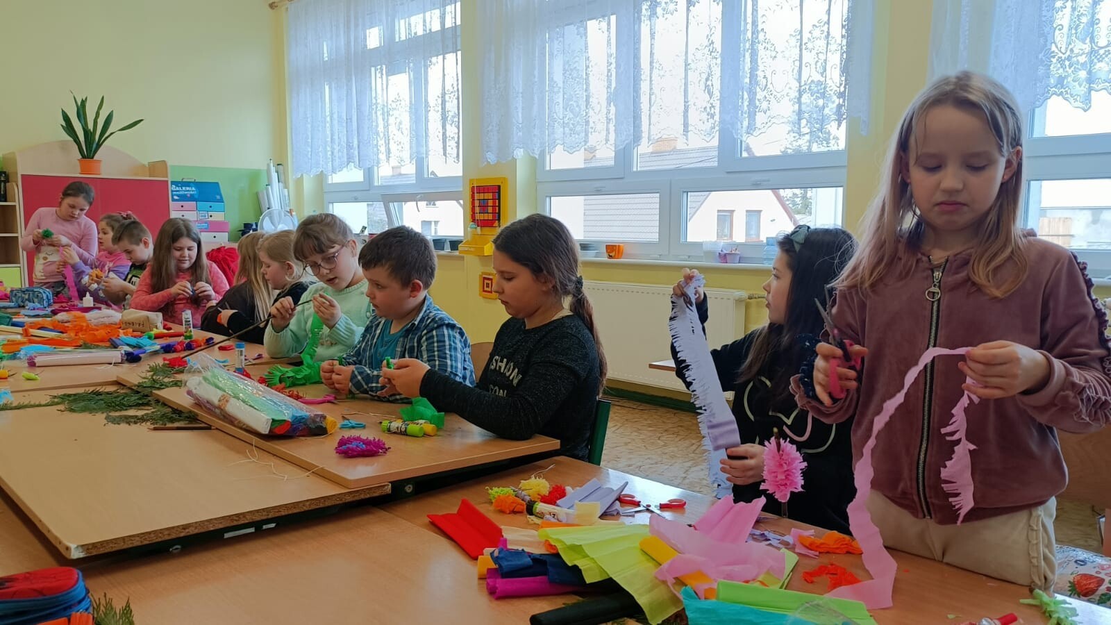 Z okazji nadchodzących Świąt Wielkanocnych 23 marca w naszej szkole zorganizowano warsztaty wyrobu palem wielkanocnych dla młodszych uczniów uczęszczających na zajęcia z języka kaszubskiego. Celem zajęć było przybliżenie tradycji Świąt Wielkanocnych, doskonalenie umiejętności współpracy, rozwijanie poczucia estetyzmu i rozbudzanie wyobraźni.