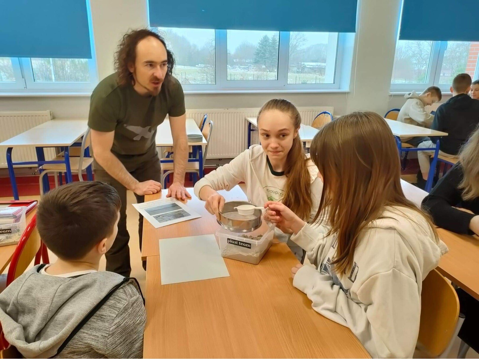 18 marca uczniowie naszej szkoły (klasa 6 i 7) skorzystali z zaproszenia p. Ewy Gwiazdy – nauczycielki ze Szkoły Podstawowej w Szczenurzy i wzięli udział w warsztatach przyrodniczych. Przesiewali piasek z plaży i poszukiwali tego, co osadził na brzegu Bałtyk. Wśród niewielkich organizmów, pustych muszelek czy kawałków patyków odnajdywali tzw. nurdle (mikroplastik) - granulki powszechnie stosowane w przemyśle tworzyw sztucznych. Nurdle stanowią ogromne zagrożenie dla wszystkich organizmów żyjących. W drugiej części zajęć nasi uczniowie przeprowadzali doświadczenia z wykorzystaniem zasolenia wody oraz pojemności cieplnej powietrza i wody. Warsztaty przeprowadzili edukatorzy Słowińskiego Parku Narodowego.