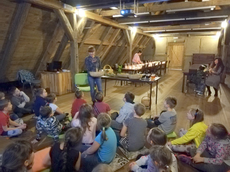 29 marca uczniowie naszej szkoły uczęszczający na zajęcia j. kaszubskiego wzięli udział w wycieczce do Swołowa- Muzealnej Zagrody Albrechta . Poznały metody zdobienia jaj-malowanie farbami, oklejanie, decupage, wydrapywanie, wycinanie. Ale najważniejszy był powrót do przeszłości czyli malowanie jaj woskiem. Większość dzieci malowała woskiem po raz pierwszy. Podczas wspólnej pracy każde dziecko miało swój pomysł na wzór i kolor. Każdy uczeń wrócił do domu z własnoręcznie wykonaną pisanką, którą będzie można umieścić na wielkanocnym stole.