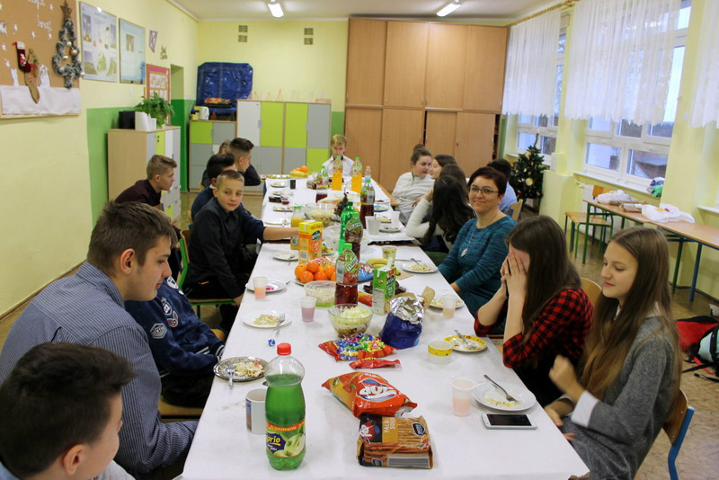 Tradycyjnie wszystkie klasy w ostatni dzień szkoły w bieżącym roku spotykają się z wychowawcami na klasowych Wigiliach. Przy zastawionych stołach i dźwiękach kolęd, dzielą się opłatkiem i składają sobie życzenia. Do najmłodszych klas zawitał również św.Mikołaj. Ten wyjątkowy dzień wszyscy zapamiętamy na długo.