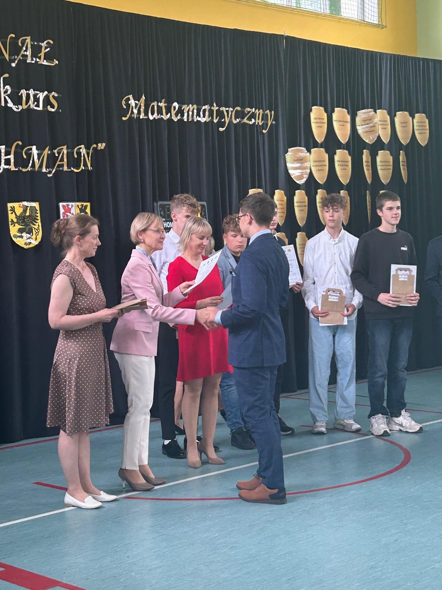 Z radością informujemy, że nasz uczeń, Błażej Popiela z klasy VIII, osiągnął wspaniały sukces w III Wojewódzkim Konkursie Matematycznym Mathman, organizowanym w Szkole Podstawowej im. Tajnej Organizacji Wojskowej "Gryf Pomorski" w Redkowicach. Zajął czwarte miejsce, co stanowi ogromne osiągnięcie w tak prestiżowym wydarzeniu. Błażej wykazał się ogromną wiedzą, umiejętnościami oraz zaangażowaniem, co umożliwiło mu zdobycie tak wysokiej lokaty. Należy podkreślić, że przygotowania do konkursu były możliwe dzięki wsparciu i opiece pani Ewy Roszko, która skrupulatnie przygotowywała ucznia do tego wyzwania. Serdecznie gratulujemy Błażejowi oraz dziękujemy pani Ewie Roszko za jej nieocenioną pracę i zaangażowanie w rozwój matematyczny naszych uczniów! To sukces, który na pewno będzie inspiracją dla innych.