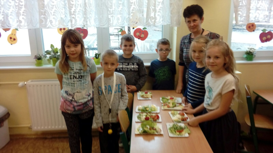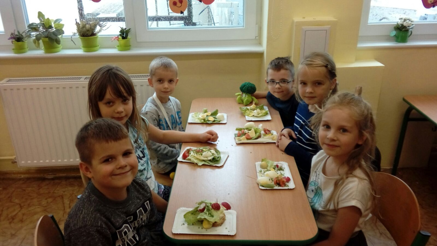 Pierwszaki poznały literkę j i ukazały swoje talenty kulinarne wykonując rozmaite smakołyki z jajek, rzodkiewki, sałaty i innych warzyw. Na tackach pojawiły się myszki, statki, misie i wieże obserwacyjne. Zajęcia dostarczyły dzieciom wiele radości i niezapomnianych wrażeń. Każdy ze smakiem zjadł swoje "dzieło". Zajęcia te pomogą w miły sposób utrwalić poznaną literę.