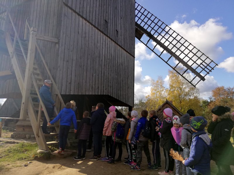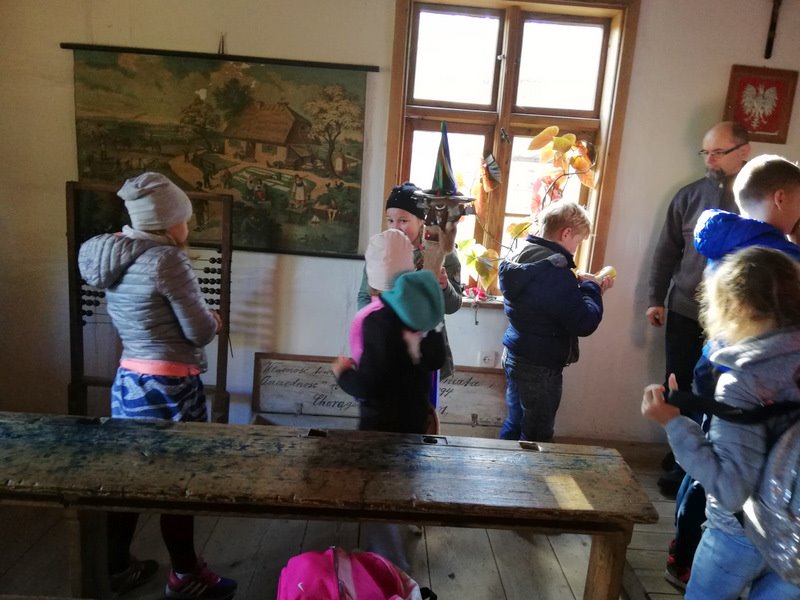 Podczas spacerów po Parku zwiedziliśmy m. in.: chałupy, zagrody, kościół, szkołę, dworki oraz wiatrak - we wszystkich tych miejscach oprowadzali nas i opowiadali o dawnych czasach i zwyczajach wspaniali przewodnicy.