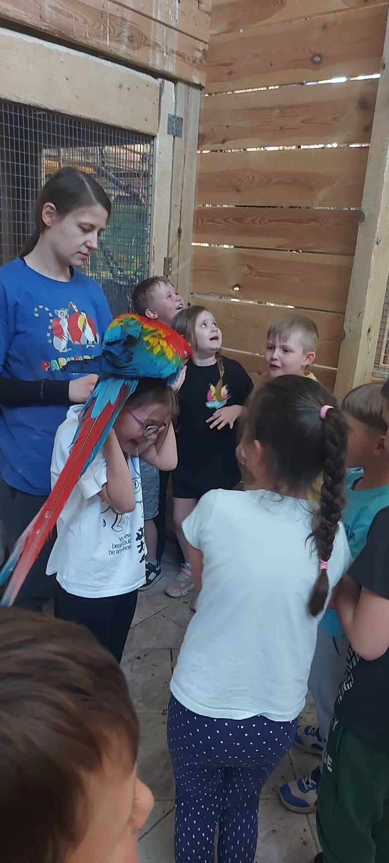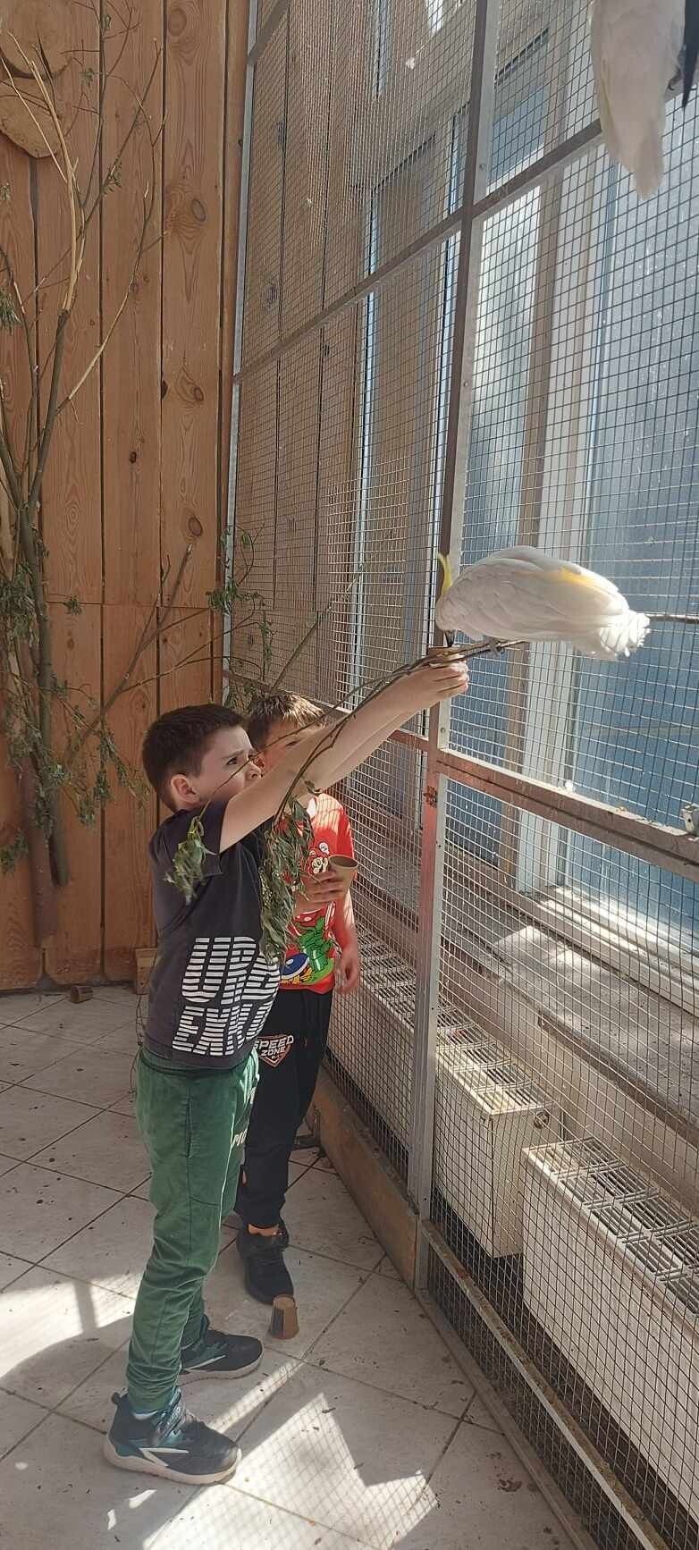 Kolejnym punktem wycieczki była wizyta w papugarni. Spotkanie z różnorodnymi gatunkami papug było niezapomnianym doświadczeniem. Dzieci mogły zobaczyć z bliska te piękne ptaki, dowiedzieć się o ich zwyczajach i nawet je nakarmić. Kolorowe papugi wzbudziły ogromne zainteresowanie i zachwyt u wszystkich uczestników.