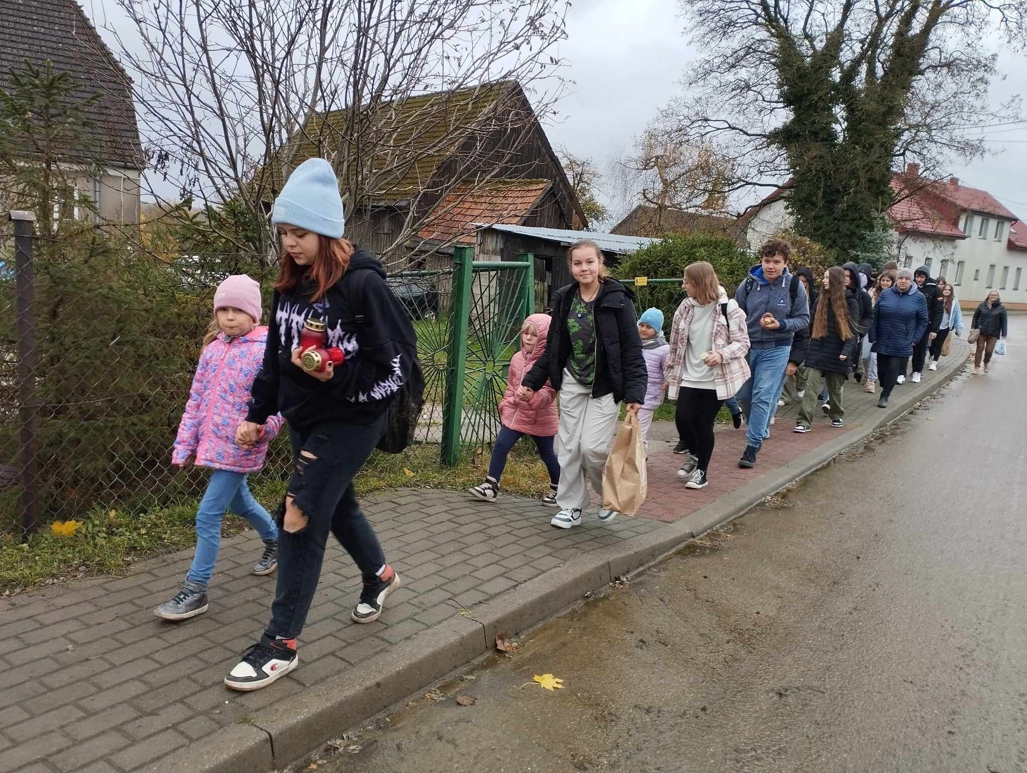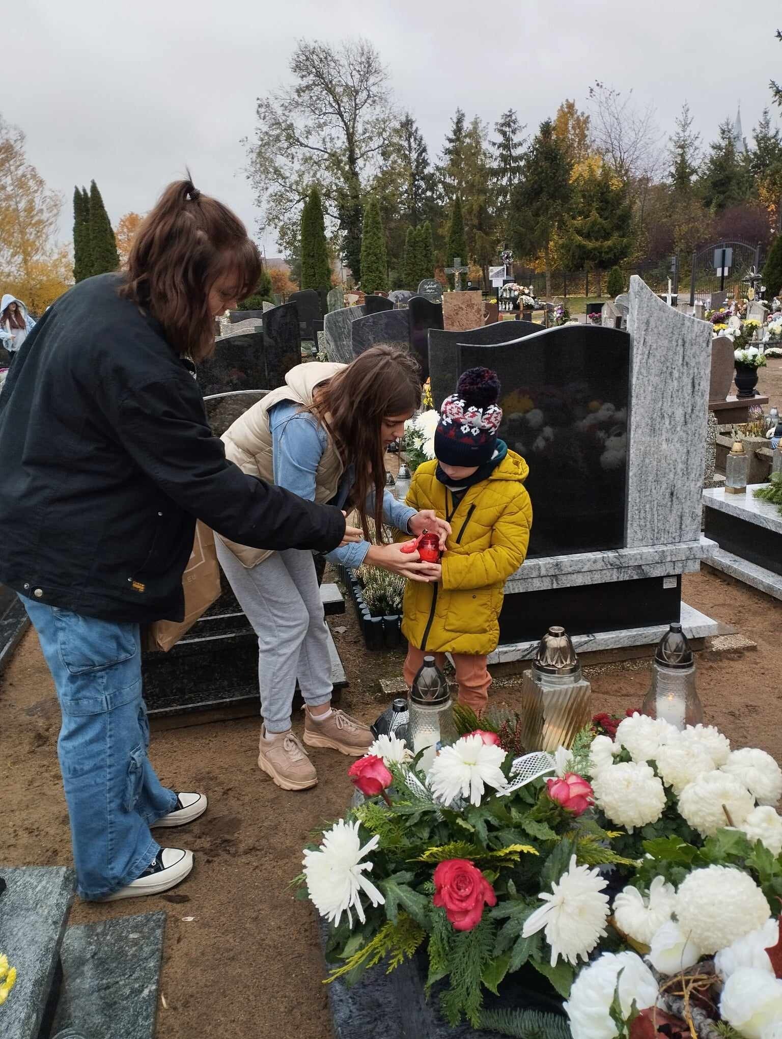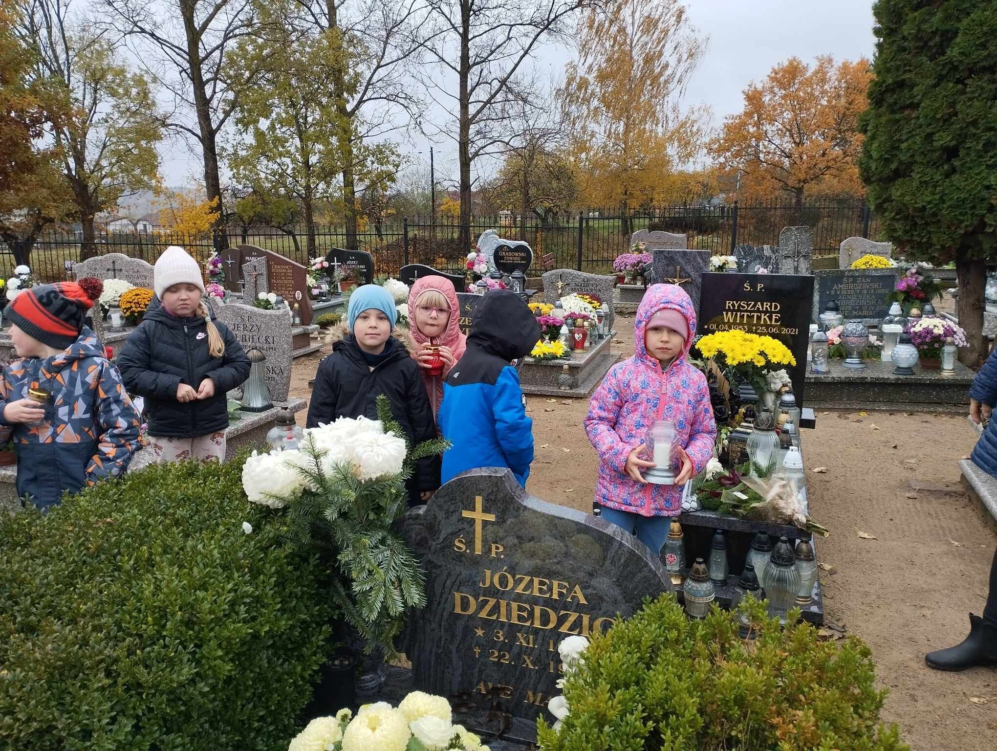 Dnia 6 listopada 2023 r. dzieci z oddziału Przedszkolnego w Garczegorzu wraz z wolontariuszami z klas VII I VIII pod opieką pani Sabiny Semak-Studniarz i pani Honoraty Smentoch odwiedziły cmentarz w Garczegorzu w ramach akcji "Szkoła Pamięta". Uczniowie złożyli znicze na grobach swoich krewnych oraz zapomnianych mogiłach. Wolontariusze pomagali młodszym uczniom odszukać groby bliskich osób i odpalić na nich znicze.