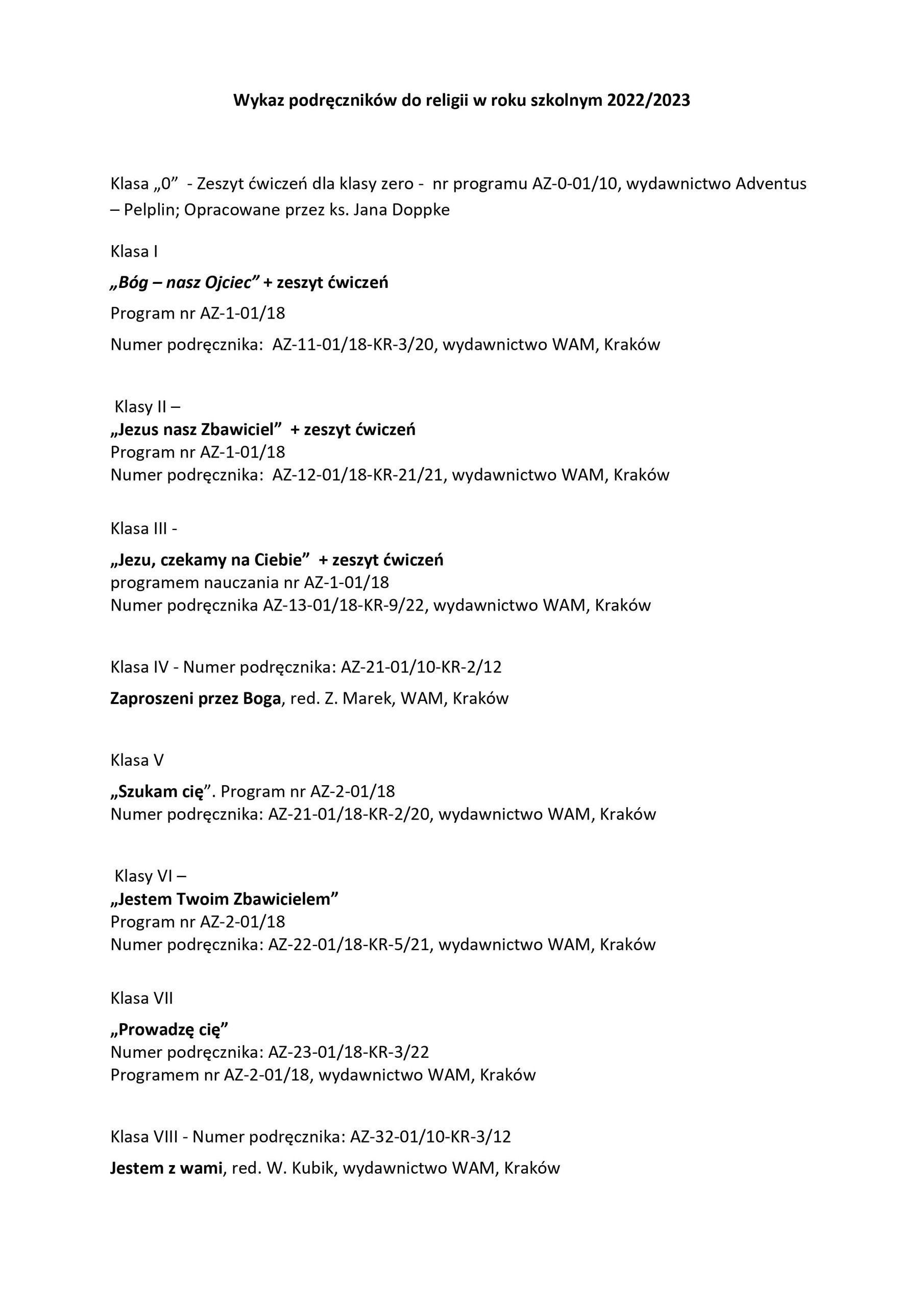 programem nauczania nr AZ-1-01/18, Numer podręcznika AZ-13-01/18-KR-9/22, wydawnictwo WAM, Kraków