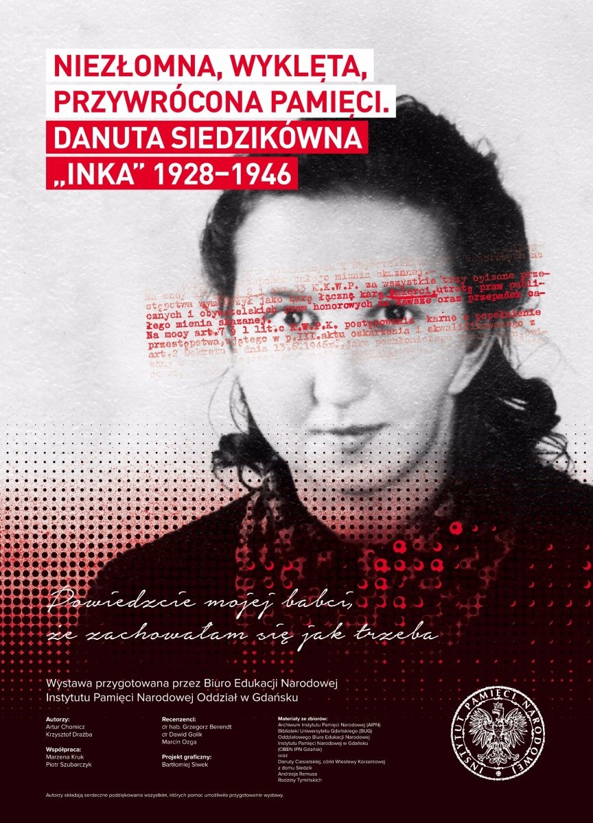 Wystawa została przygotowana w 70. rocznicę zamordowania przez komunistycznych oprawców w murach Więzienia Karno-Śledczego w Gdańsku niezłomnej sanitariuszki 5. Wileńskiej Brygady Armii Krajowej Danuty Siedzikówny „Inki”. W tej samej egzekucji, przeprowadzonej rankiem 28 sierpnia 1946 r., został zamordowany inny żołnierz mjr. Zygmunta Szendzielarza „Łupaszki” – Feliks Selmanowicz „Zagończyk”. Ekspozycja przybliża życiorys legendarnej sanitariuszki, której losy splotły się z tragiczną historią Polski okresu II wojny światowej...