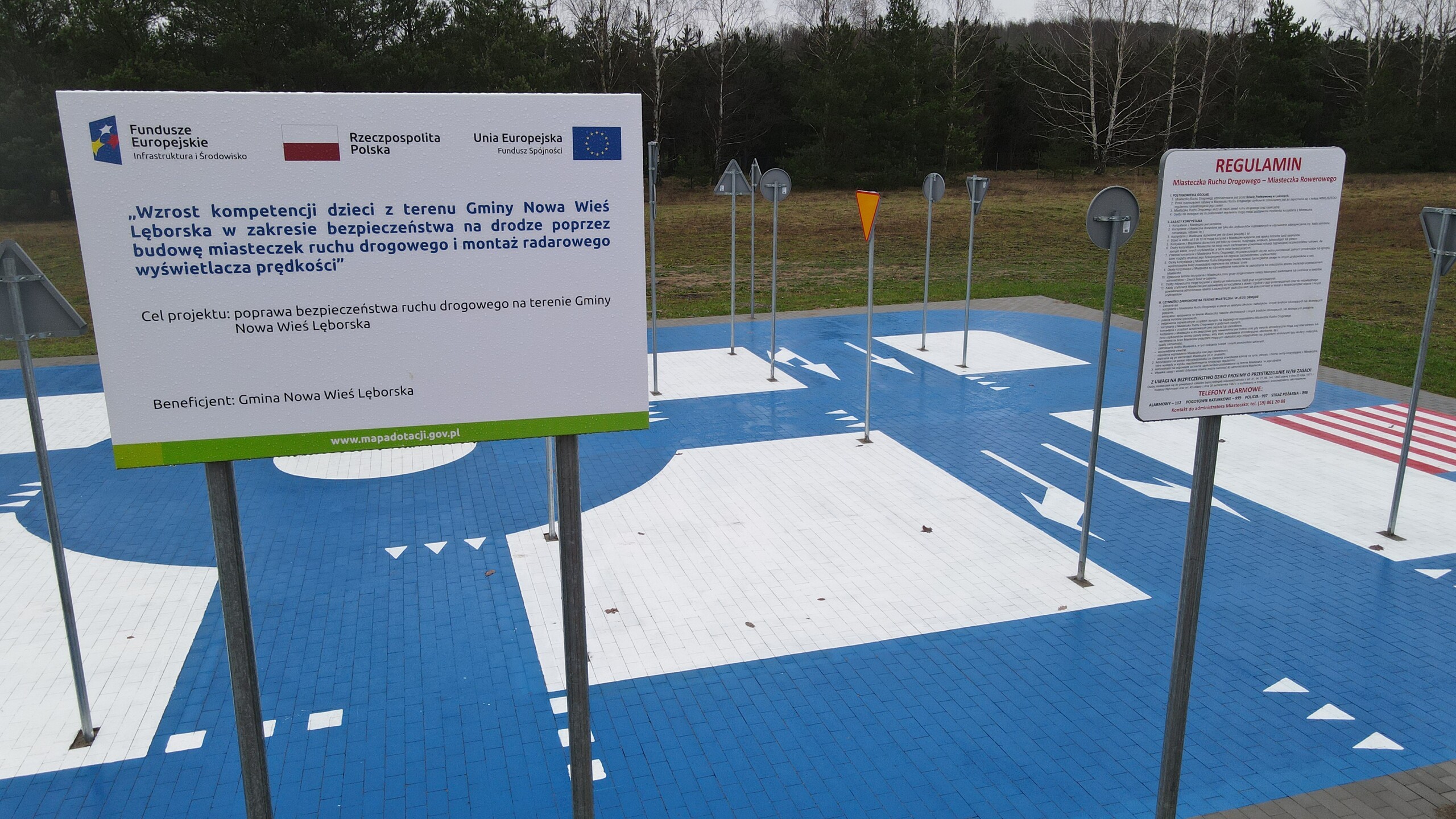 Gmina Nowa Wieś Lęborska zrealizowała projekt dofinansowany z Funduszy Europejskich „Wzrost kompetencji dzieci z terenu Gminy Nowa Wieś Lęborska w zakresie bezpieczeństwa na drodze poprzez budowę miasteczek ruchu drogowego i montaż radarowego wyświetlacza prędkości”. Celem projektu jest poprawa bezpieczeństwa ruchu drogowego na terenie Gminy Nowa Wieś Lęborska.
