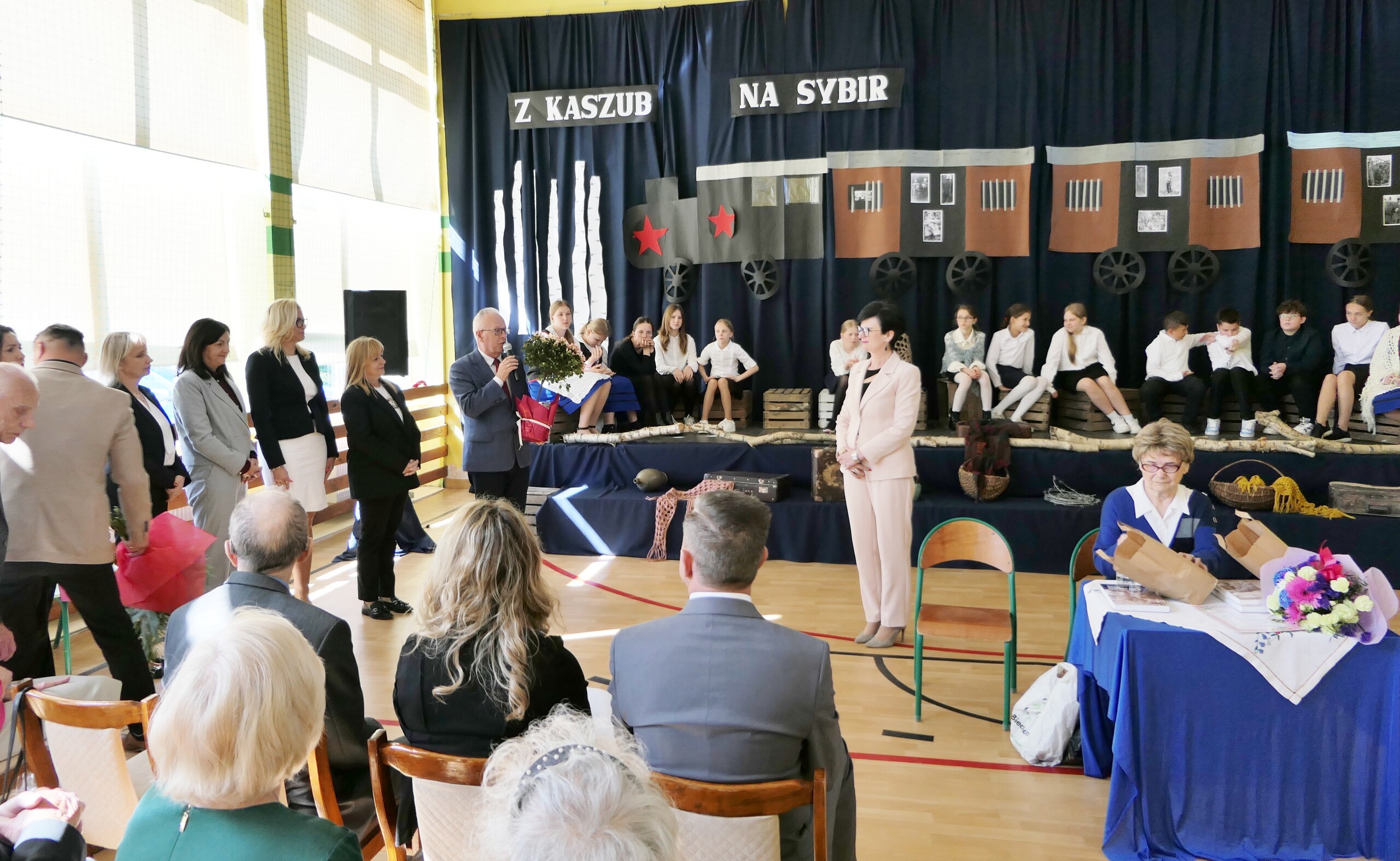 Uczniowie klas czwartych i siódmej wystąpili w montażu słowno-muzycznym pt. "Z Kaszub na Syberię", w którym przedstawili przeżycia mieszkańców Pomorza zesłanych w czasie II wojny światowej i tuż po jej zakończeniu. Odpowiedzialnymi za przygotowanie programu oraz uczniów były panie Irena Bednarczyk i Bożena Lenart. P. Zofia Bladowska nakreśliła losy kilku Sybiraków z Lęborka. Kilka zdań powiedziała też o swoich książkach "A gdy zabrakło mamy" i "Na Sybir". Po uroczystości goście miło spędzili czas na rozmowie i poczęstunku.