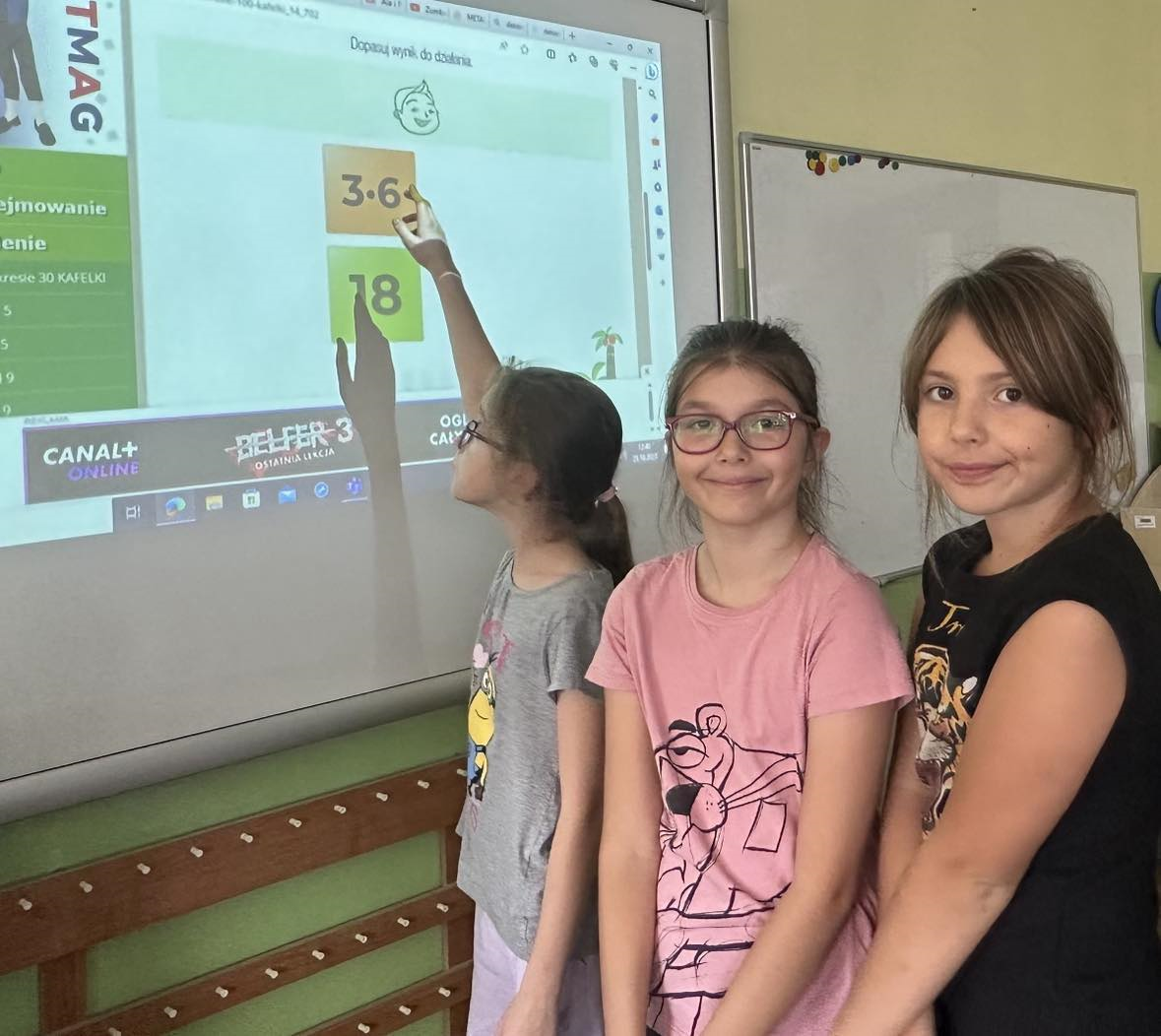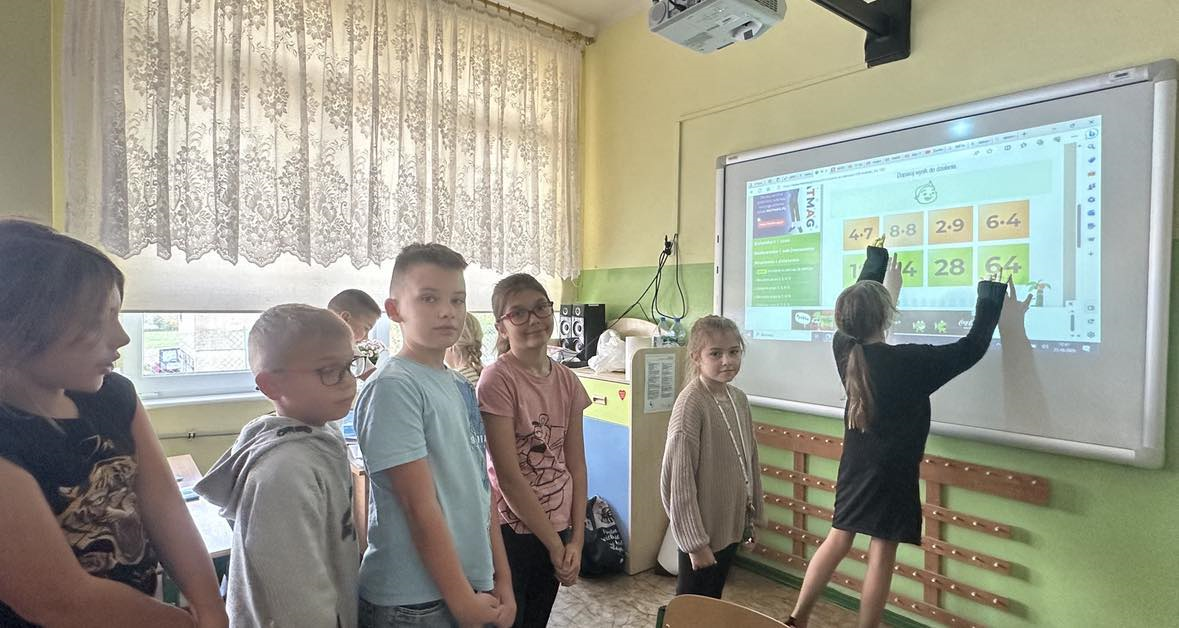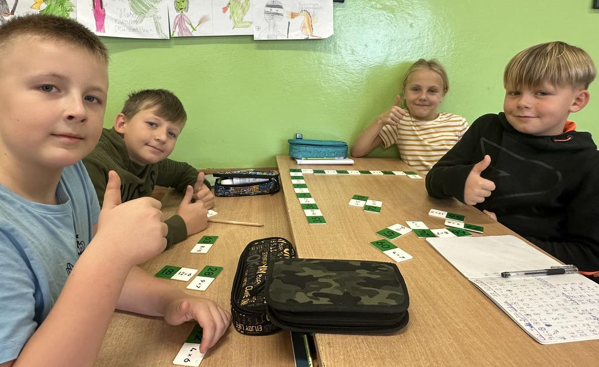 Uczniowie klasy III na zajęciach z edukacji matematycznej doskonalili swoje umiejętności z zakresu tabliczki mnożenia układając domino oraz rozwiązując zagadki matematyczne na tablicy multimedialnej. Nauka przez zabawę to jest to co dzieci lubią najbardziej!