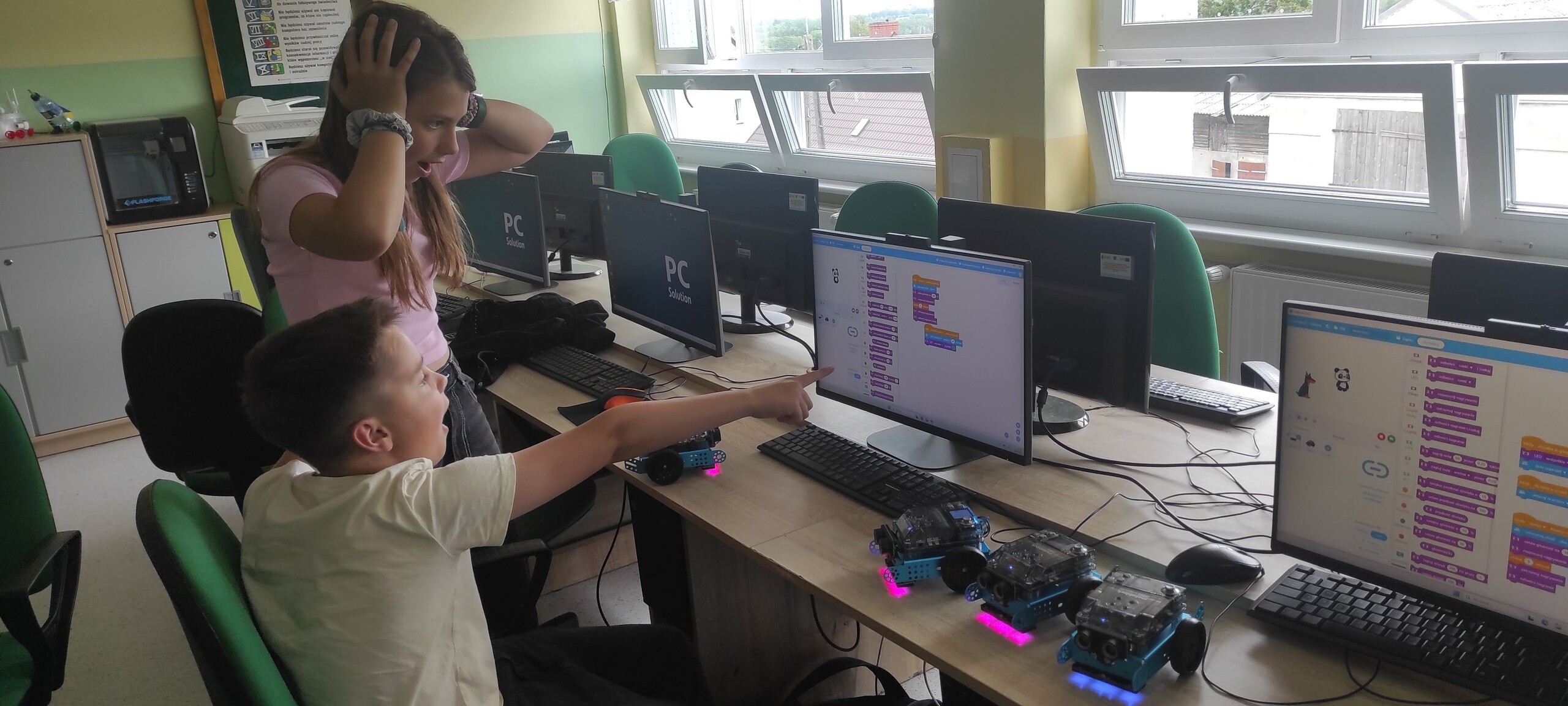 Na zajęciach w pracowni komputerowej chętni uczniowie pogłębiają swoją wiedzę z informatyki, robotyki i nowoczesnych technologii. Poznają programy i strony internetowe przydatne w różnych dziedzinach, sterowanie robotami, nauka programowania, grafika komputerowa, korzystanie ze sztucznej inteligencji.