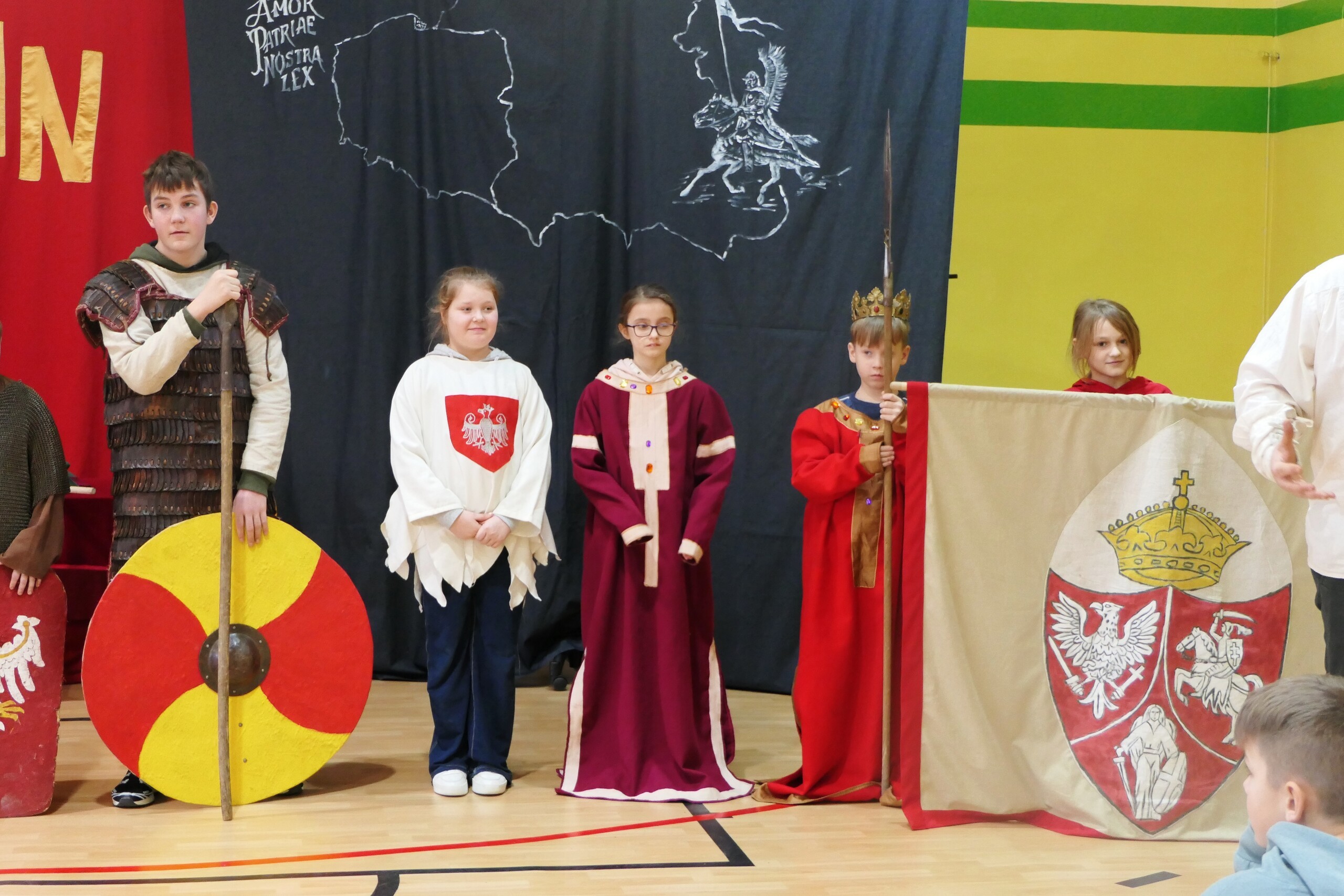 Dnia 16 stycznia gościliśmy w szkole rycerzy z Bractwa Rycerskiego KERIN. Uczniowie mogli poznać historię naszego godła. Przebierali się w stroje z różnych epok i zapoznawali się ze zmieniającym się na przestrzeni wieków wyglądem Orła Białego. Chętnie odpowiadali na pytania prowadzących dotyczące naszej historii.