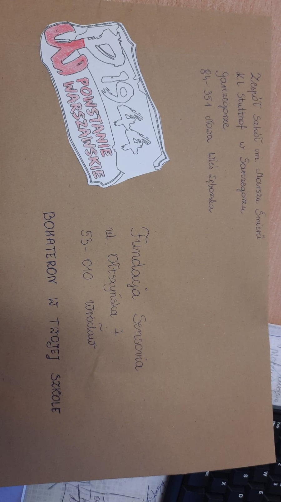 Na lekcjach wychowania do życia w rodzinie oraz na świetlicy uczniowie byli zapoznawani z tematyką Powstania Warszawskiego oraz ideą akcji. Podczas zajęć w szkole lub w domu uczniowie wykonali piękne laurki, napisali listy, w których wyrażali swoją wdzięczność. Kartki te zostały wysłane do Fundacji Sensoria do Wrocławia. Stamtąd trafią już we właściwe ręce- w ręce uczestników Powstania Warszawskiego. Patrząc na laureczki, od razu nasuwa się wniosek- zostały one wykonane z potrzeby serca, z chęci powiedzenia Naszym Bohaterom jak bardzo jesteśmy wdzięczni… W ubiegłym roku otrzymaliśmy od powstańców cudowne podziękowanie, które umieszczone jest w galerii poniżej.