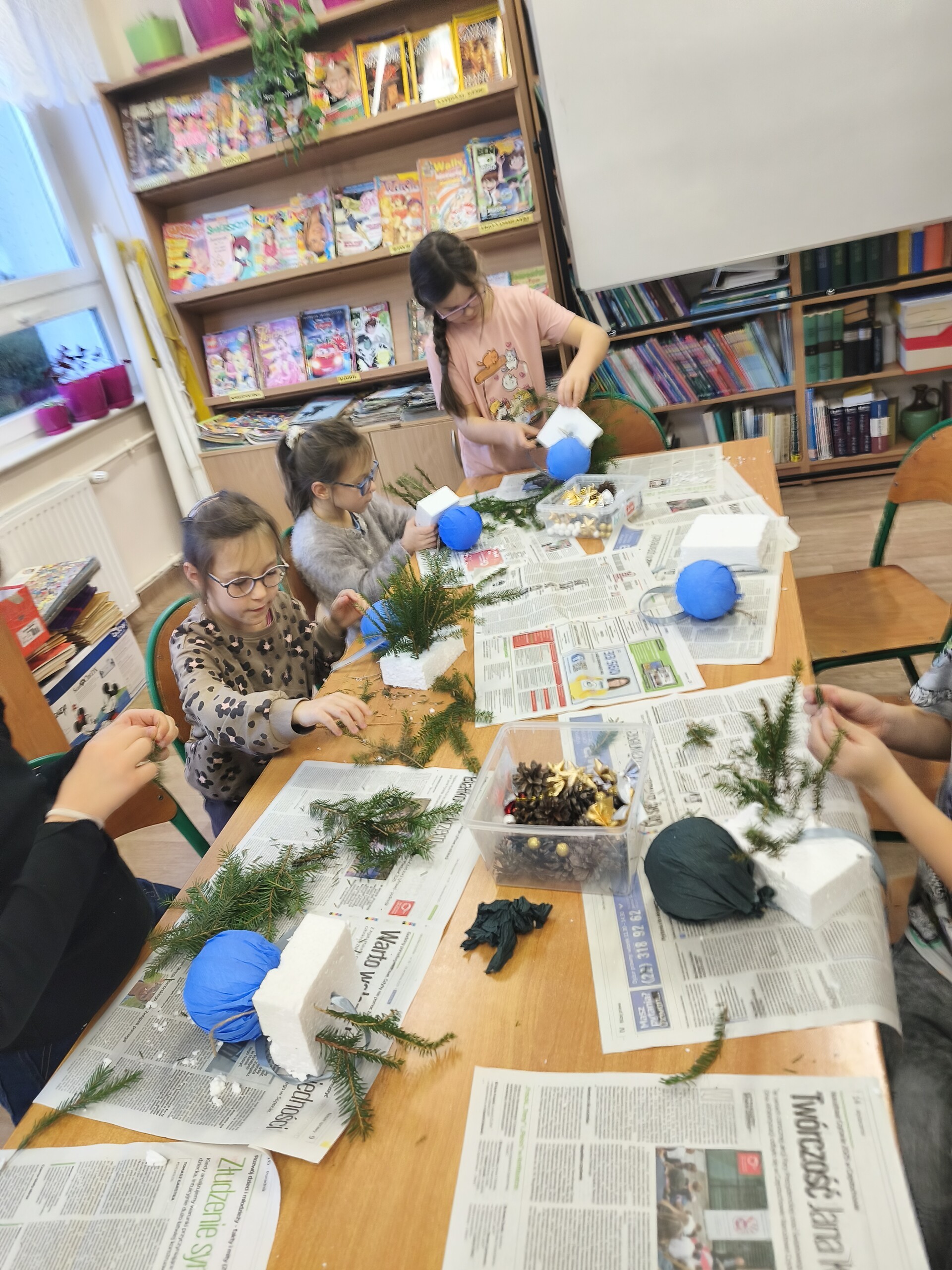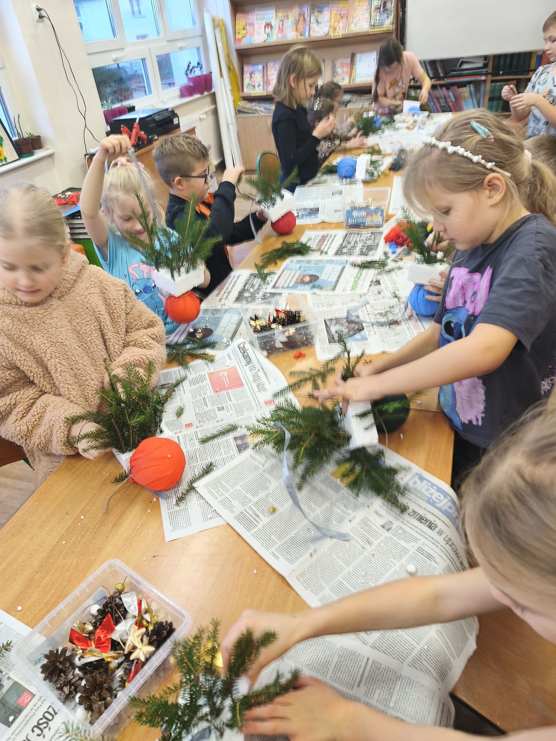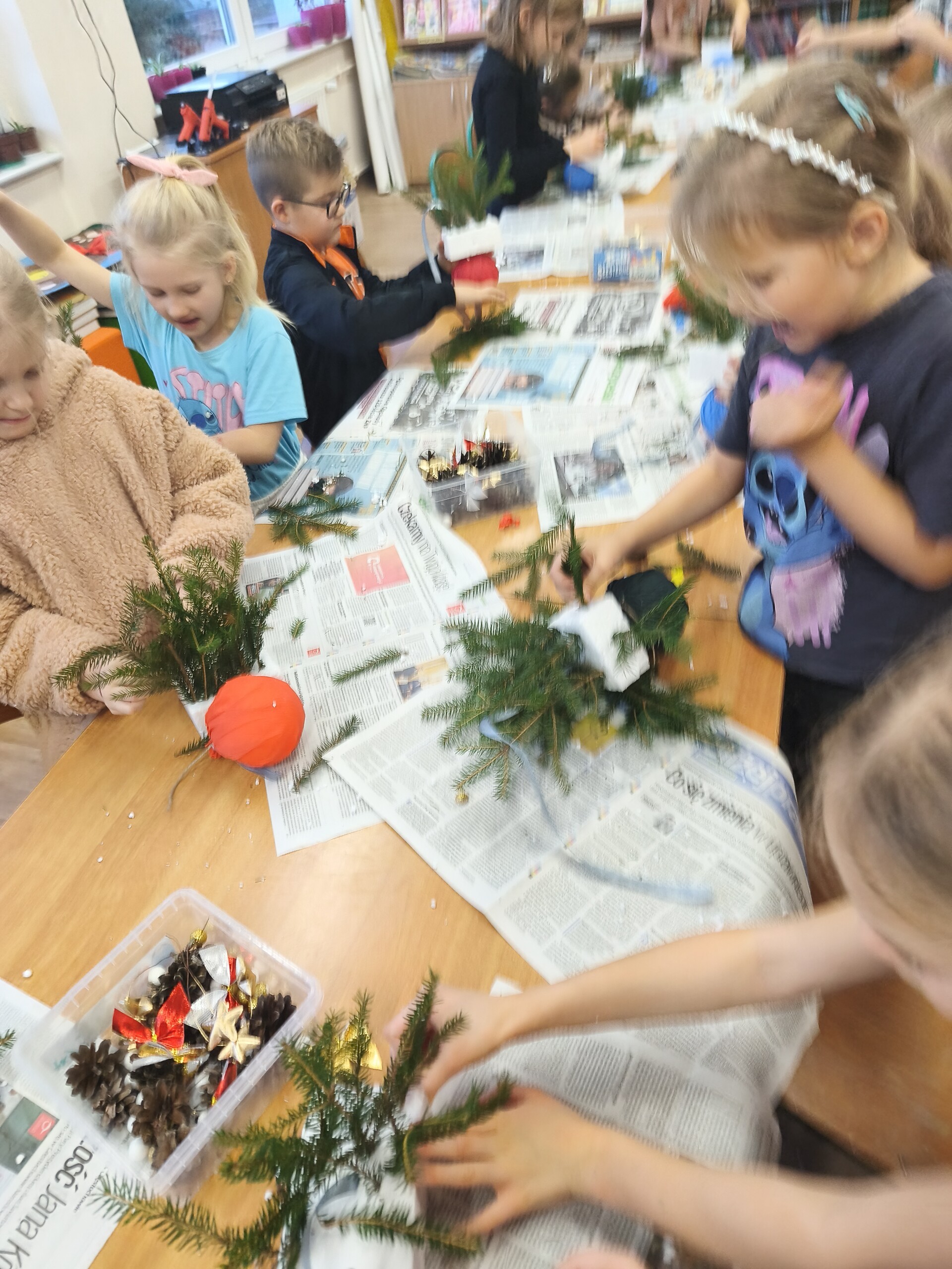 W miesiącu grudniu odbyły się w naszej szkole świąteczne warsztaty dla uczniów uczęszczających na zajęcia języka kaszubskiego. Podczas zajęć uczniowie wykonali piękne wiszące stroiki z gałązek świerkowych . Uczniowie pracowali z dużym zaangażowaniem i przyjemnością. Podczas pracy było dużo śmiechu, radości i zabaw