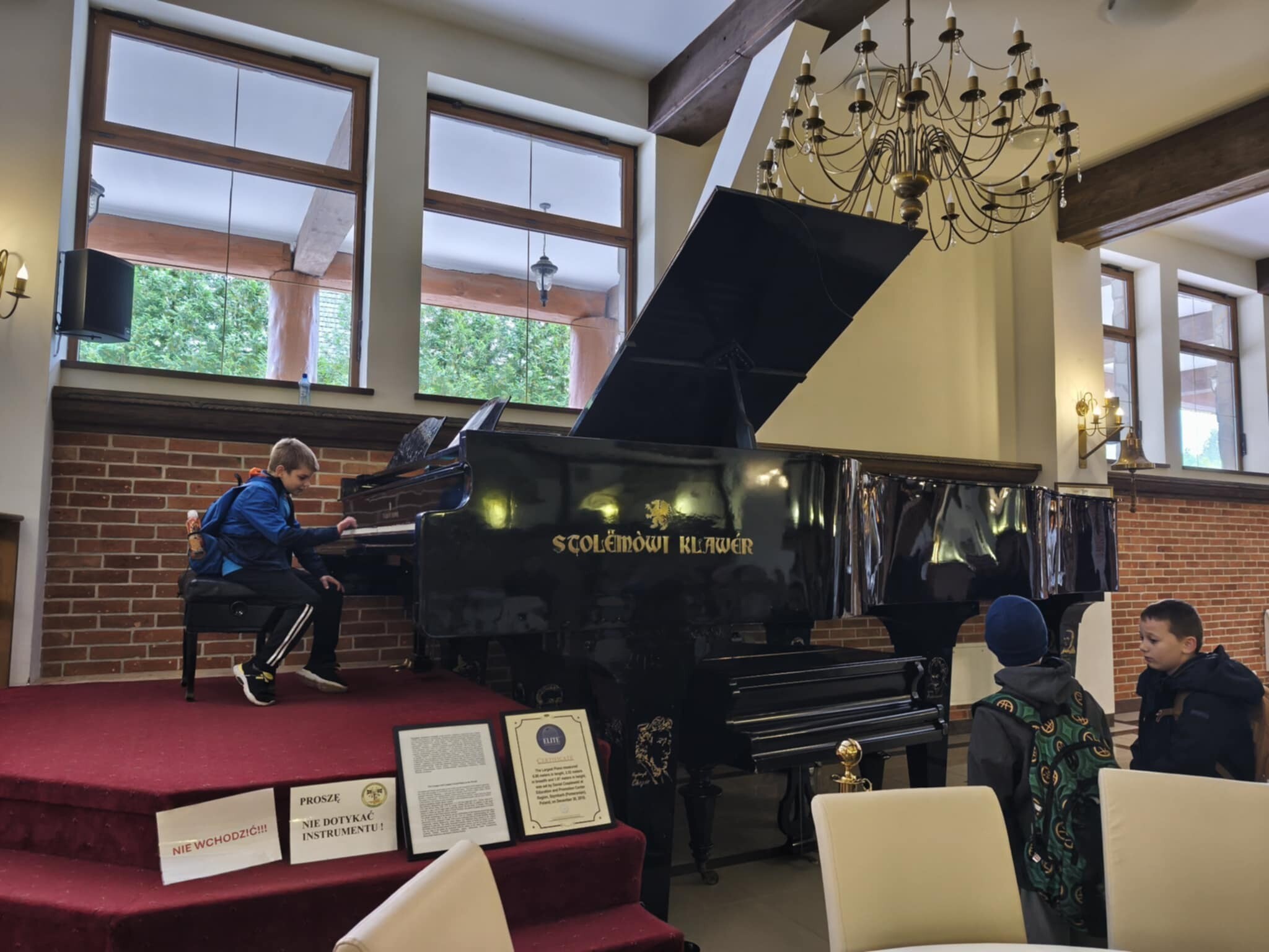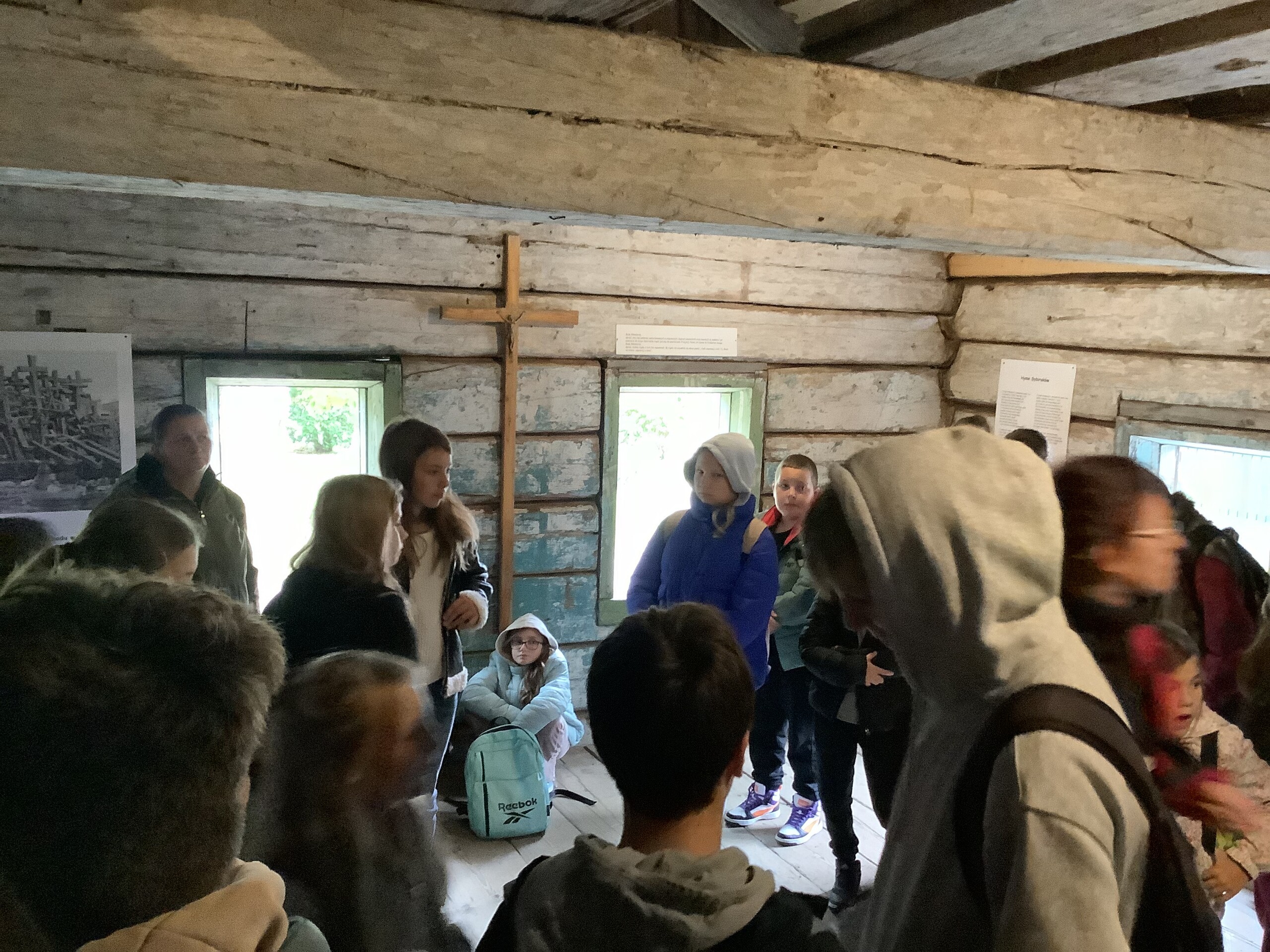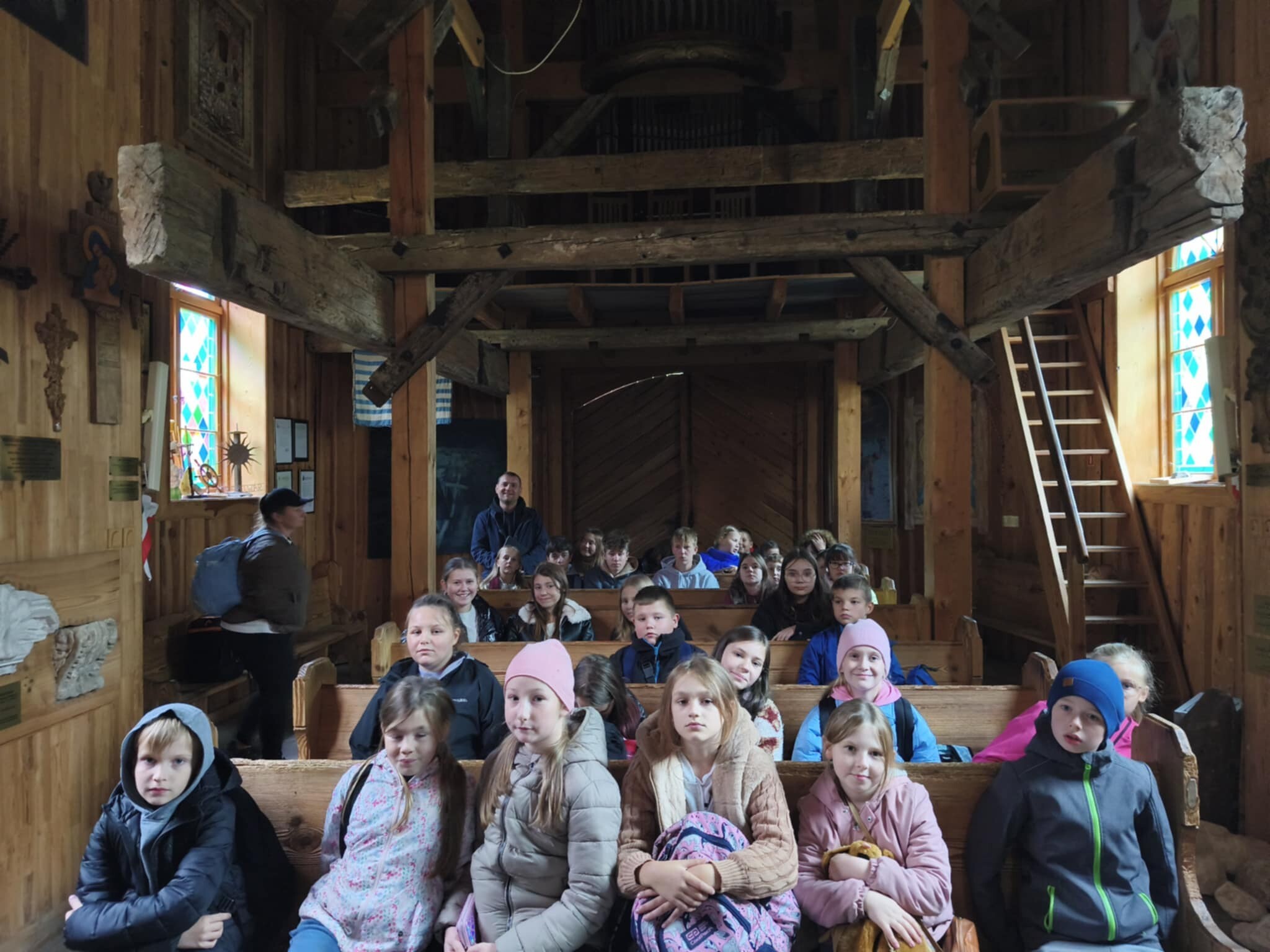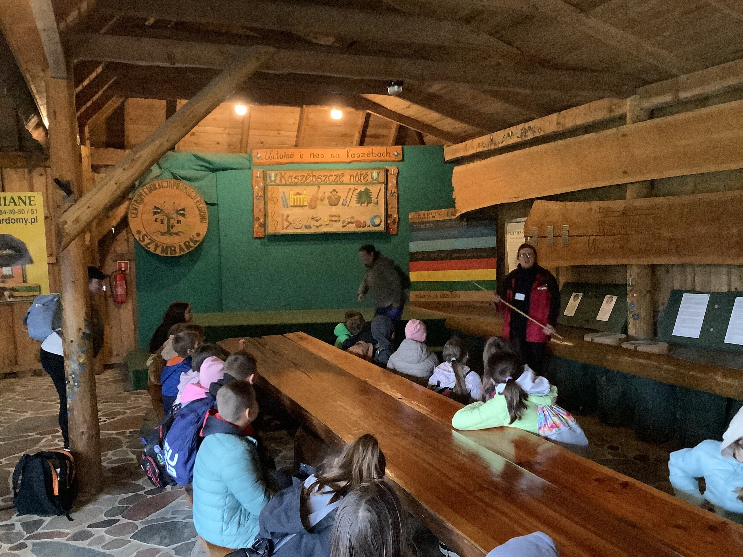30 września uczniowie uczęszczający na lekcje j. kaszubskiego pojechali na wycieczkę do Szymbarku. Szymbark jest kaszubską wsią na obszarze najbardziej atrakcyjnej części Kaszubskiego Parku Krajobrazowego, czyli Szwajcarii Kaszubskiej. Na terenie wsi znajduje się Centrum Edukacji i Promocji Regionu. Właśnie w tym miejscu uczestnicy wycieczki spotkali się z przewodnikiem, który oprowadzał po skansenie w Szymbarku. Uczniowie zobaczyli „Najdłuższą Deskę Świata”, która została wpisana do Księgi Rekordów Guinnesa. Kolejnym obiektem na terenie CEiPR wpisanym do Księgi Rekordów Guinnessa, a który obejrzeli wycieczkowicze, był „Największy Fortepian Świata”. Oprócz rekordowych obiektów, uczniowie zwiedzili Dom Sybiraka z łagrem, Bunkier i Pomnik Gryfa Pomorskiego, Dom Trapera Kaszubskiego z Kanady, Dom Powstańca Polskiego z Adampola, Kościółek św. Rafała Kalinowskiego. Kulminacyjnym punktem wycieczki było zwiedzanie „Domu do Góry Nogami”. Jest to drewniany dom, który został postawiony na dachu. Uczniowie jego zwiedzanie zaczynali od… wchodzenia przez szczytowe okno i cały czas poruszali się po suficie. Zwiedzający dom na własnej skórze odczuli efekty zawirowań błędnika. Ostatnią atrakcją było wejście na wieżę widokową usytuowaną na najwyższym szczycie województwa - Wieżycy.