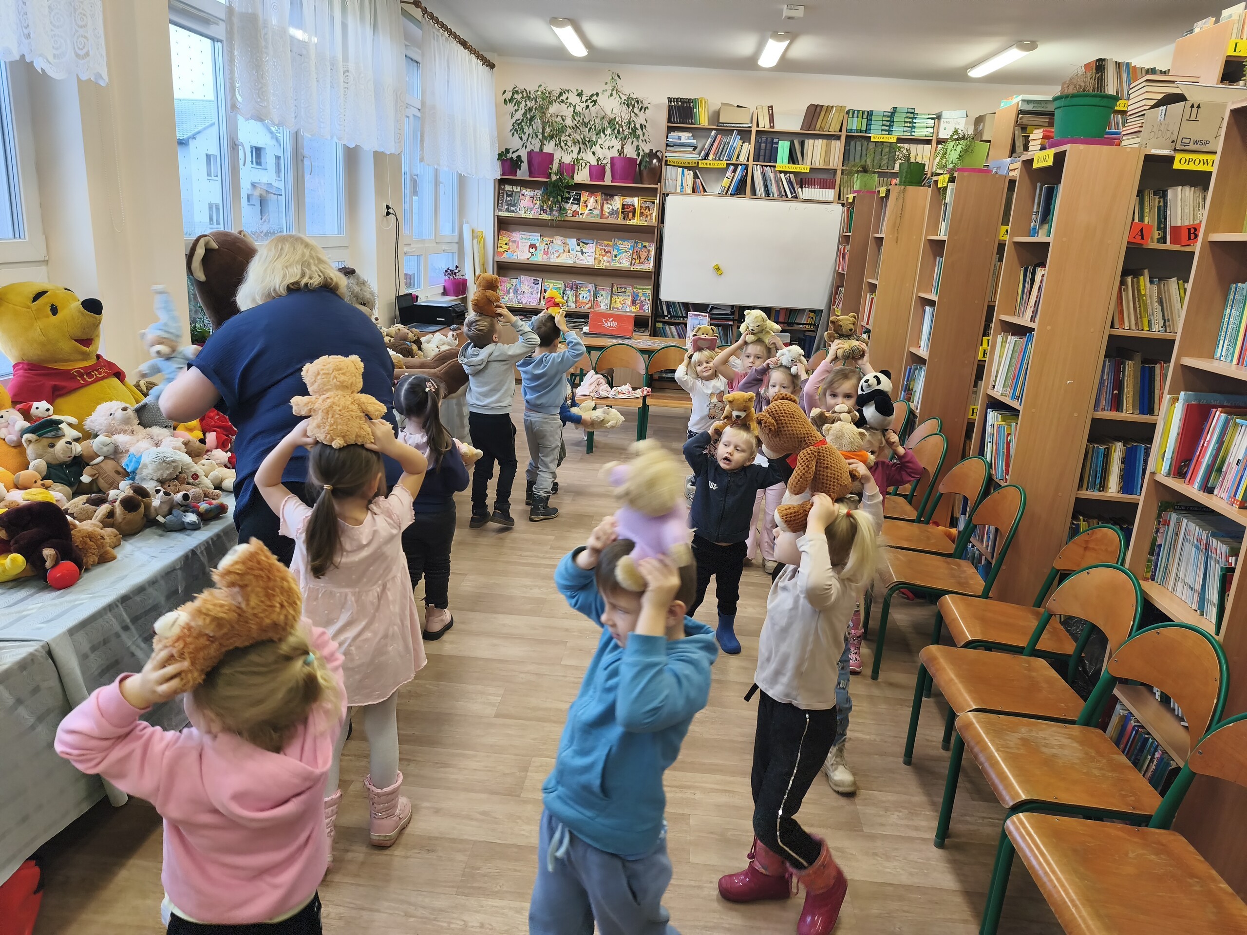 Każde dziecko mogło przytulić swojego pluszowego miśka oraz pochwalić się swoim ulubieńcem. Dzieci wysłuchały fragmenty książek, których głównym bohaterem był miś, zapraszając dzieci w ten sposób do zainteresowania książką. Dzieci rozwiązywały zagadki oraz opowiadały treść czytanych fragmentów książek, śpiewały piosenki o misiach, układały puzzle misiowe.