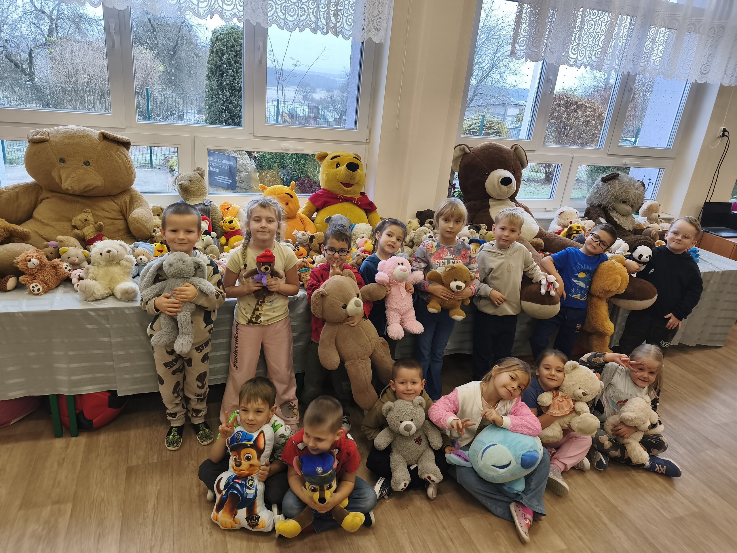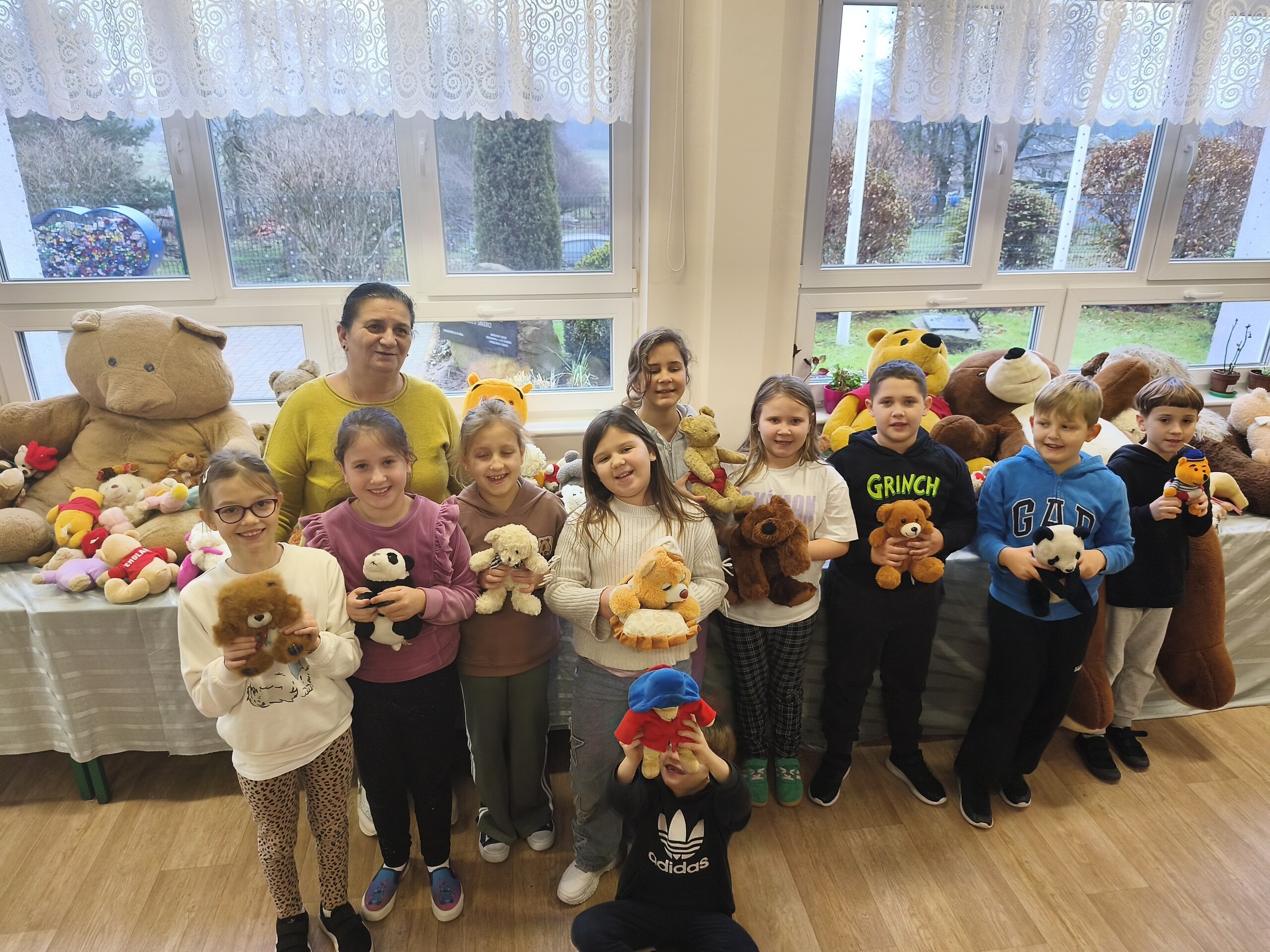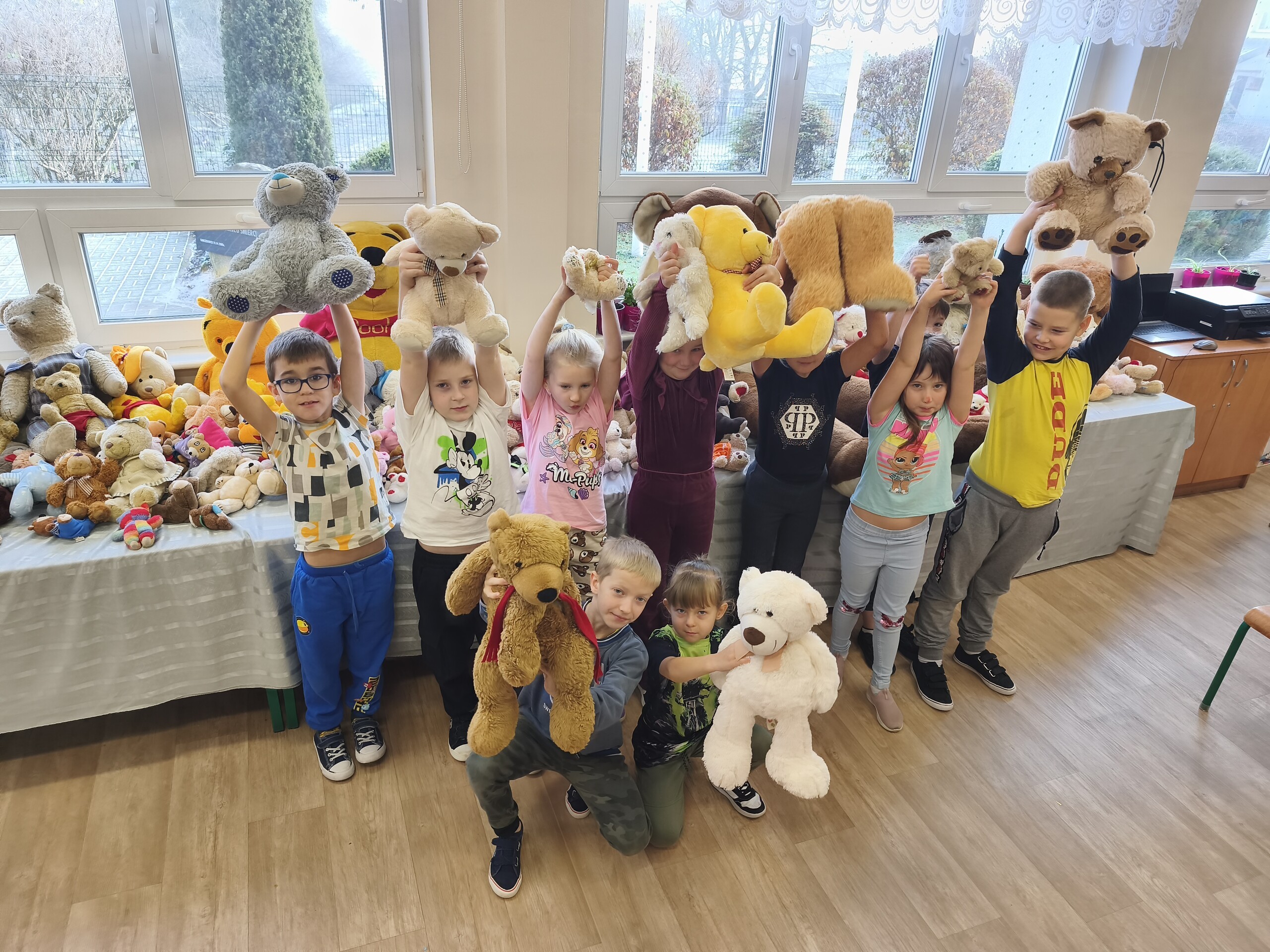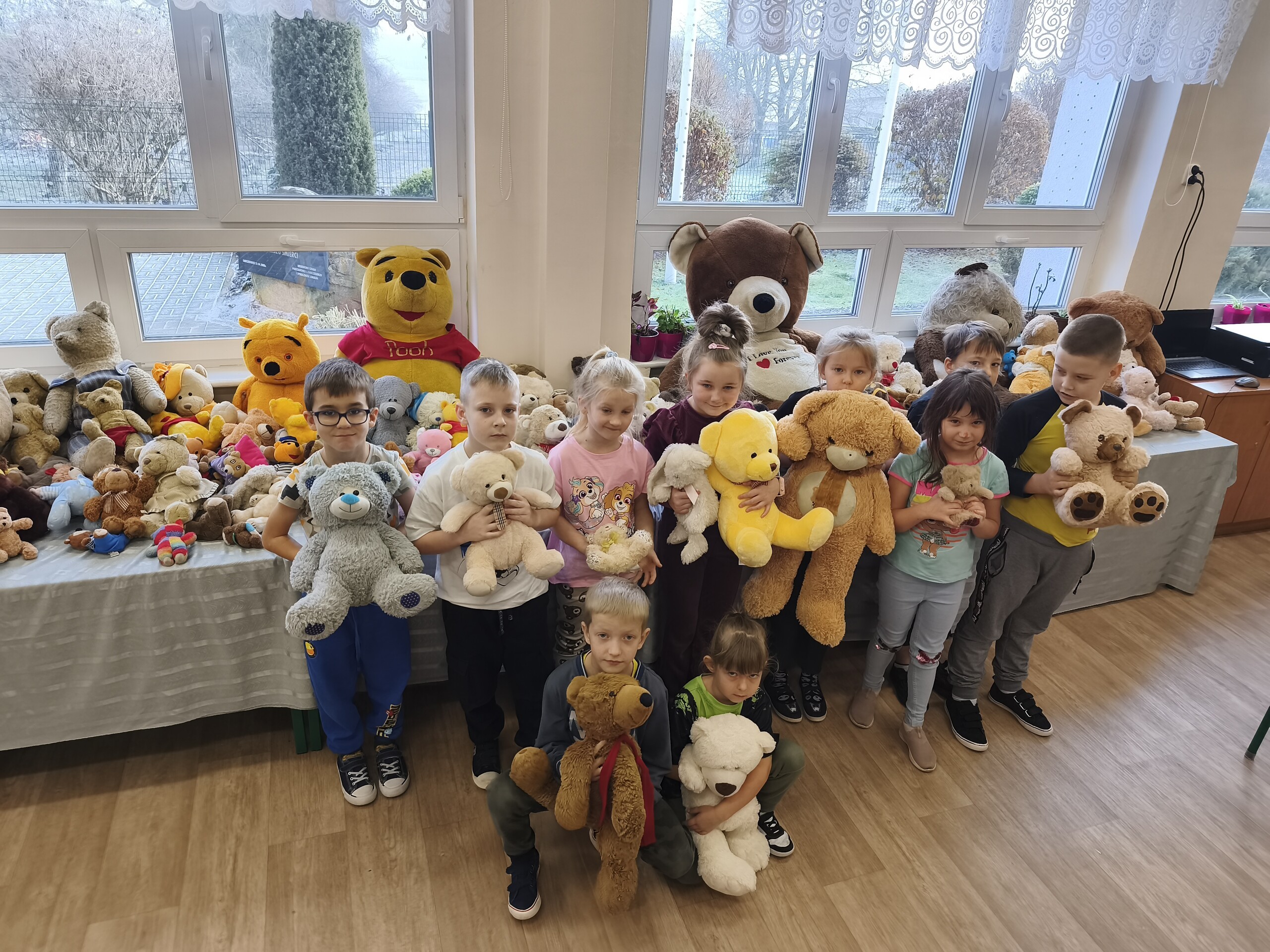 W poniedziałek i wtorek 24 i 25 listopada nasi uczniowie i przedszkolaki obchodzili w szkole Światowy Dzień Pluszowego Misia. W tym dniu wszyscy uczniowie klas młodszych przyszli do szkoły w towarzystwie swoich ulubionych pluszowych misiów. Świętowanie zaczęli od wysłuchania historii o pierwszym pluszowym misiu. Dowiedzieli się, że jego historia rozpoczęła się w roku 1902 i była mocno związana z prezydentem Stanów Zjednoczonych – Theodorem Rooseveltem.