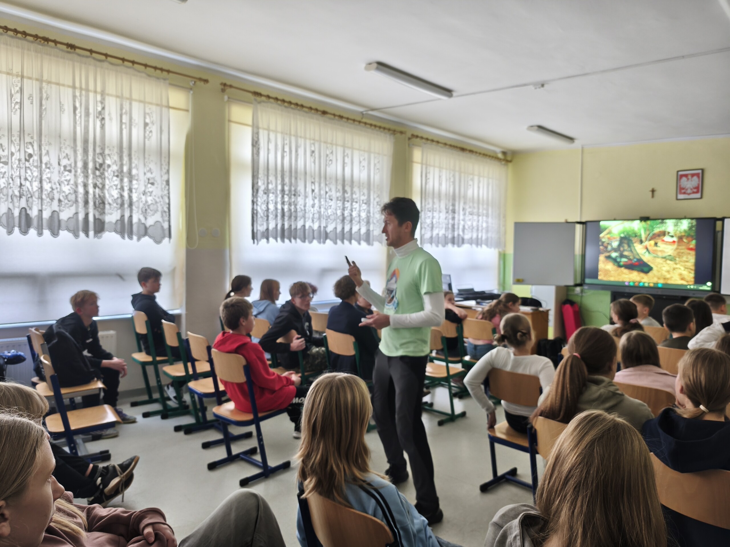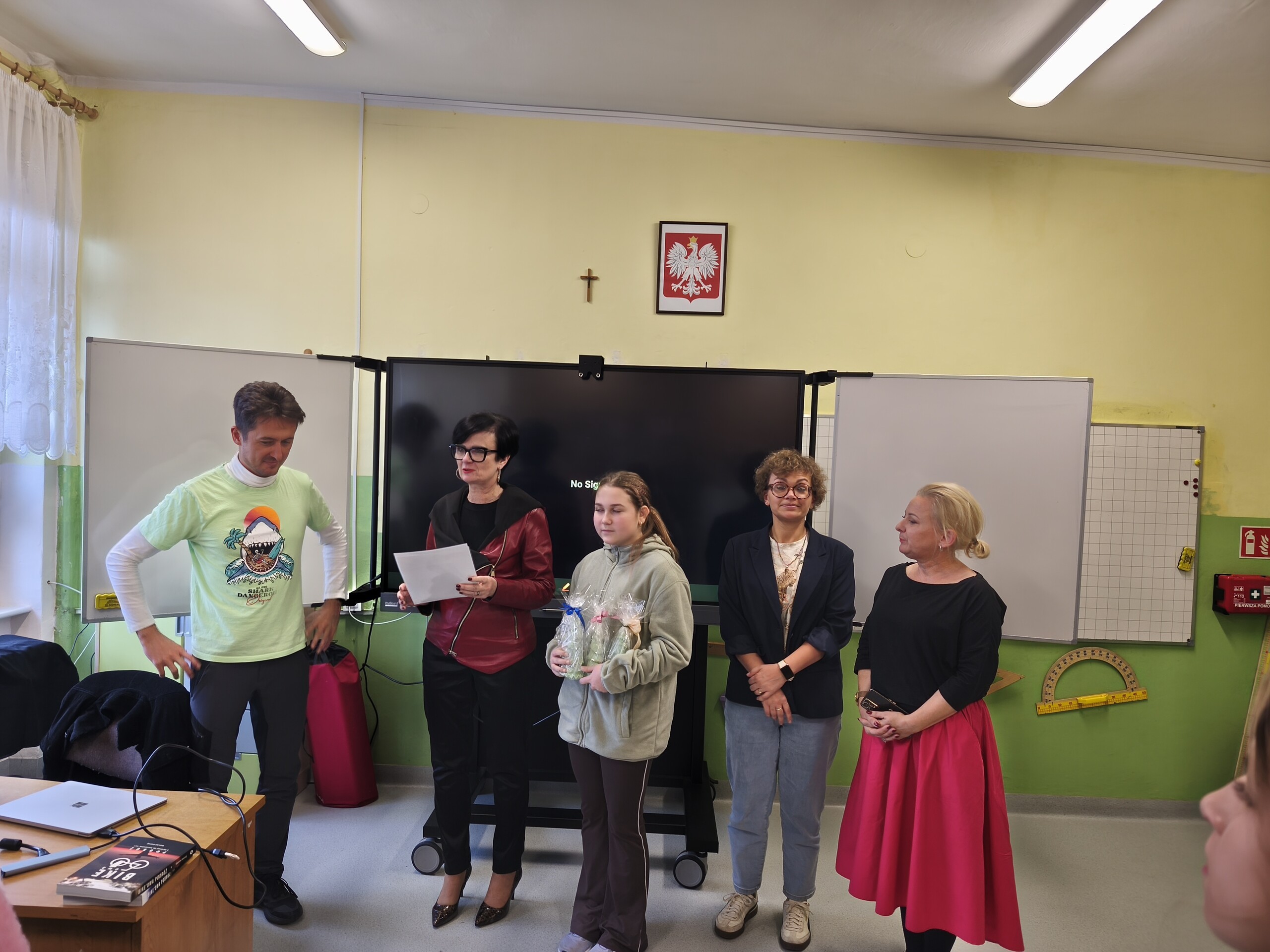 4 listopada 2025 r. biblioteka szkolna zorganizowała dla młodzieży spotkanie autorskie z podróżnikiem Danielem Kocujem - autorem książki „Bike’owa podróż z Sydney do Szczecina”. Jako nauczyciel i podróżnik, poprowadził wyjątkowe spotkanie. Zabrał słuchaczy na wyprawę przez piękną i niebezpieczną Australię, Indonezję, Malezję, Tajlandię, Birmę i Indie i to z perspektywy roweru. Wyprawa taka mogła być zrealizowana, dzięki specjalnie skonstruowanemu rowerowi. Australię przemierzył ze swoim kolegą Zanderem oraz pewną część trasy z Nickiem - wcześniej nazywali go tajemniczym jeźdźcem. Właśnie od niego dowiedzieli się wielu ważnych rzeczy odnośnie survivalu w Australii. Jeżeli brakowało funduszy pracowali na budowie lub zbierali arbuzy na plantacji. Cała podróż trwała 7 lat!