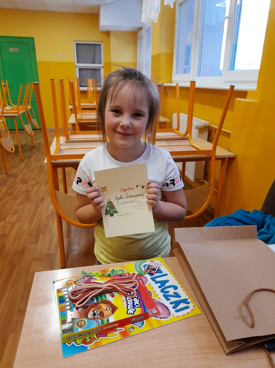 Agatka Krotoszyńska z zerówki otrzymała dyplom i nagrodę za udział w konkursie.