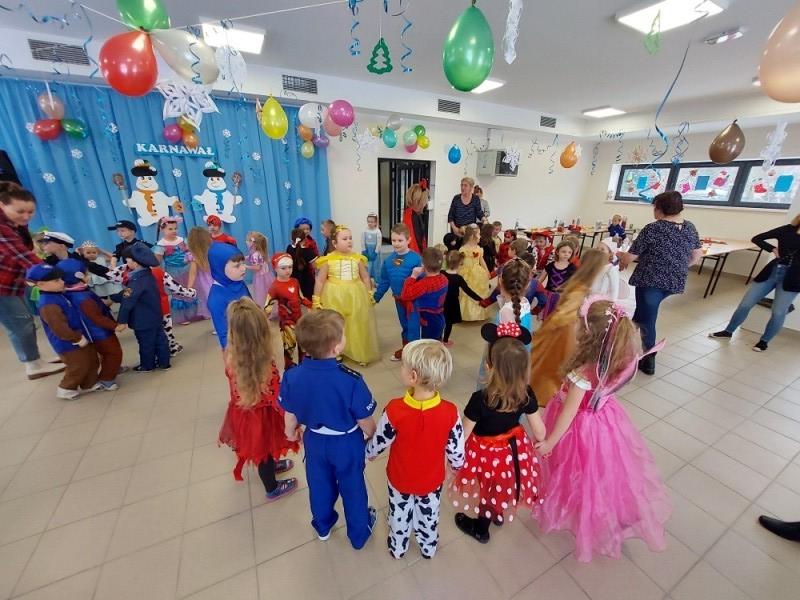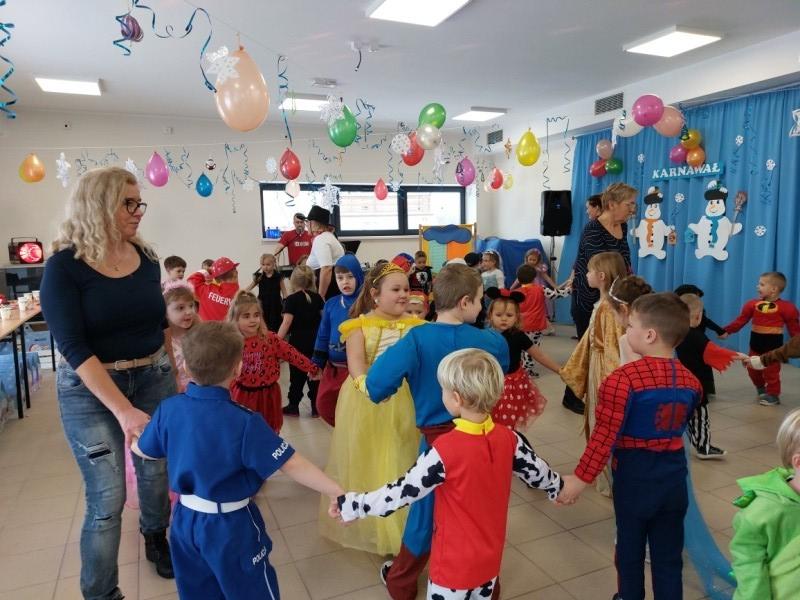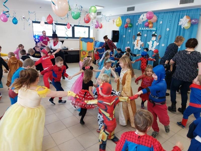 Na Bal Karnawałowy do naszego przedszkola przyjechały przedszkolaki z Garczegorza i Krępy Kaszubskiej. Wszyscy przebierańcy świetnie się bawili. Imprezę uświetnił nauczyciel rytmiki - Pan Andrzej Formela, który swoim śpiewem i grą na instrumencie porywał wszystkie dzieci do wspólnej zabawy.