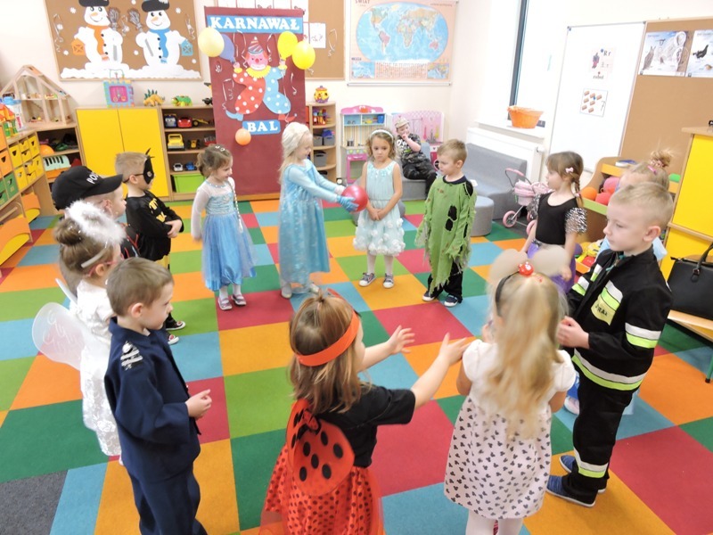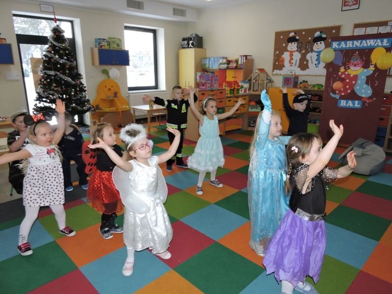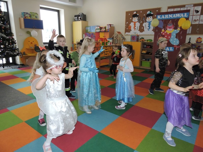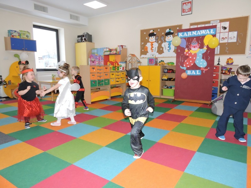 W tym roku szkolnym bal karnawałowy odbył się w naszym przedszkolu bez udziału dzieci z innych oddziałów przedszkolnych. Mimo kameralnej atmosfery bawiliśmy się bardzo dobrze.