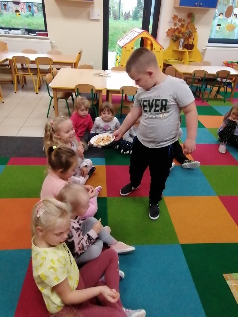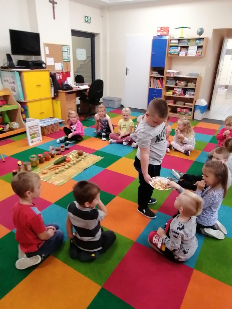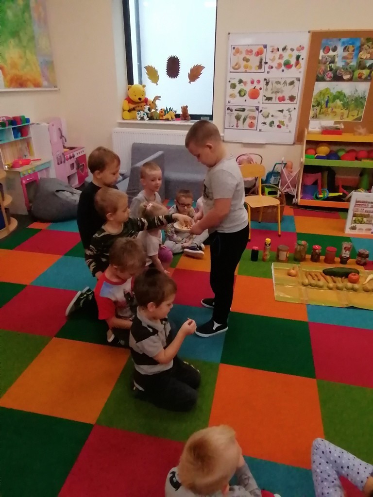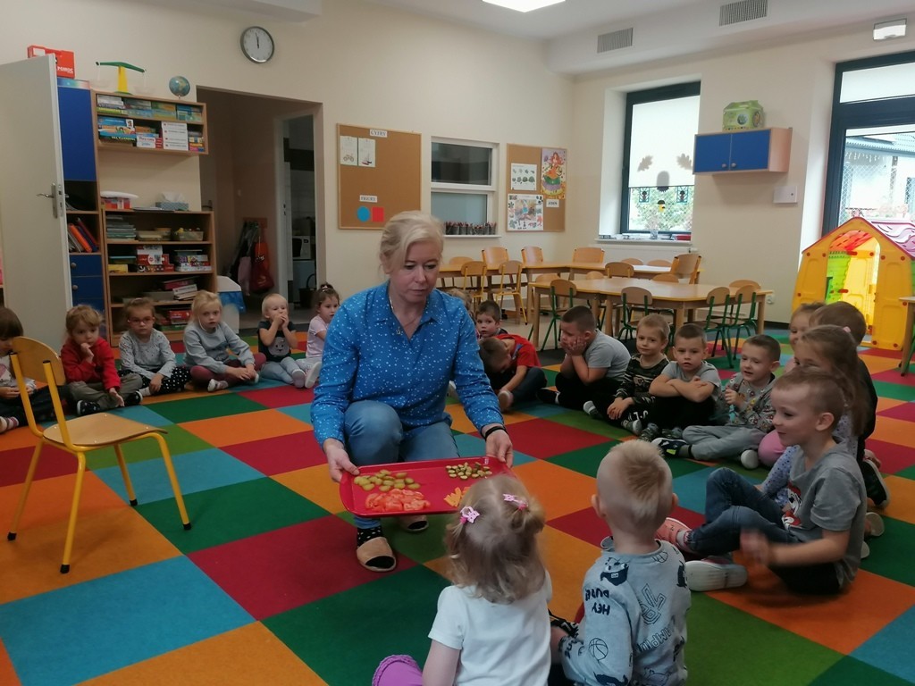 Podczas zajęć w przedszkolu poznajemy dary jesieni rożnymi zmysłami: oglądamy dotykamy, smakujemy. Taka forma nauki sprawia dzieciom wiele radości a nauczycielowi ogromną satysfakcję.