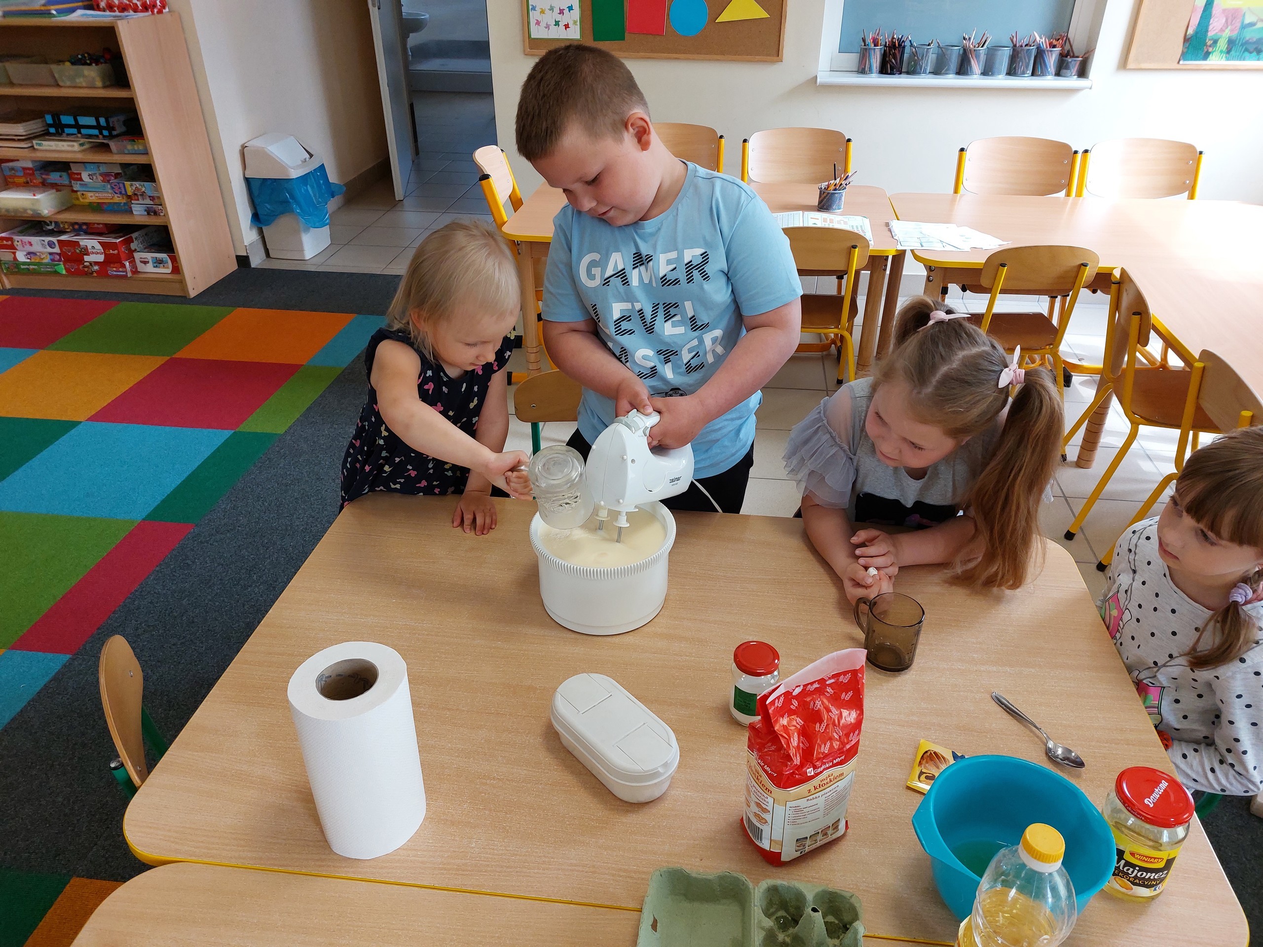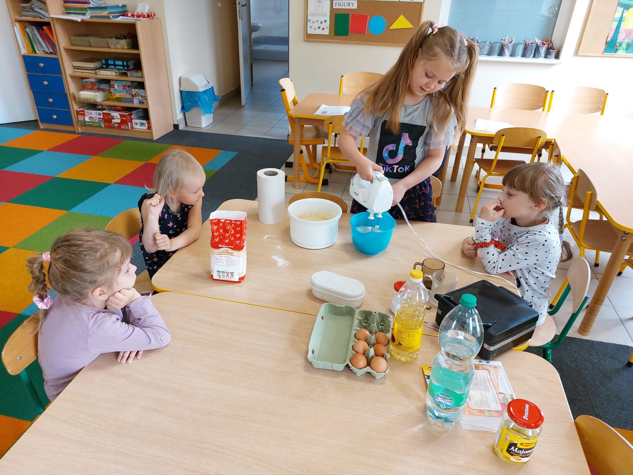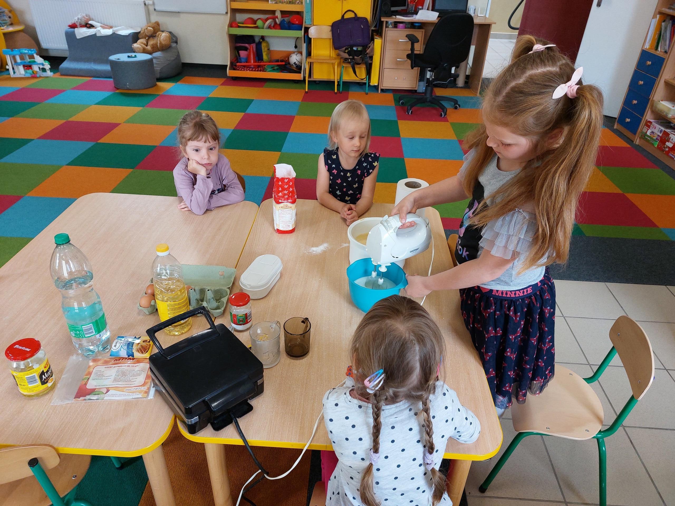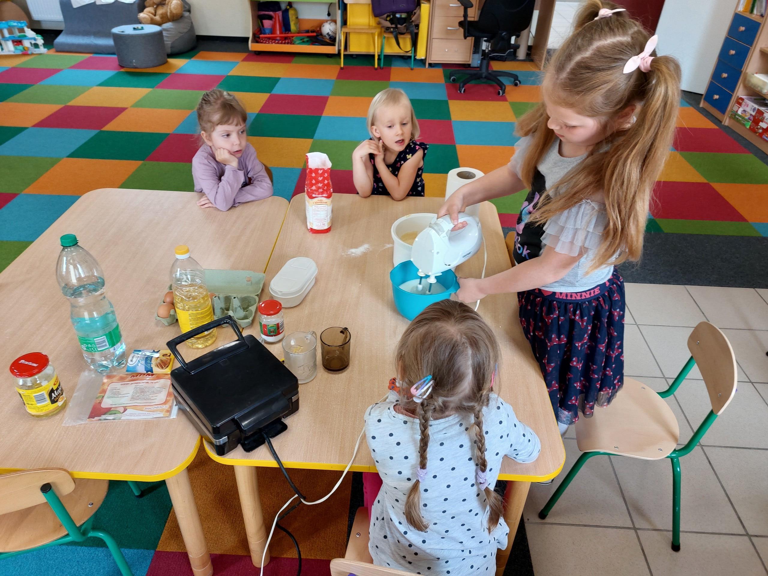 Z okazji Dnia Dziecka zorganizowaliśmy w przedszkolu gofry. Wspólnie przygotowaliśmy ciasto, po czym dzieci wybrały dodatki i samodzielnie udekorowały owocami.