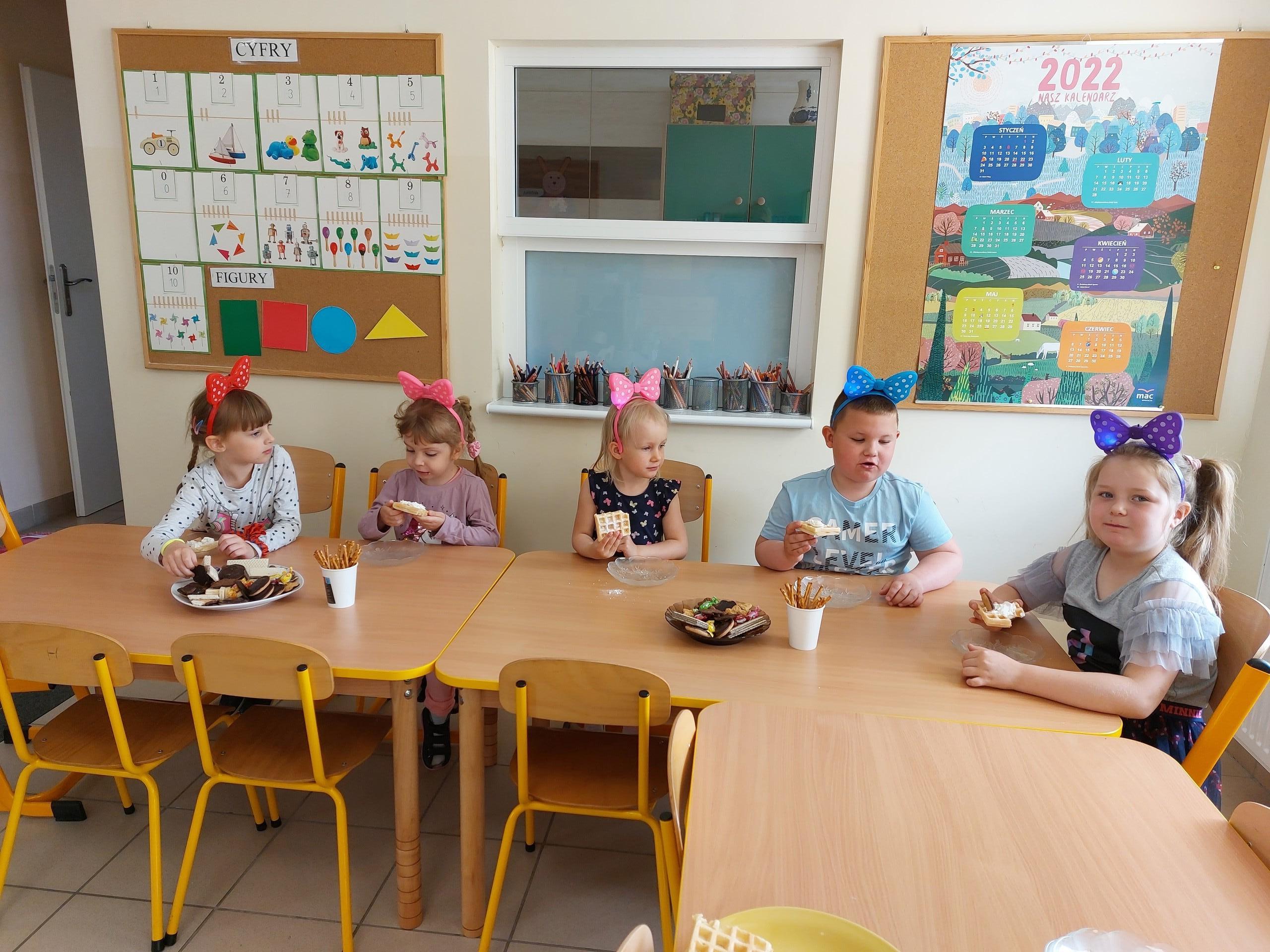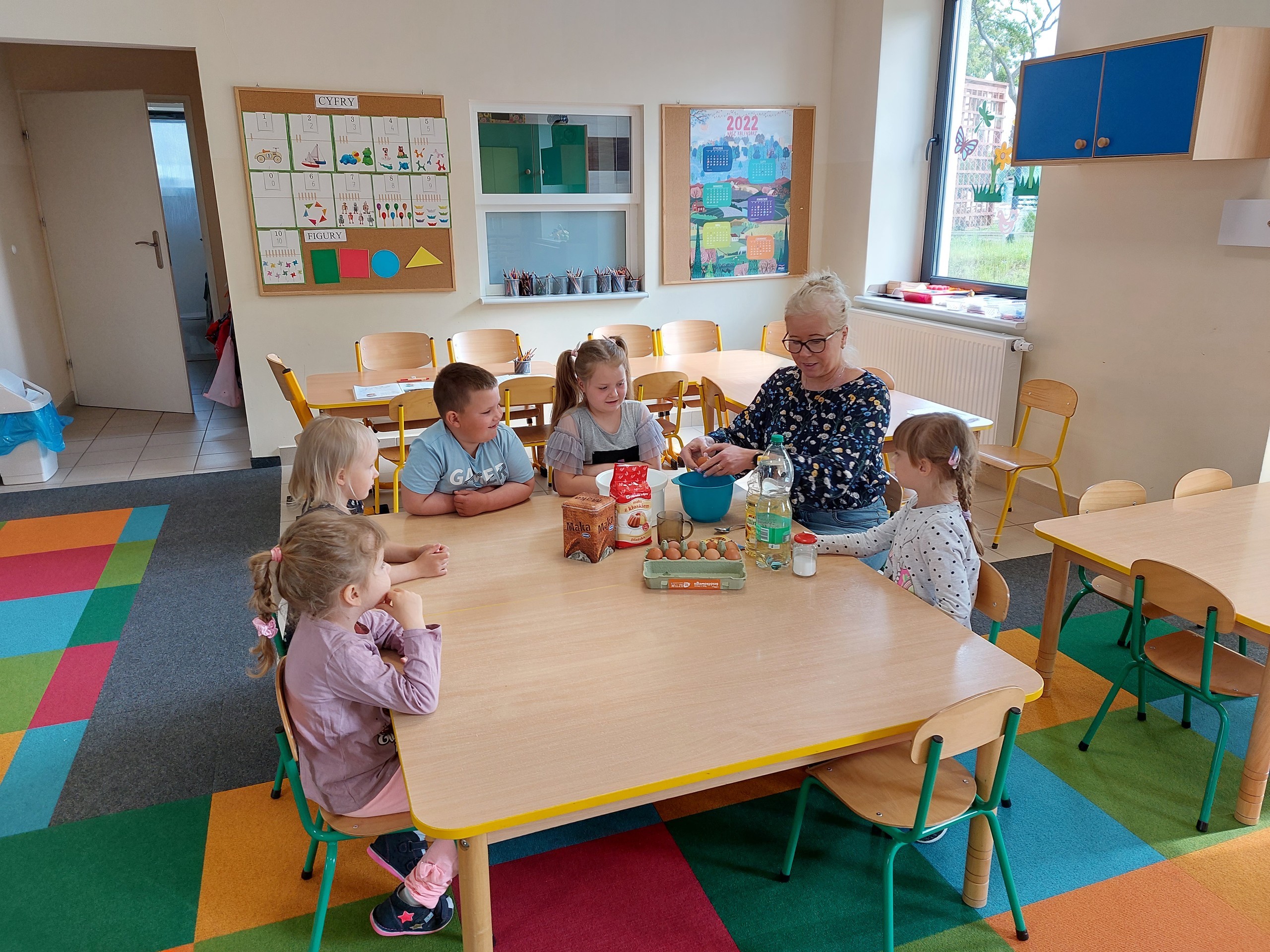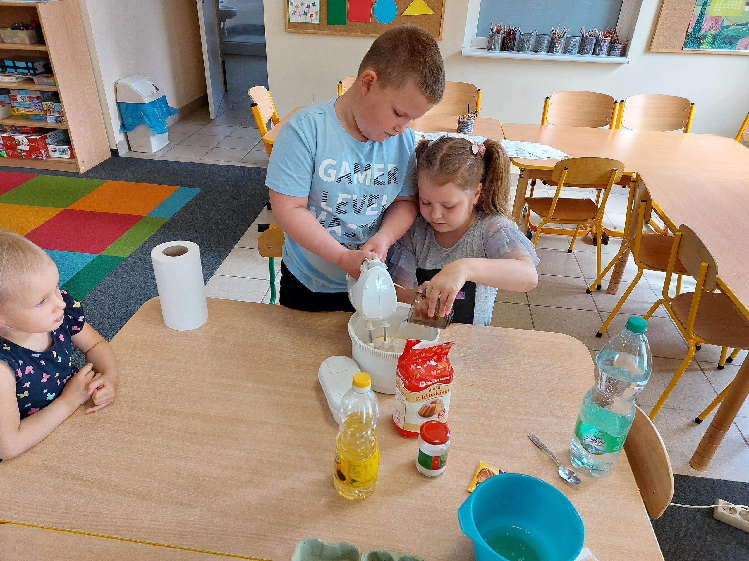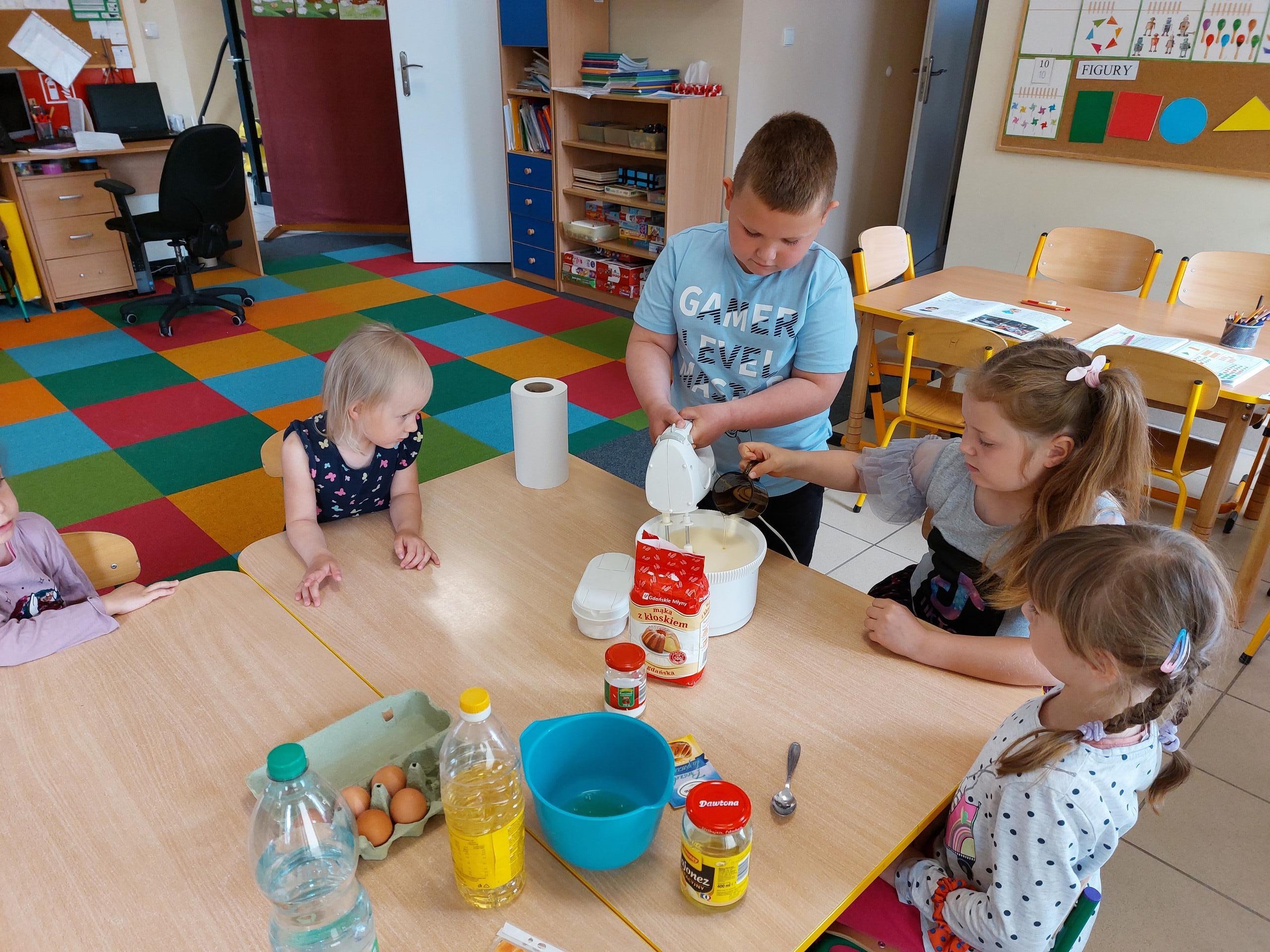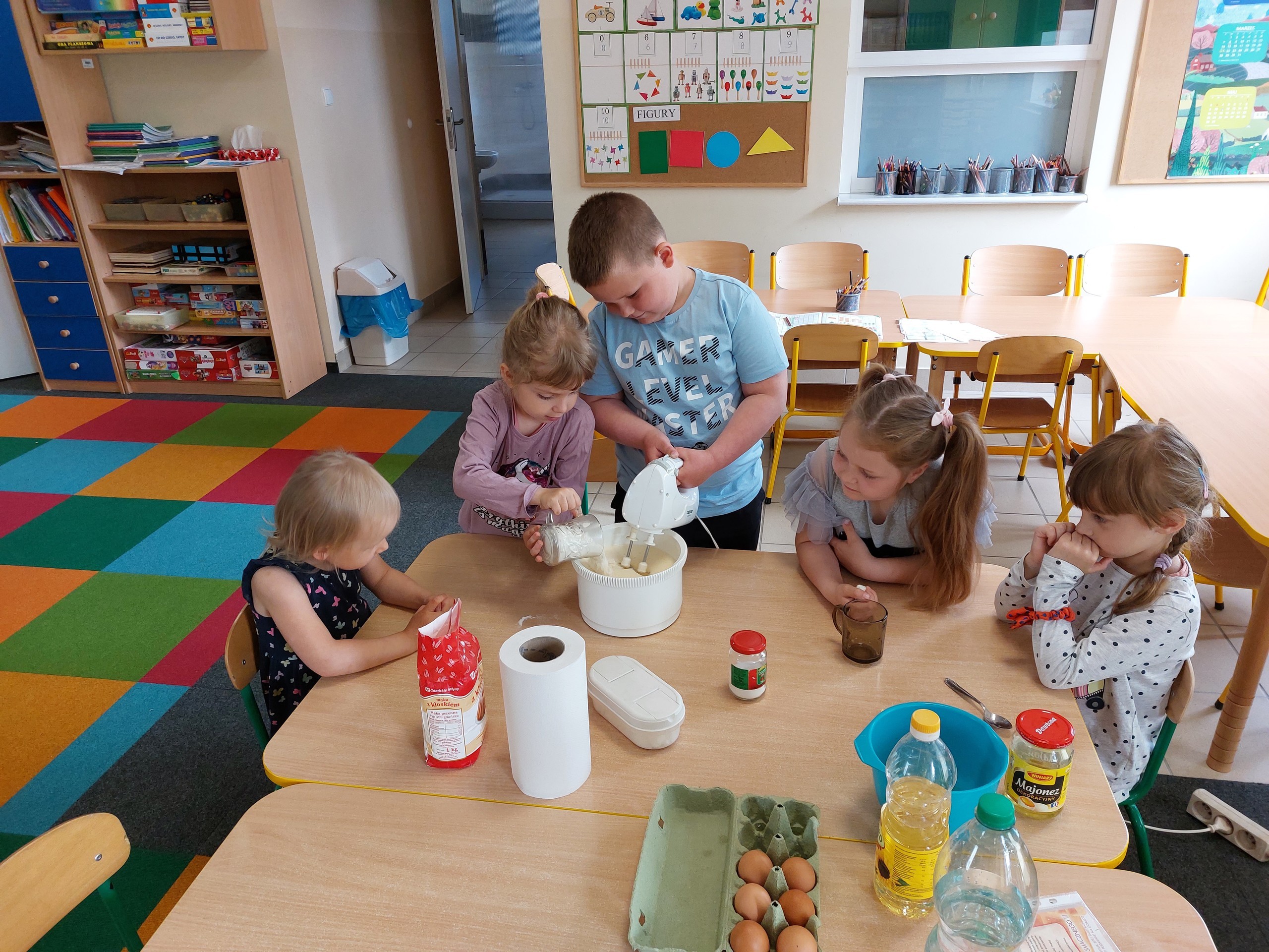 Z okazji Dnia Dziecka zorganizowaliśmy w przedszkolu gofry. Wspólnie przygotowaliśmy ciasto, po czym dzieci wybrały dodatki i samodzielnie udekorowały owocami.